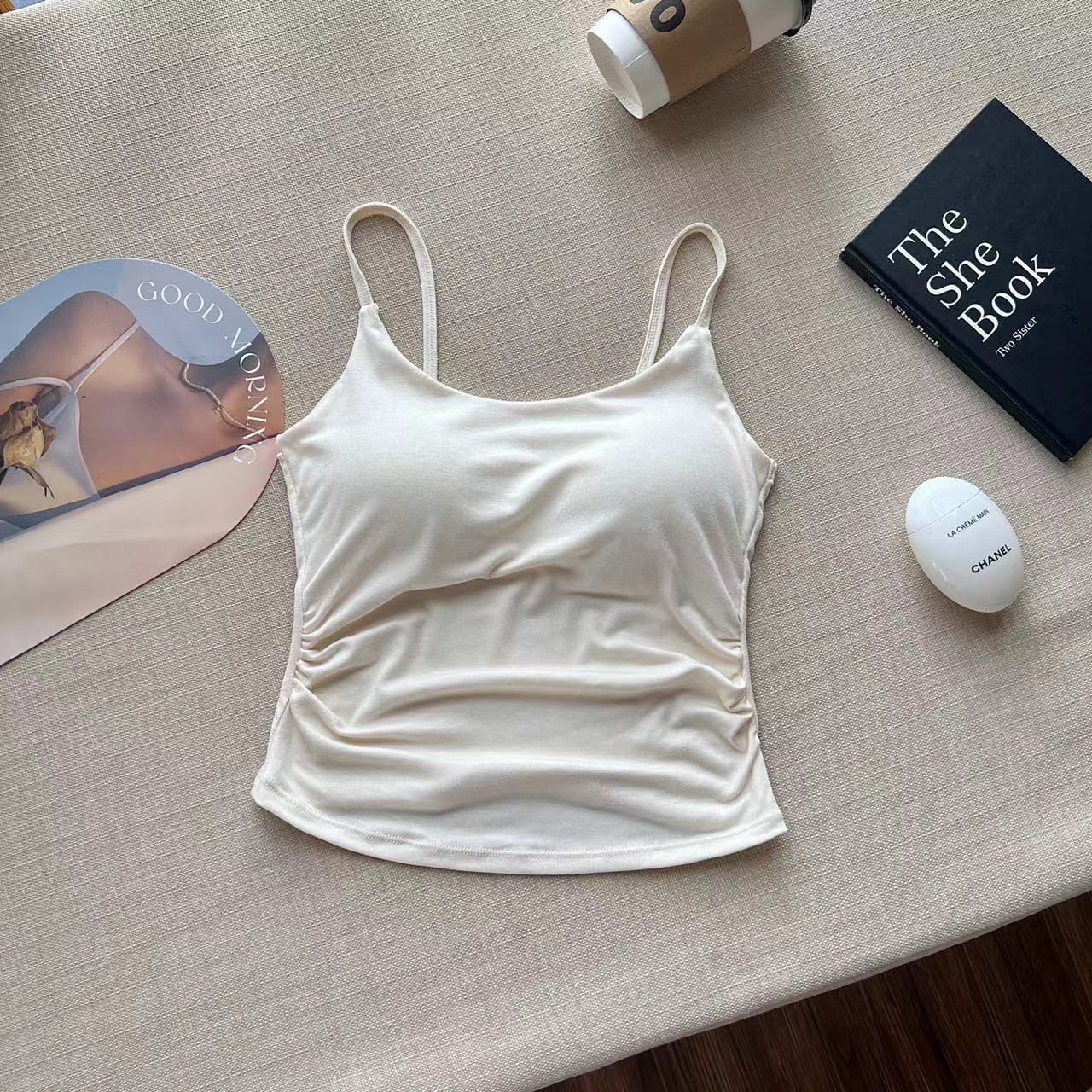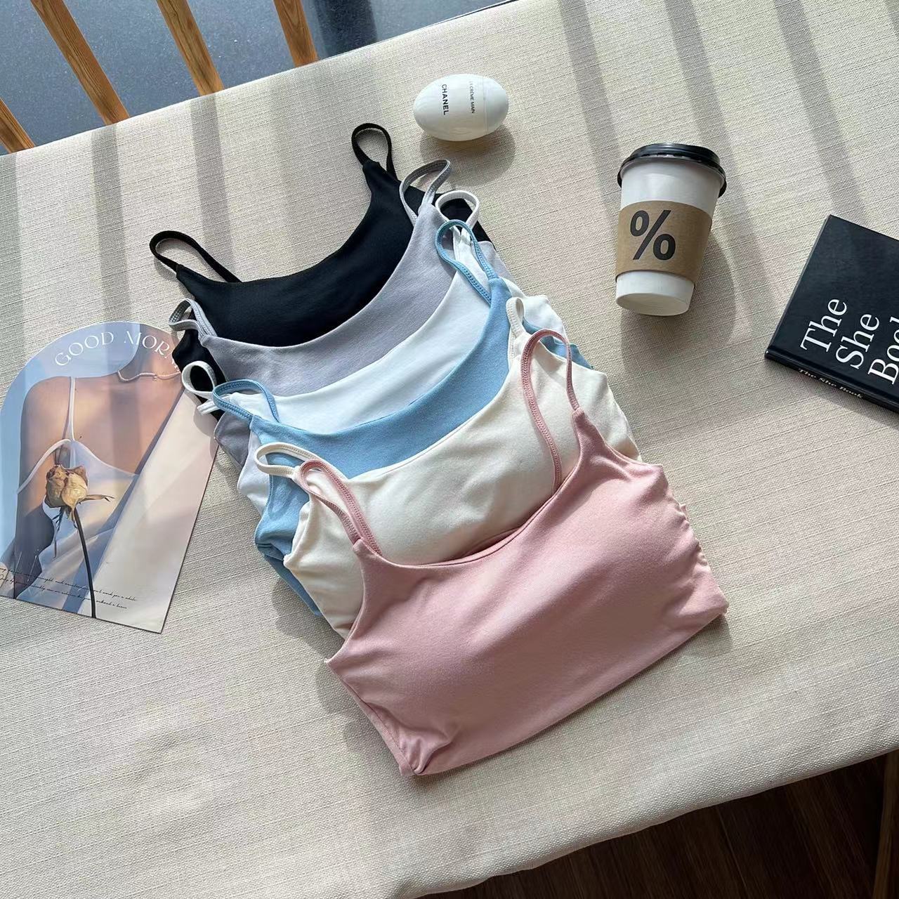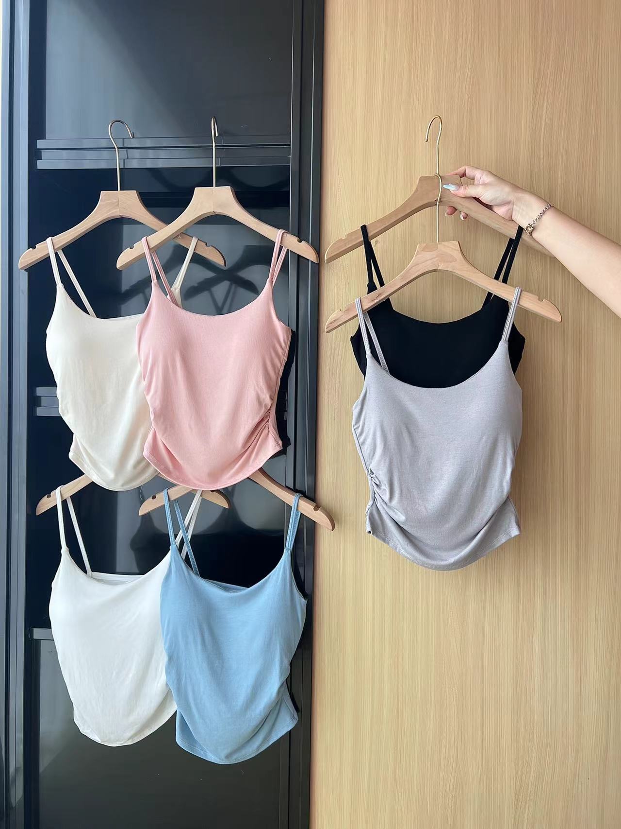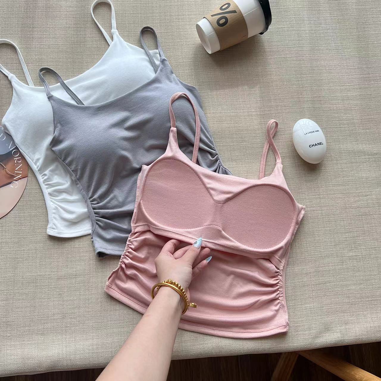 여름 소녀 캐미솔, 측면 주름, 와이어 프리 고정 컵, 편안하고 통기성이 뛰어난 핫 소녀의 다용도 아우터 튜브 탑