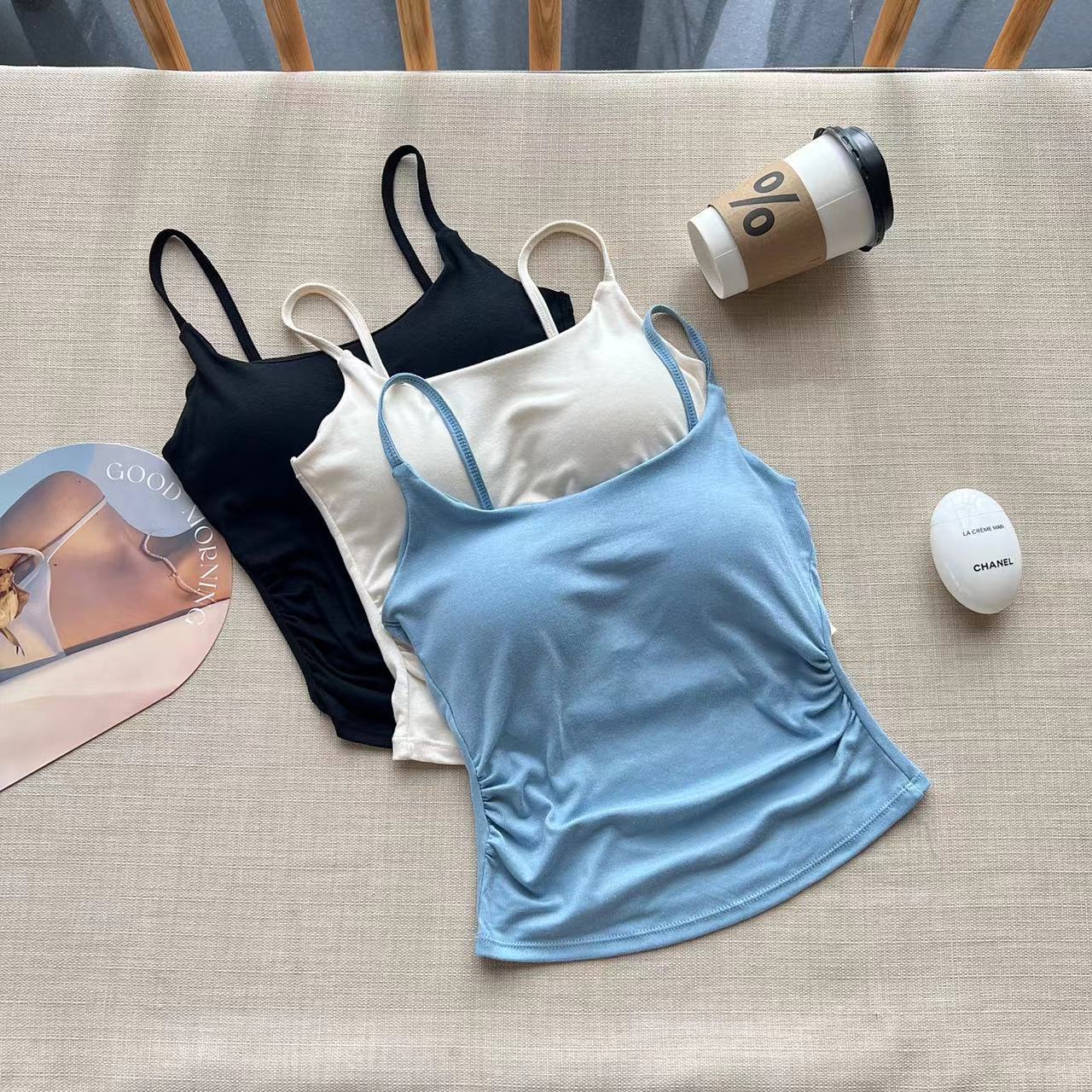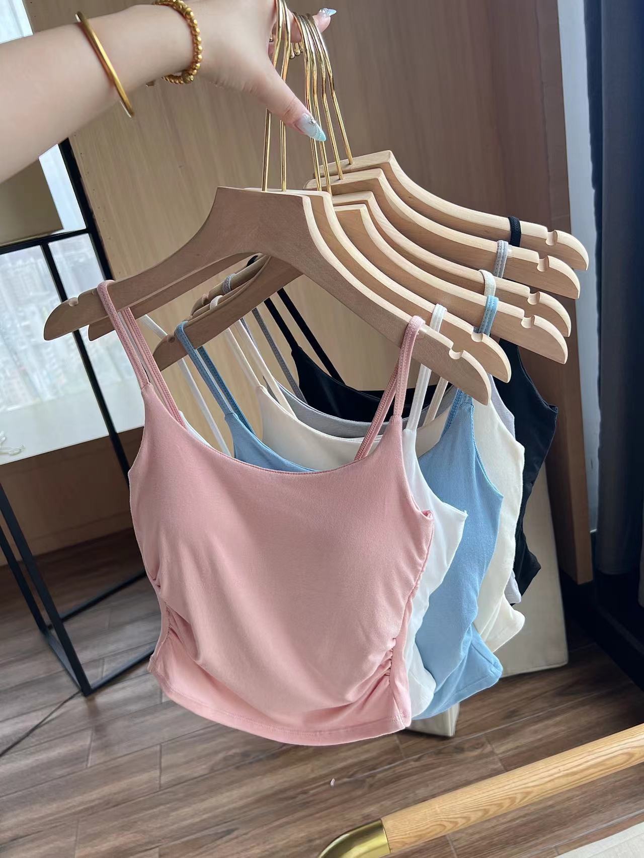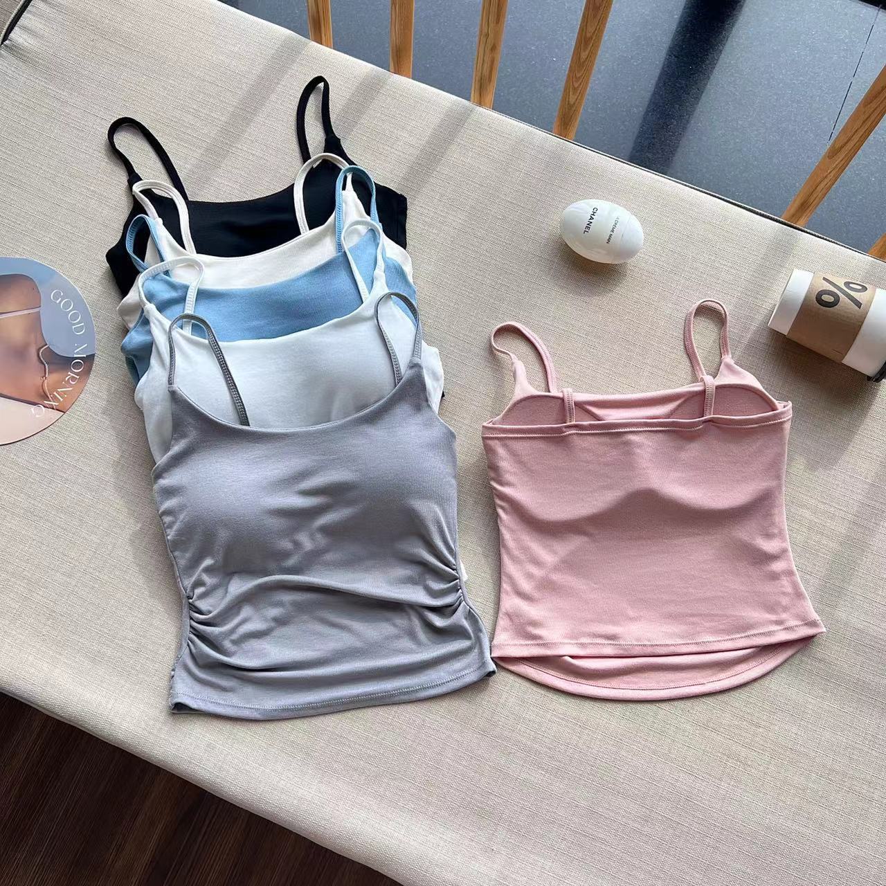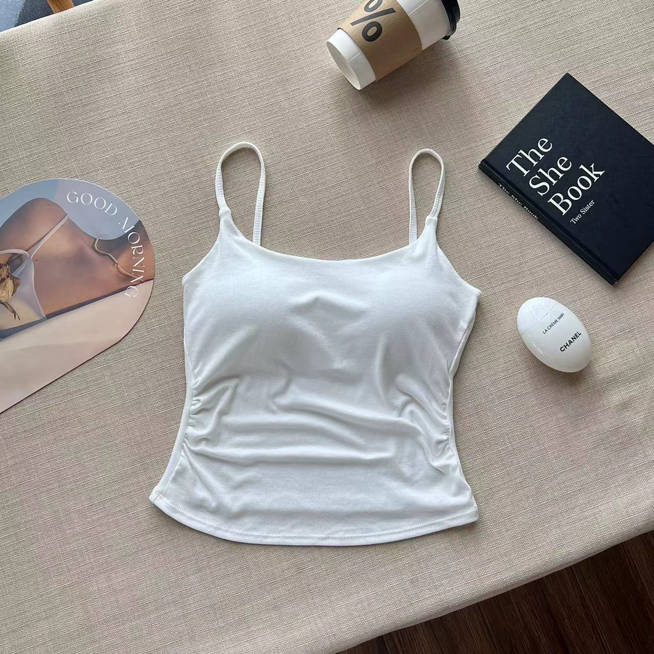 여름 소녀 캐미솔, 측면 주름, 와이어 프리 고정 컵, 편안하고 통기성이 뛰어난 핫 소녀의 다용도 아우터 튜브 탑