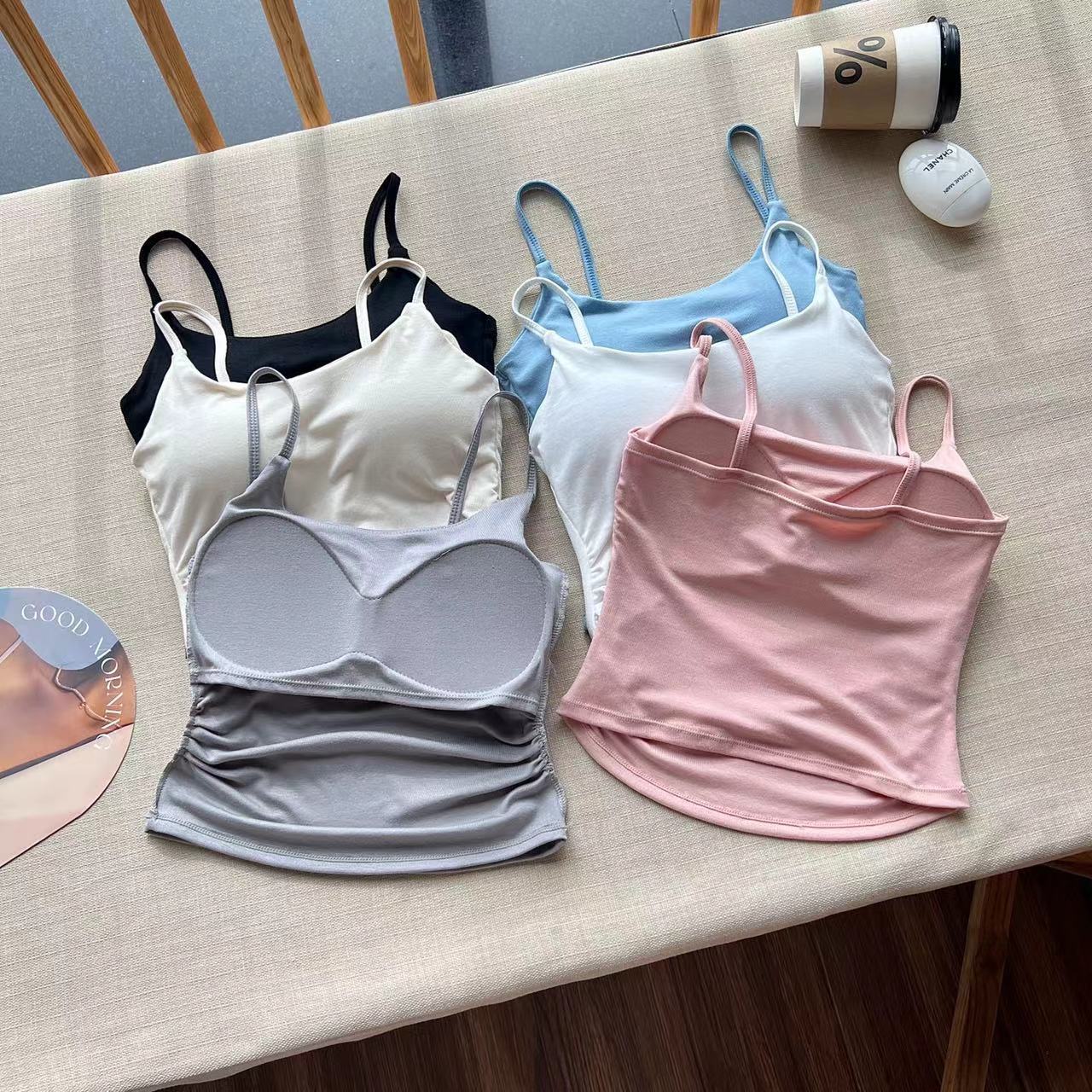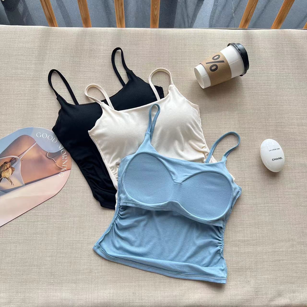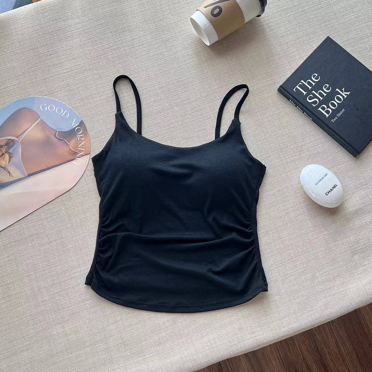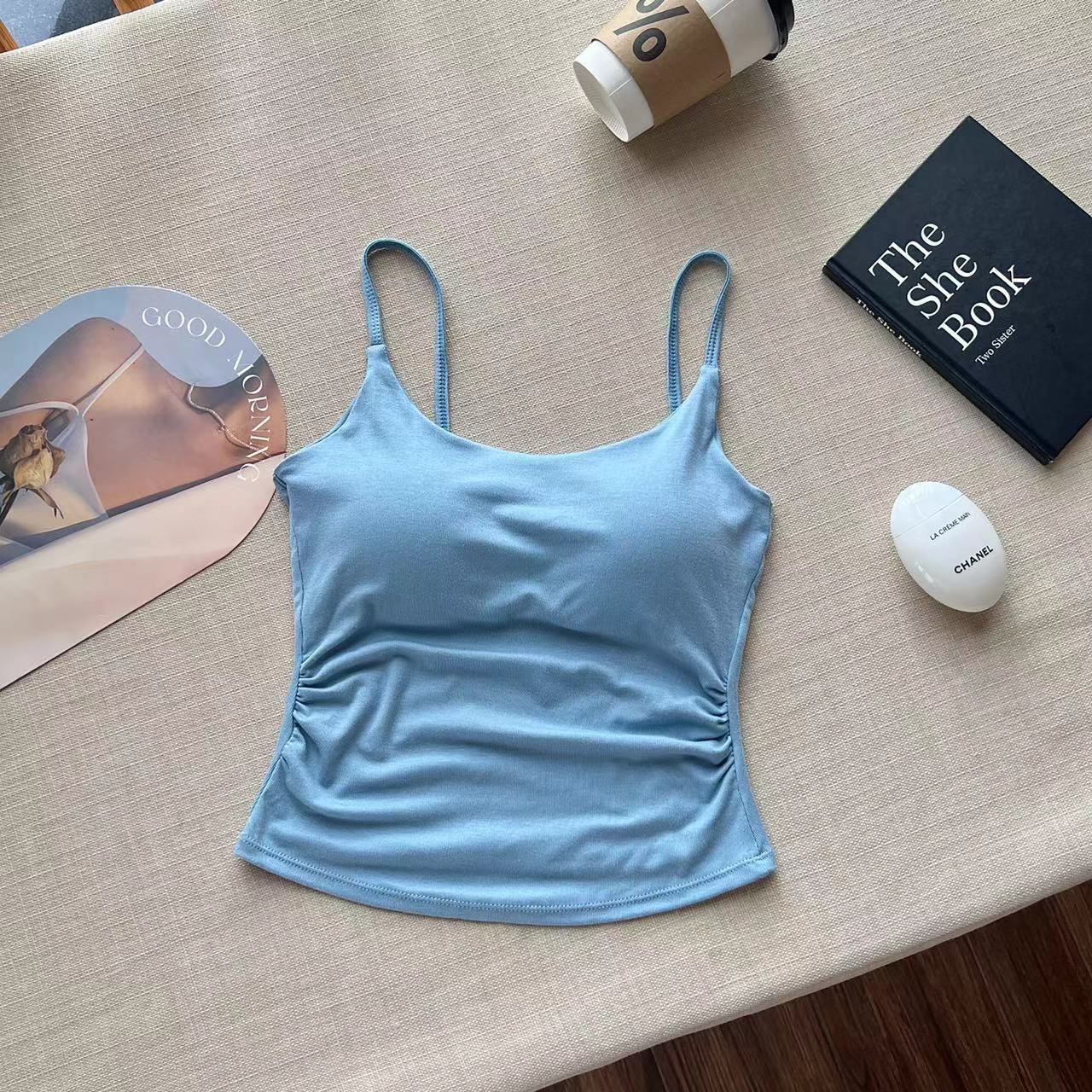 여름 소녀 캐미솔, 측면 주름, 와이어 프리 고정 컵, 편안하고 통기성이 뛰어난 핫 소녀의 다용도 아우터 튜브 탑