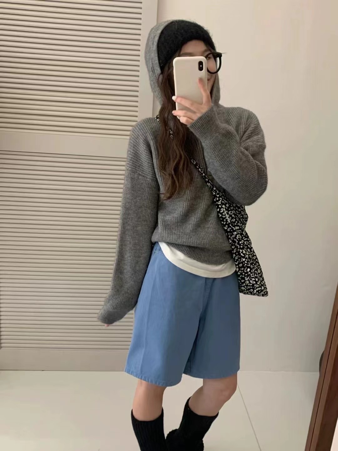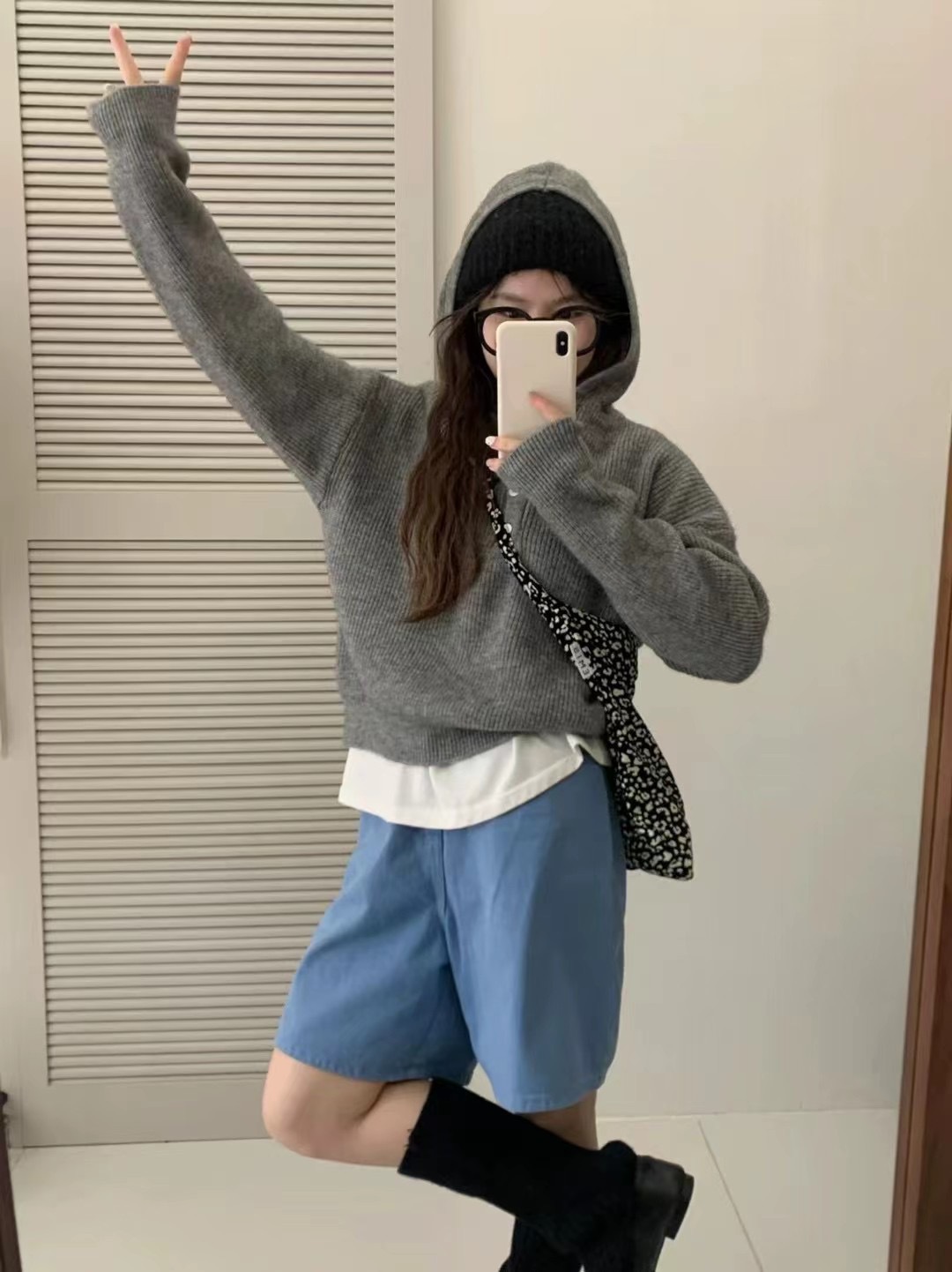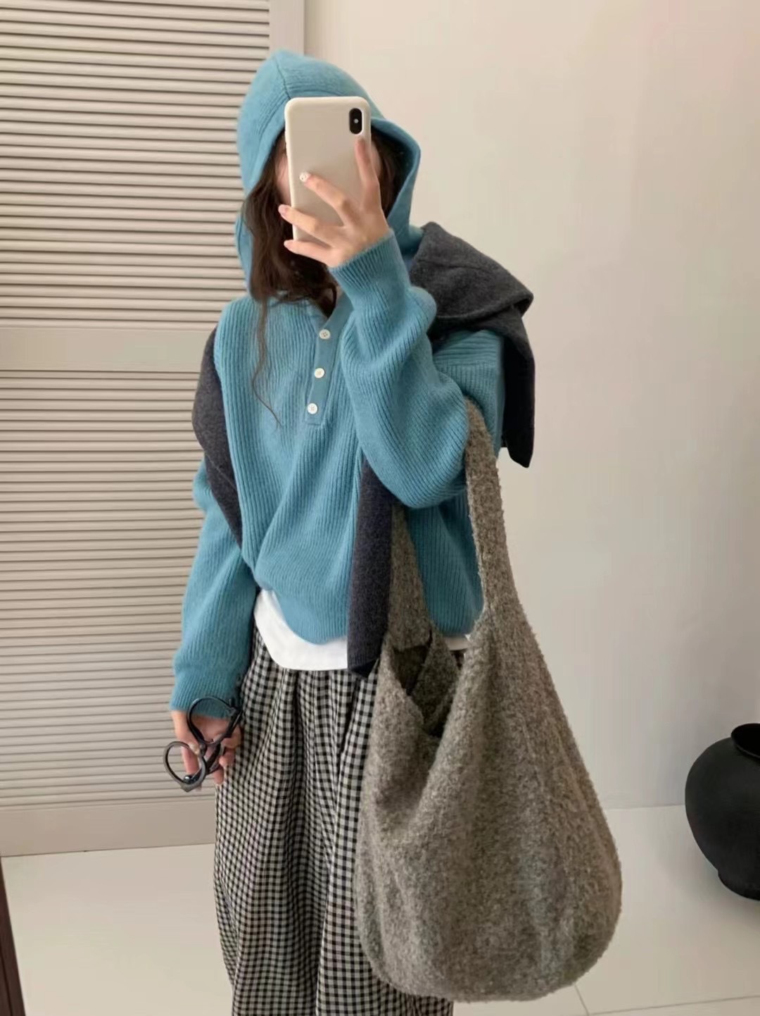 캔디 컬러 후드 풀오버 스웨터 여성 캐주얼 탑 2025 가을, 겨울 게으른 스타일 느슨한 내부 스웨터스토어 가기