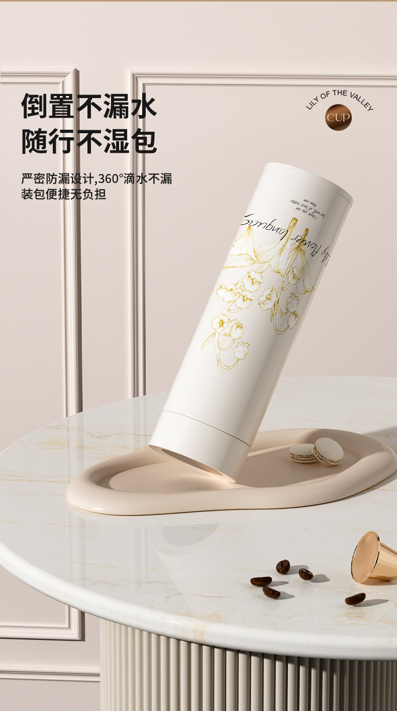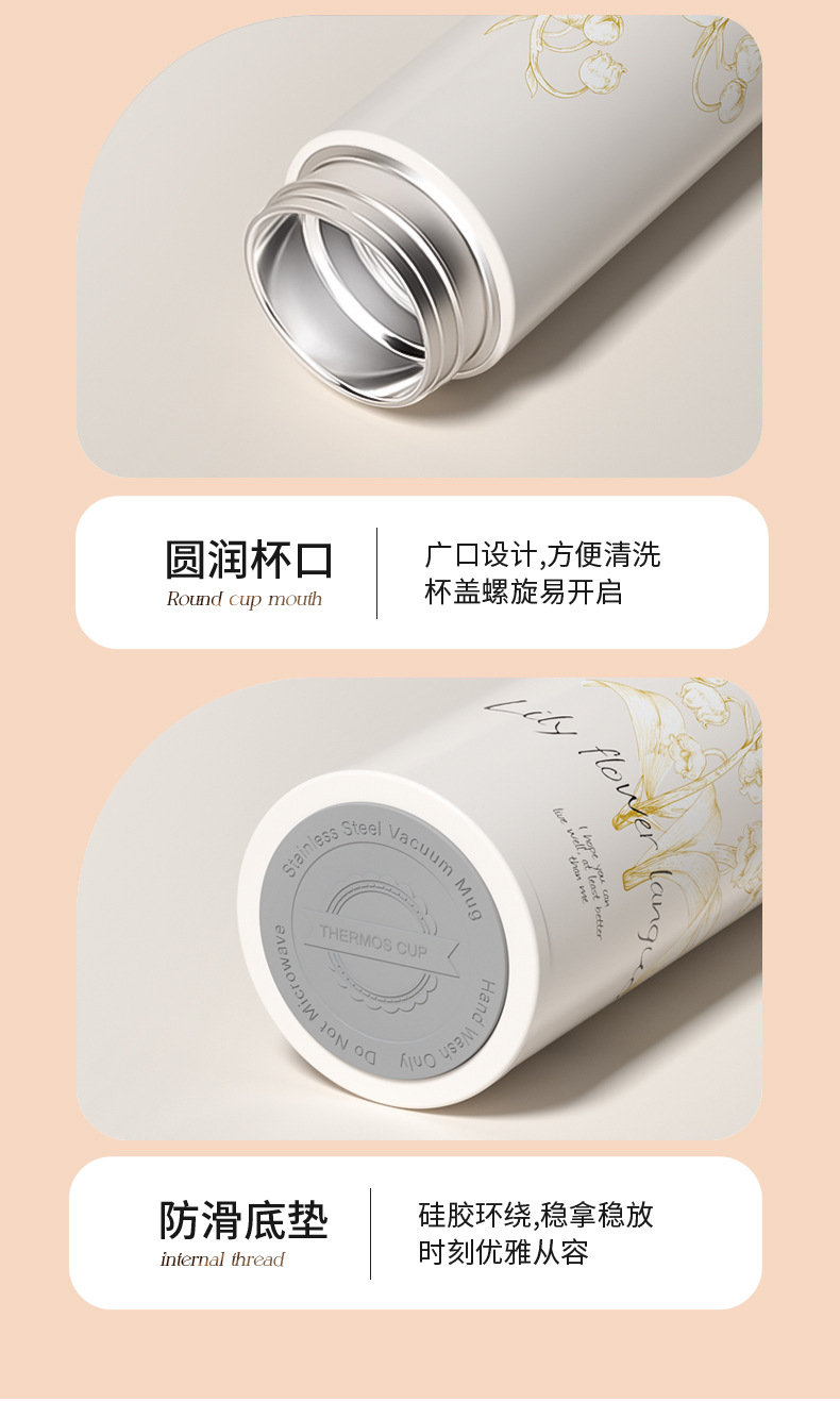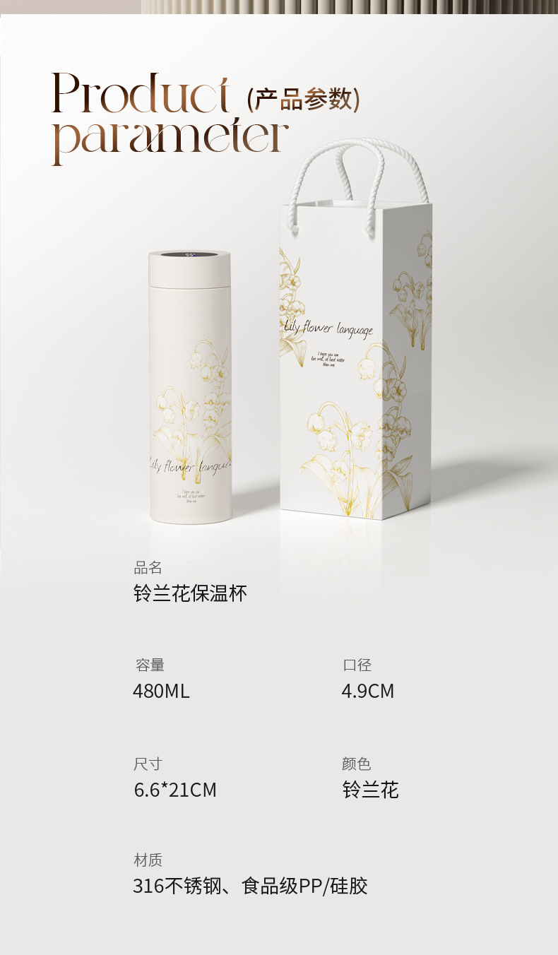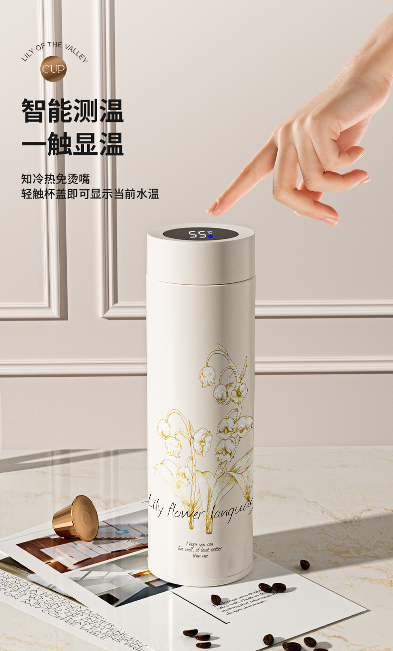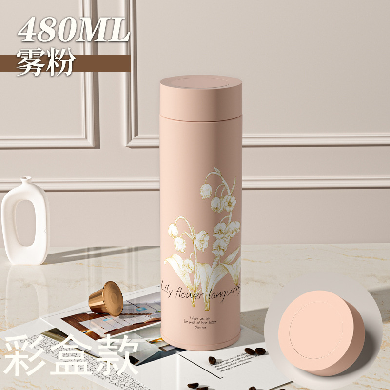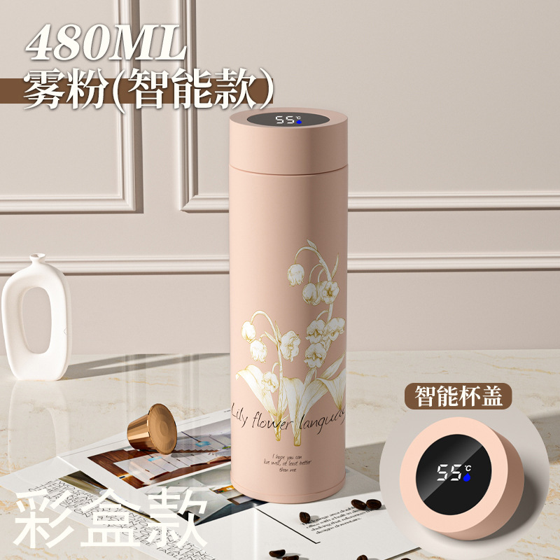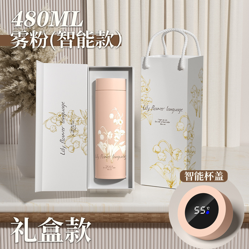 지능형 온도 디스플레이 컵 릴리 오브 더 밸리 316 스테인레스 스틸 보온병 컵 여성 학생 고급 선물 차 분리 선물 상자 워터 컵