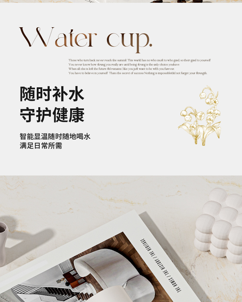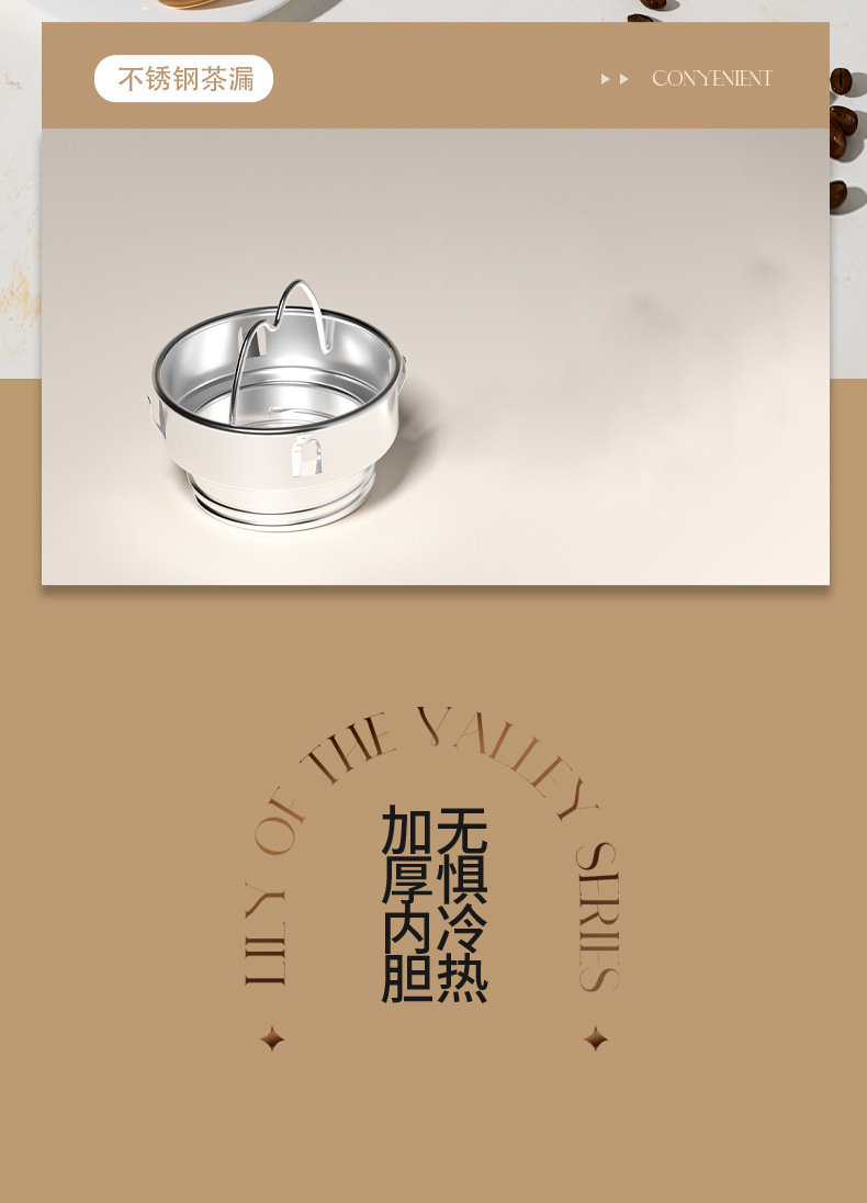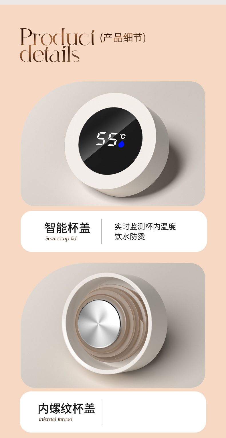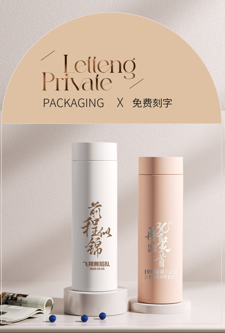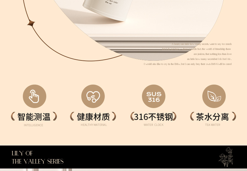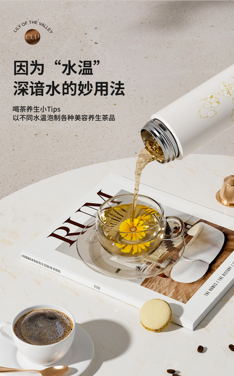 지능형 온도 디스플레이 컵 릴리 오브 더 밸리 316 스테인레스 스틸 보온병 컵 여성 학생 고급 선물 차 분리 선물 상자 워터 컵