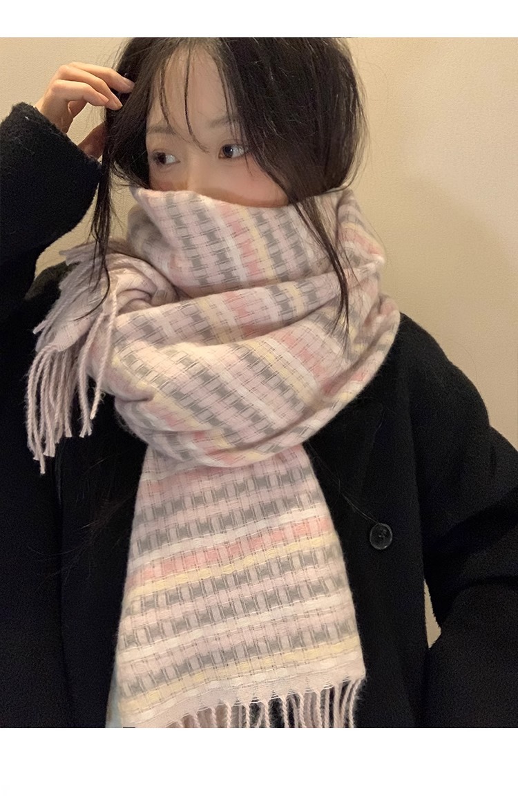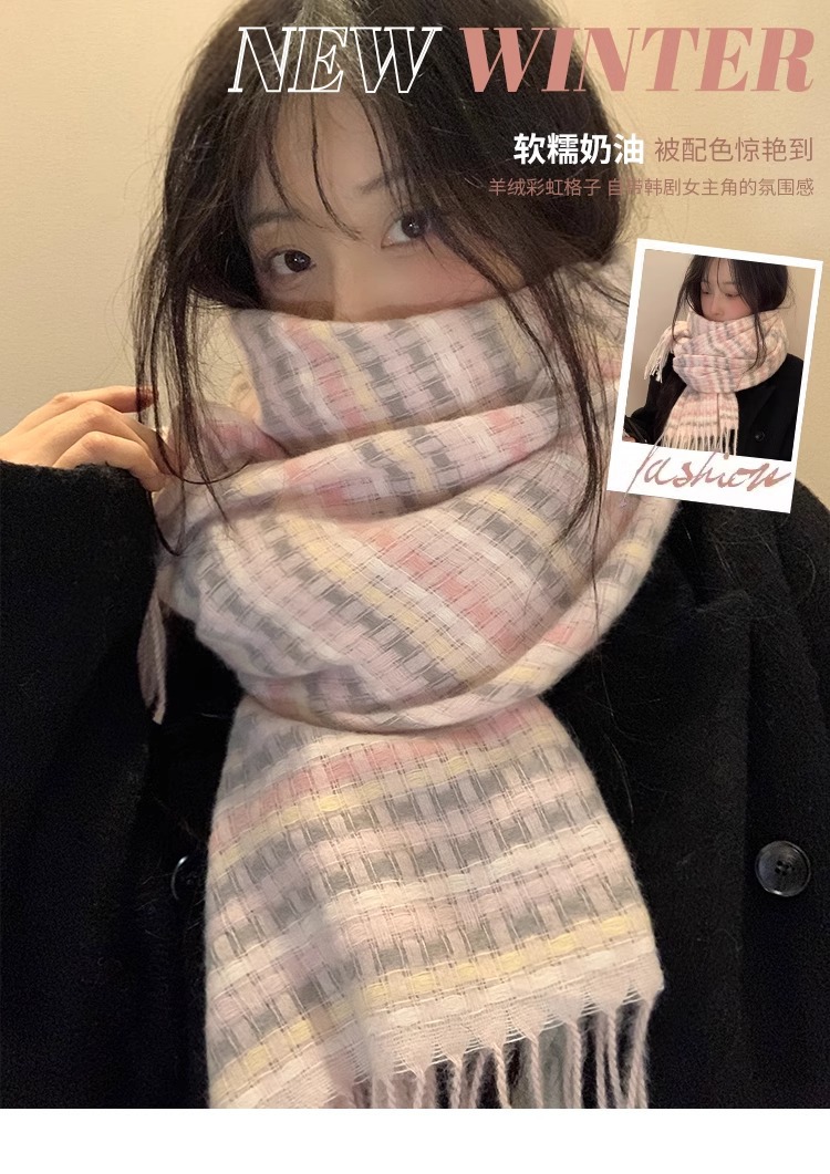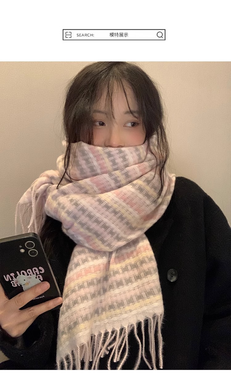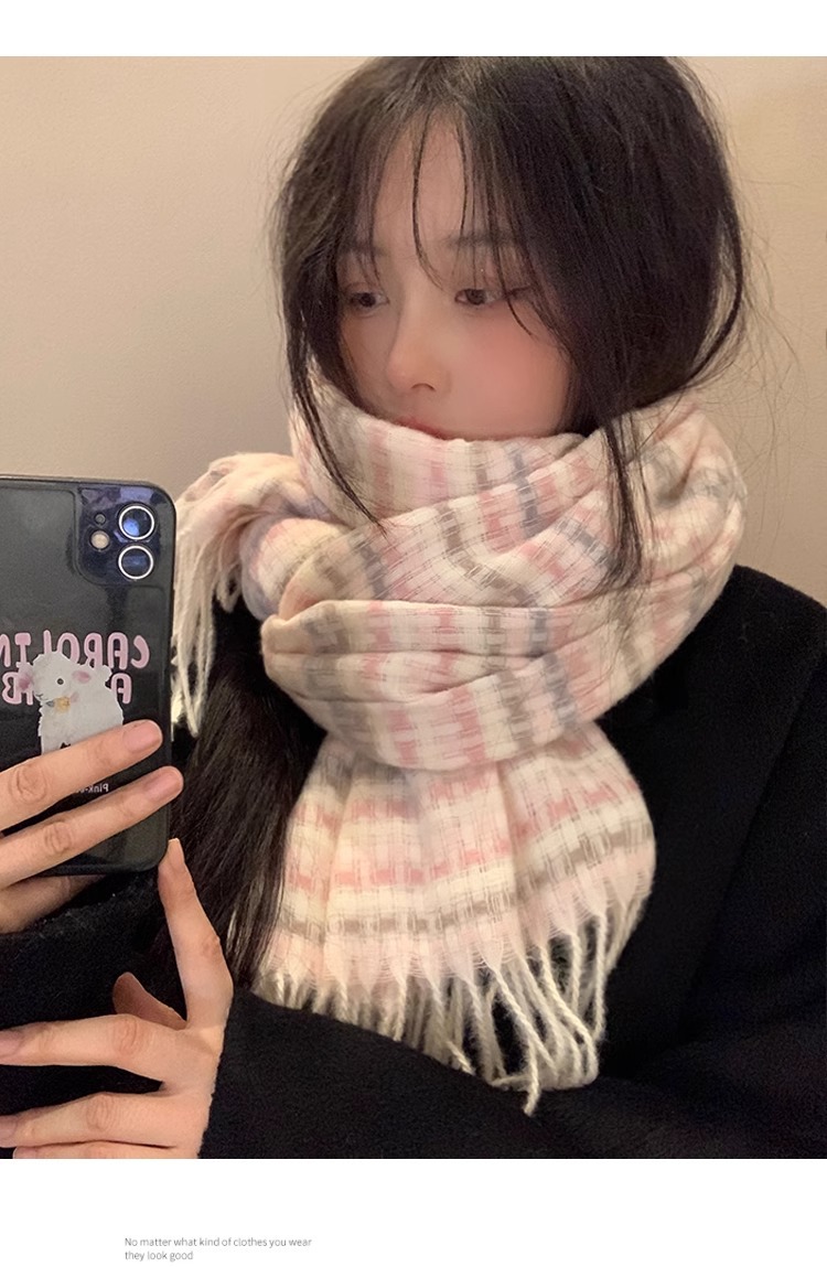 2024 년 새 캐시미어 스카프 여자 겨울 한국 스타일 달콤한 귀여운 올매치 따뜻한 방한 봉제 스카프 목도리스토어 가기