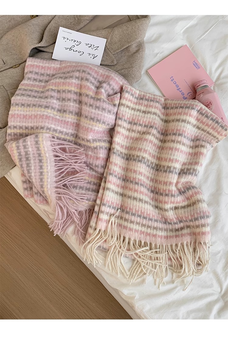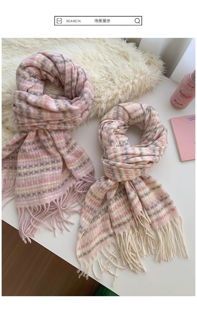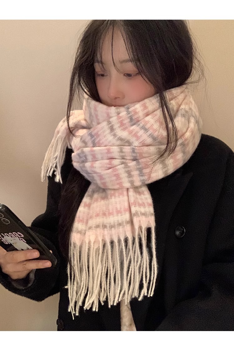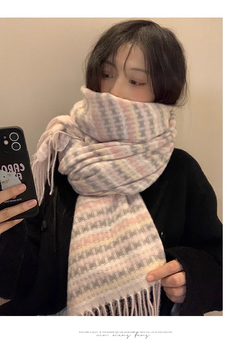 2024 년 새 캐시미어 스카프 여자 겨울 한국 스타일 달콤한 귀여운 올매치 따뜻한 방한 봉제 스카프 목도리스토어 가기