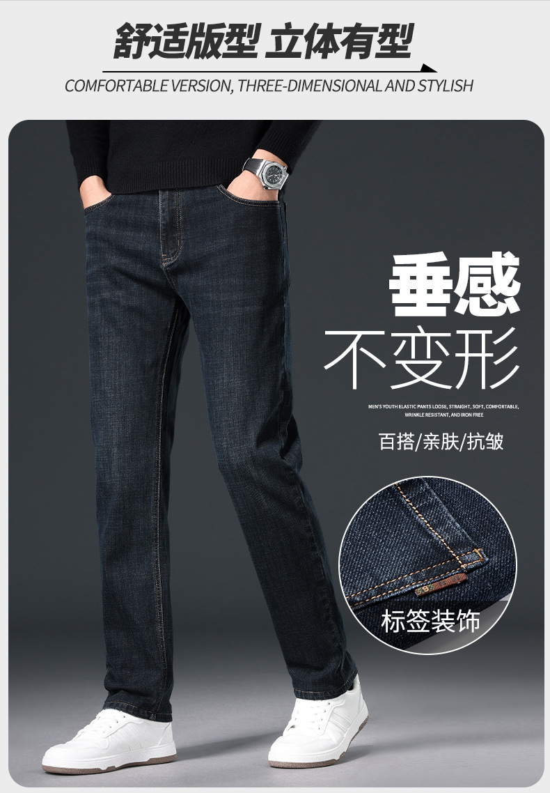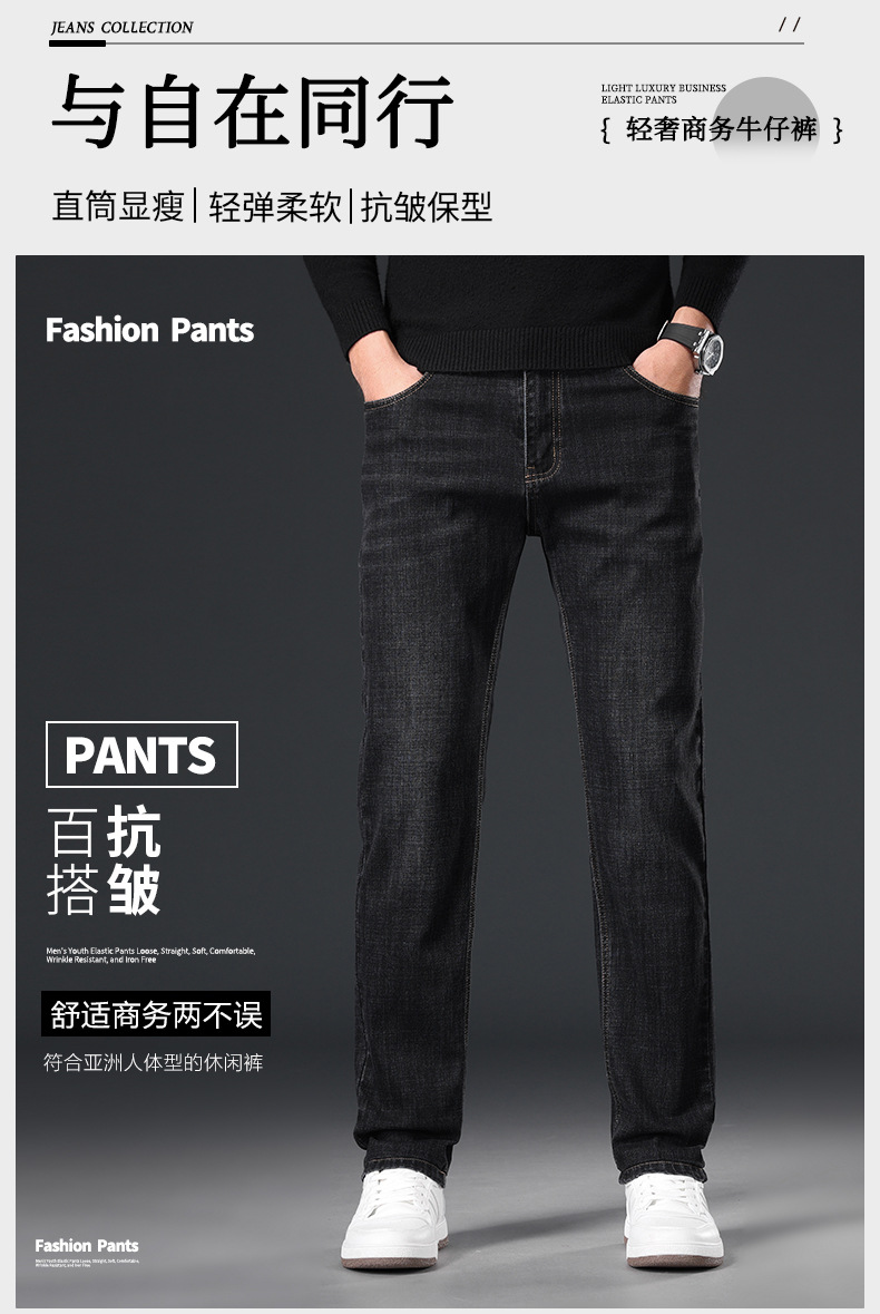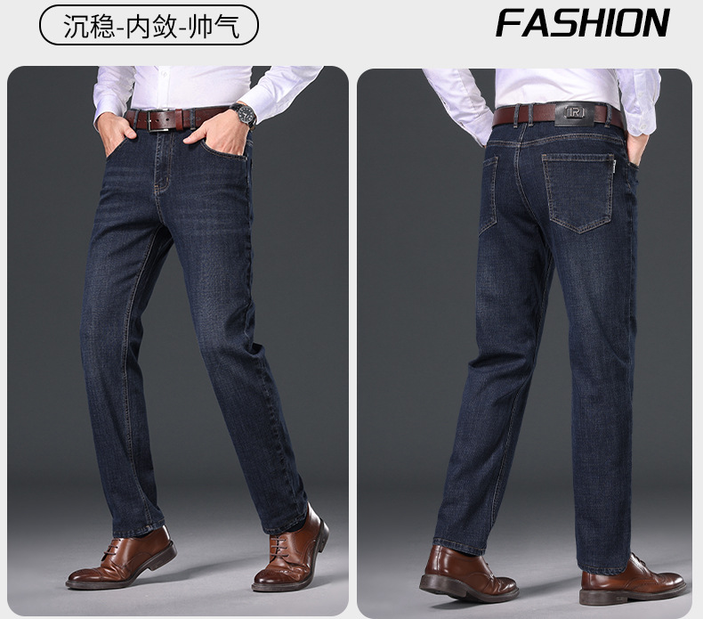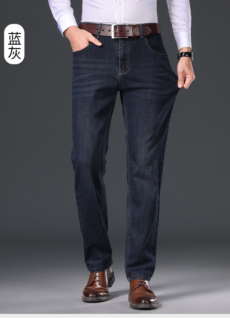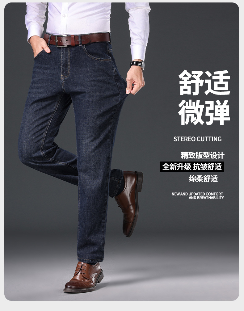 2024 년 가을 남성 비즈니스 청바지 중년 하이 허리 스트레이트 재고 전체 조명 비즈니스 기본 마이크로 탄성 바지