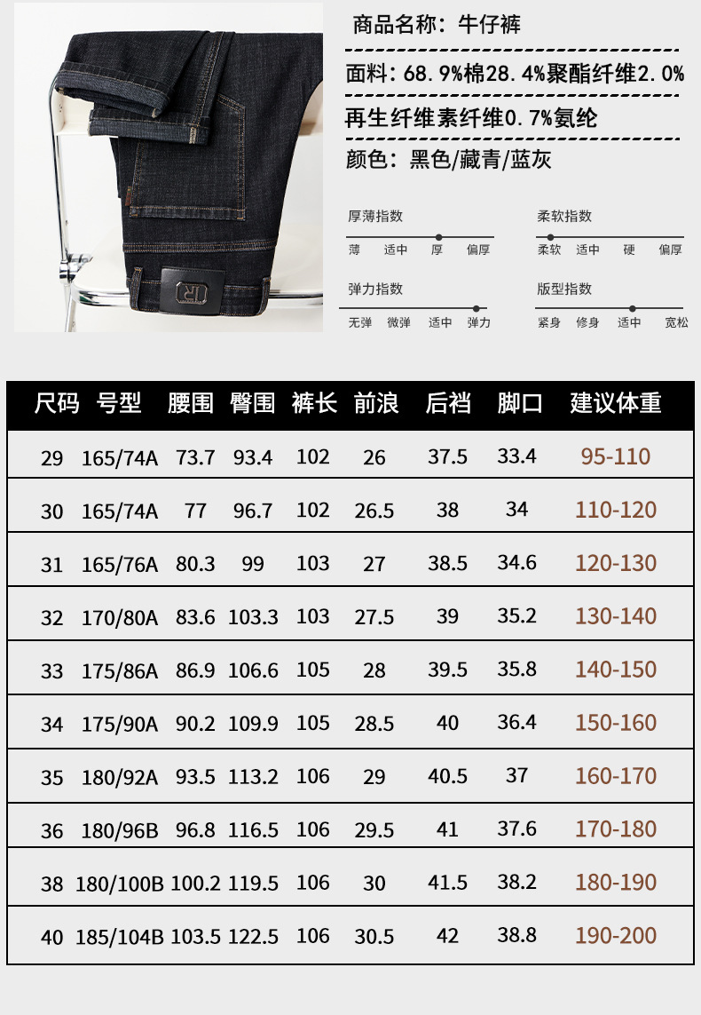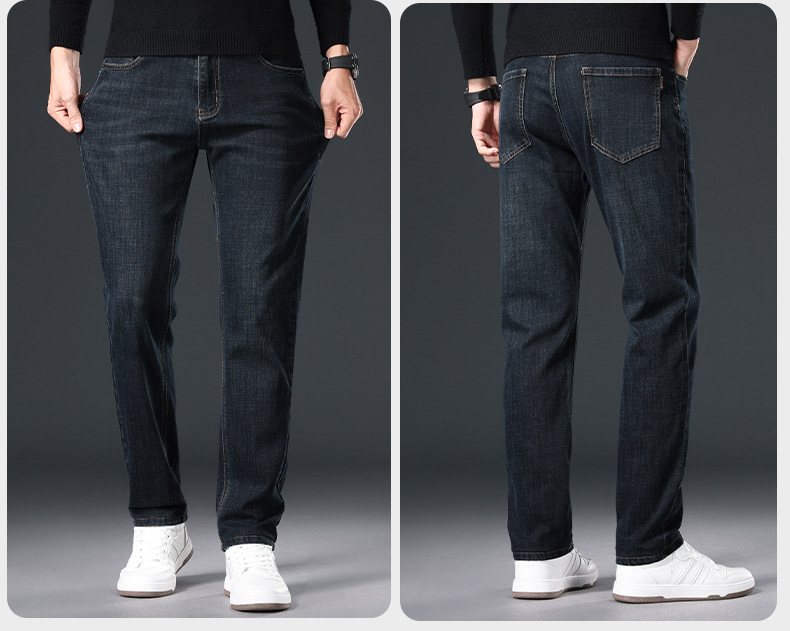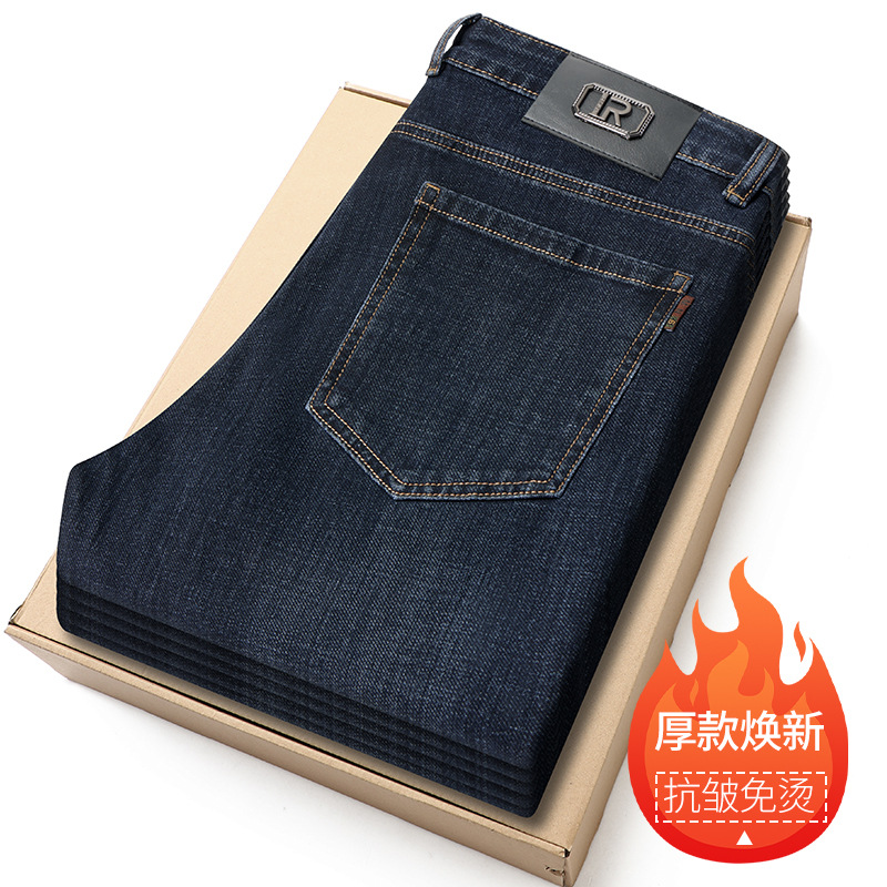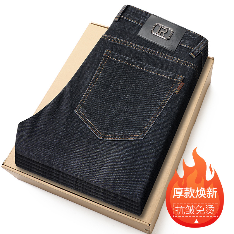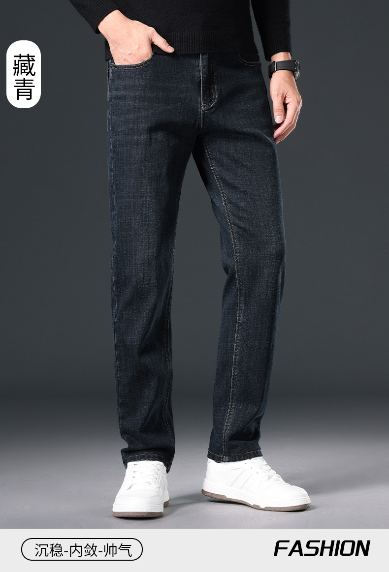 2024 년 가을 남성 비즈니스 청바지 중년 하이 허리 스트레이트 재고 전체 조명 비즈니스 기본 마이크로 탄성 바지