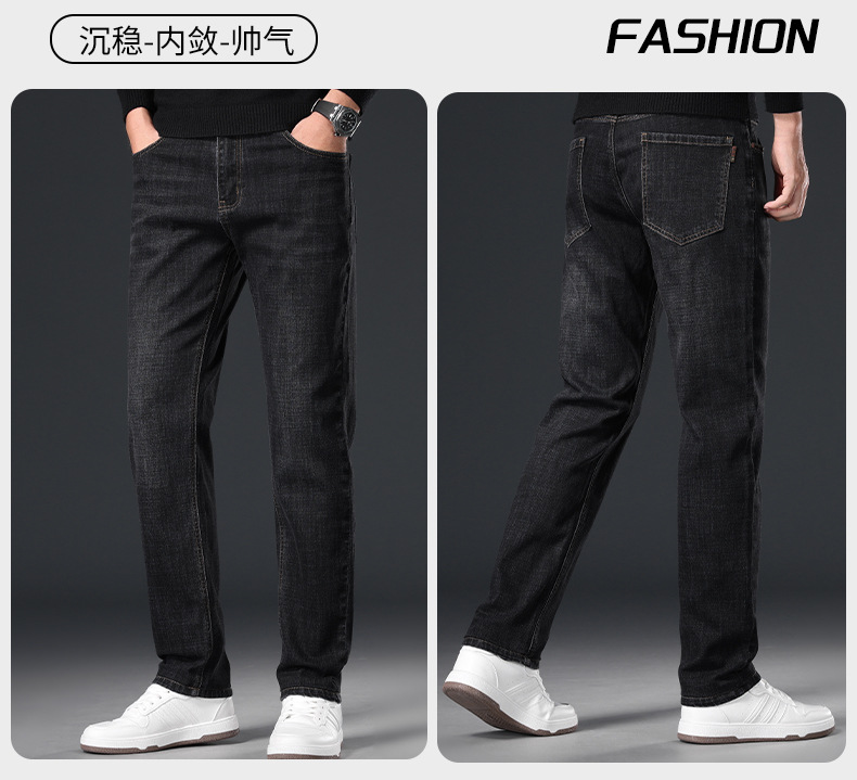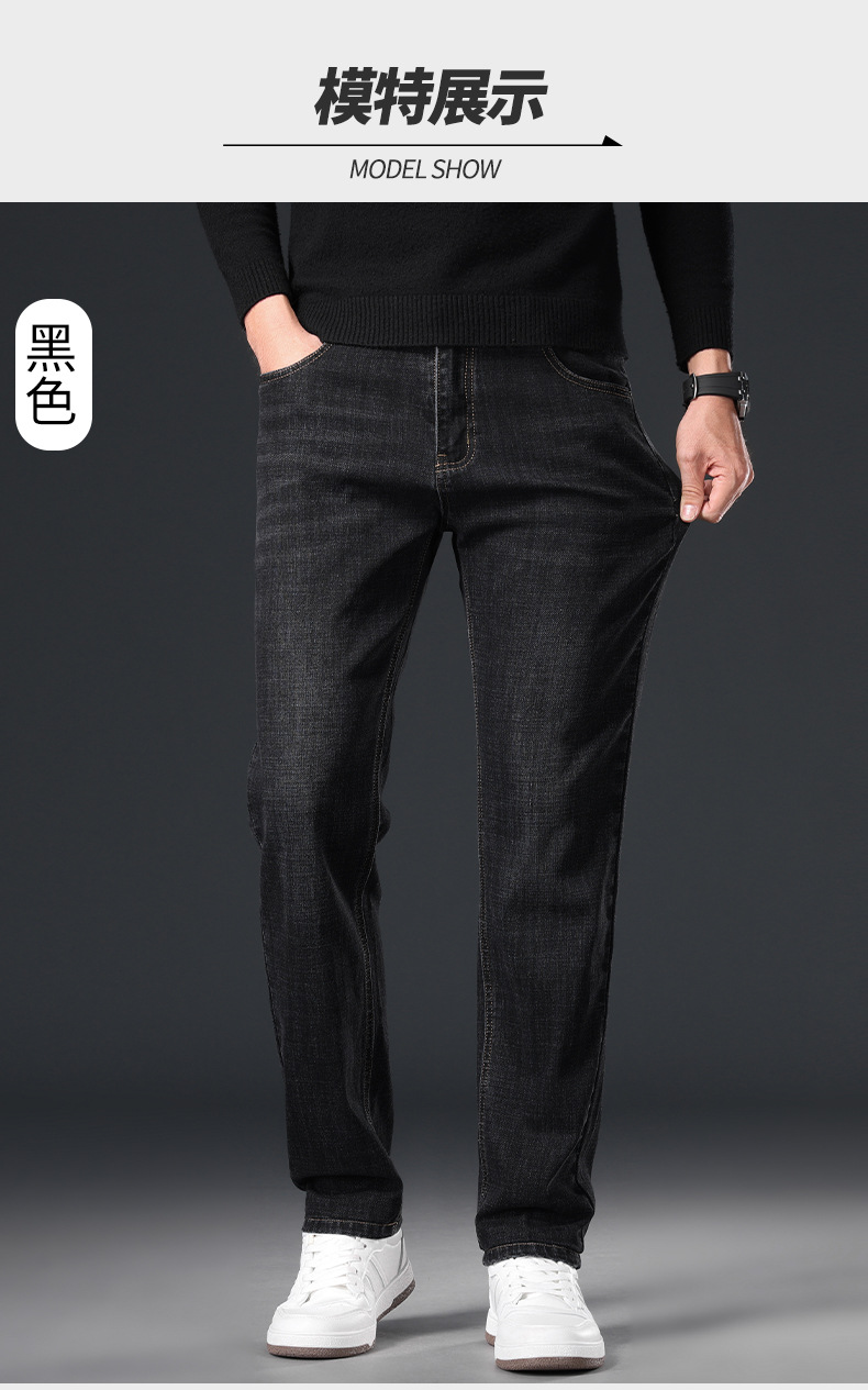 2024 년 가을 남성 비즈니스 청바지 중년 하이 허리 스트레이트 재고 전체 조명 비즈니스 기본 마이크로 탄성 바지스토어 가기