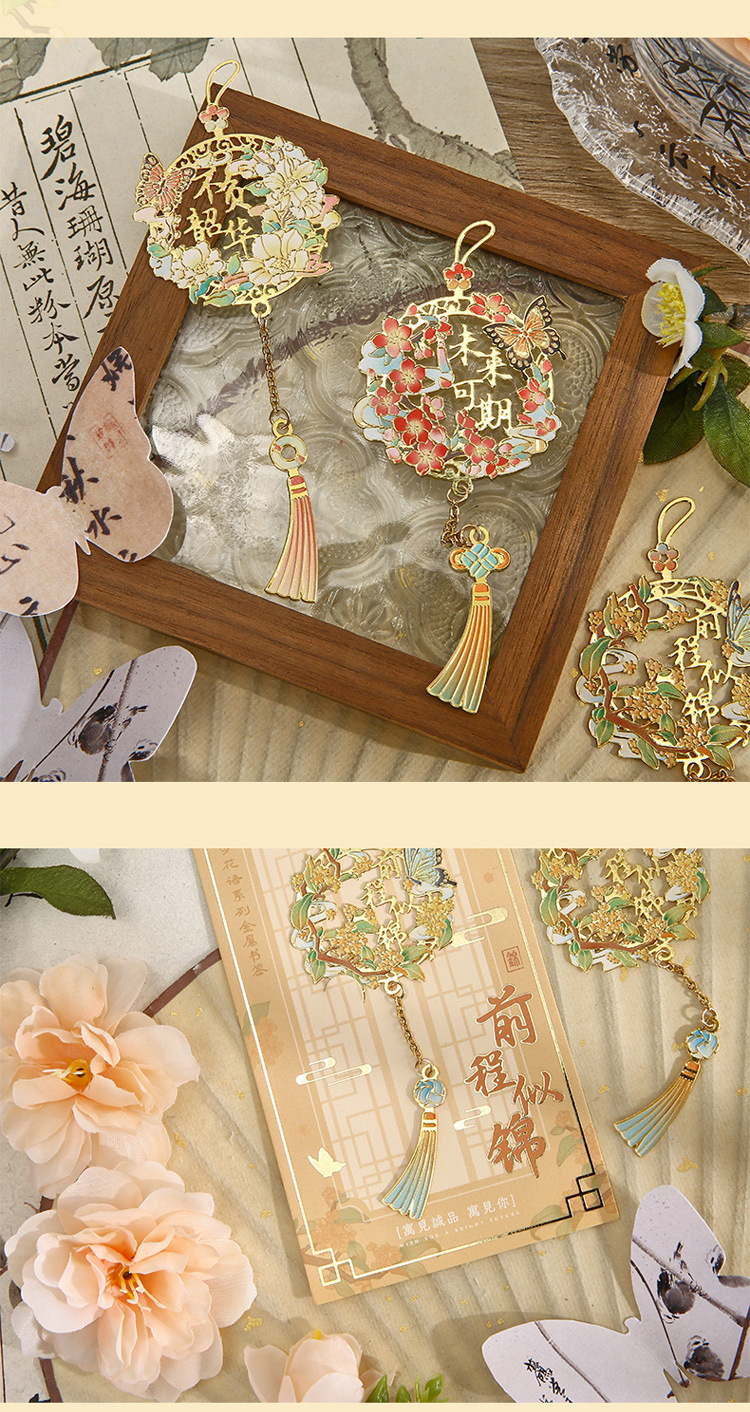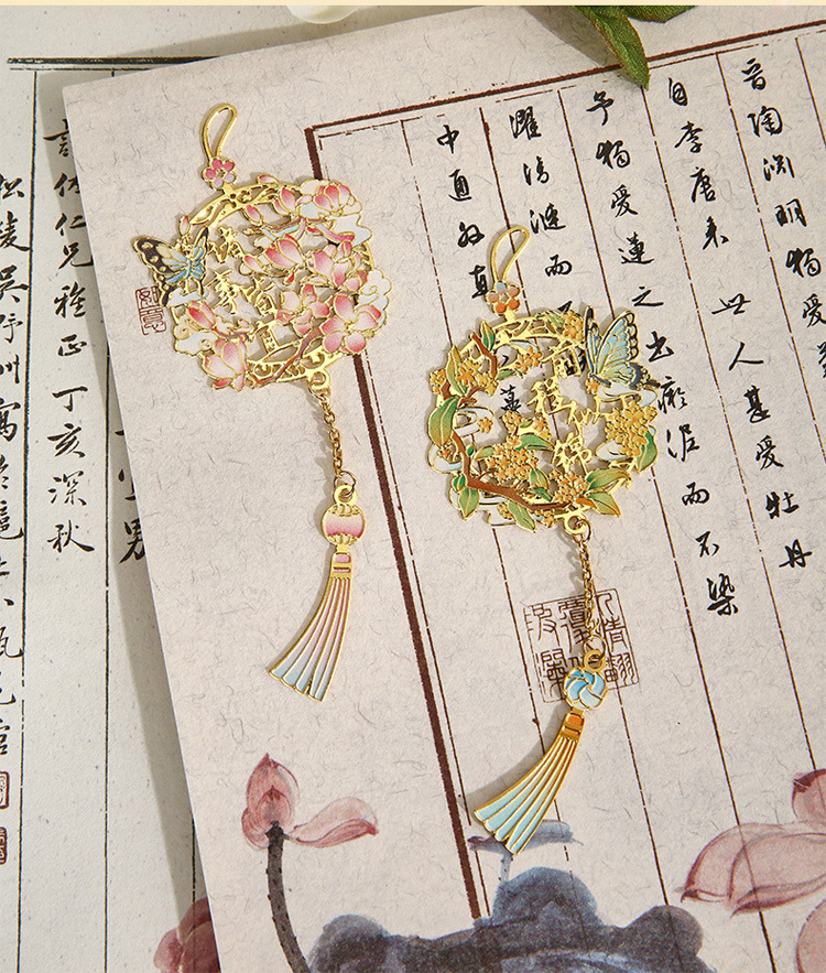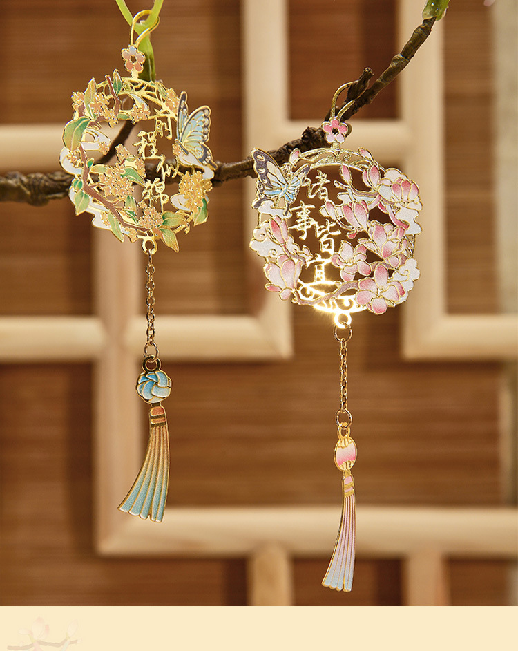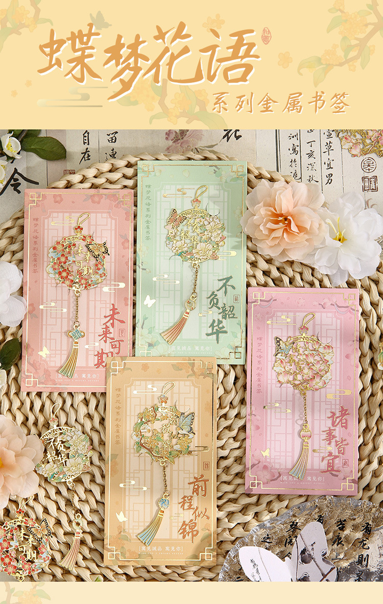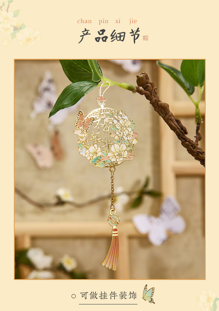 나비 꿈 꽃 언어 국가 스타일 골동품 중공 금속 북마크 브론징 펜던트 고급 독서 장식 절묘한 선물 선물