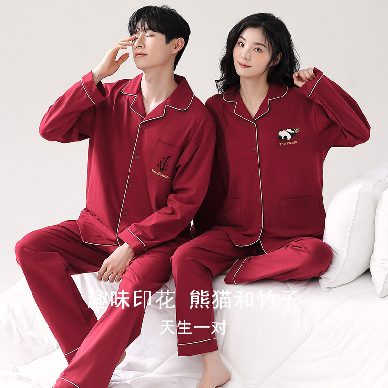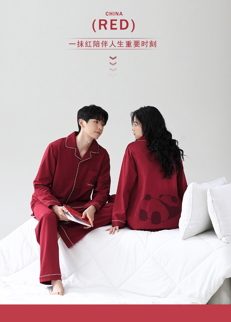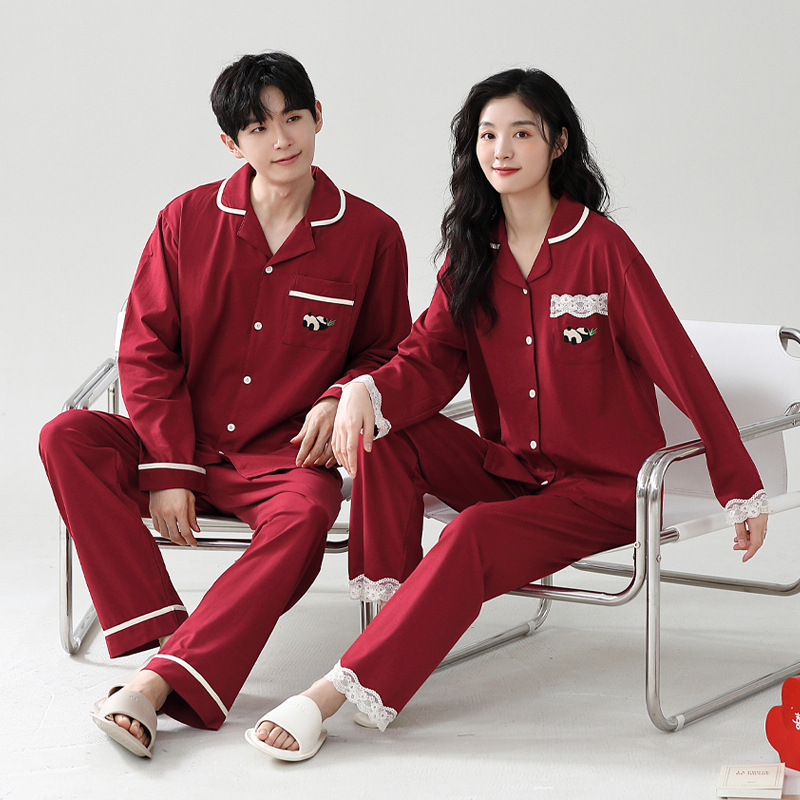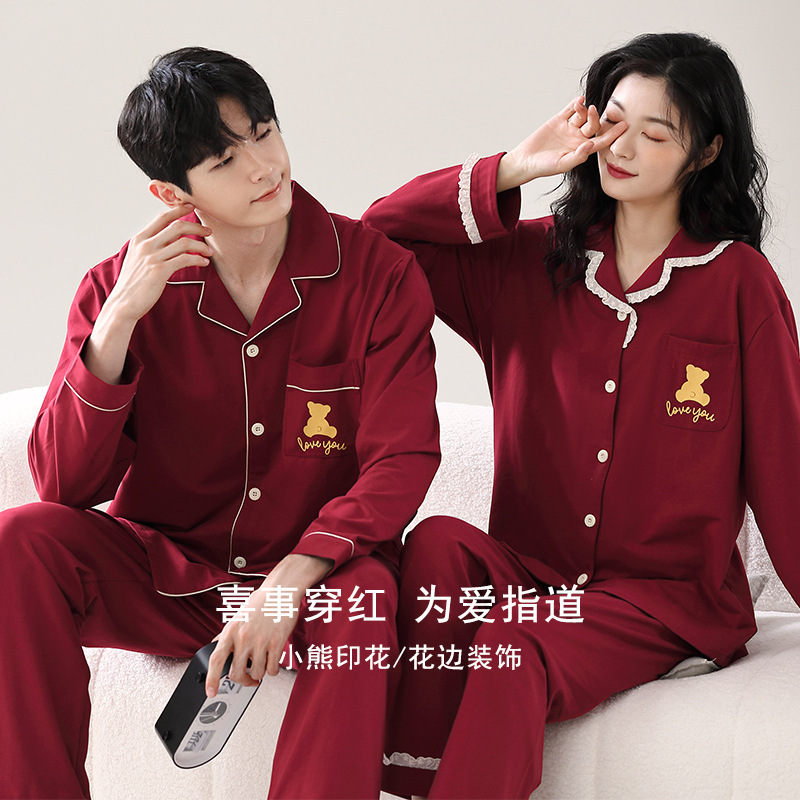 신혼부부 잠옷 여성의 봄과 가을 결혼식 순면 빨간 긴팔 홈 옷 남자 생활 년 가을과 겨울 세트스토어 가기