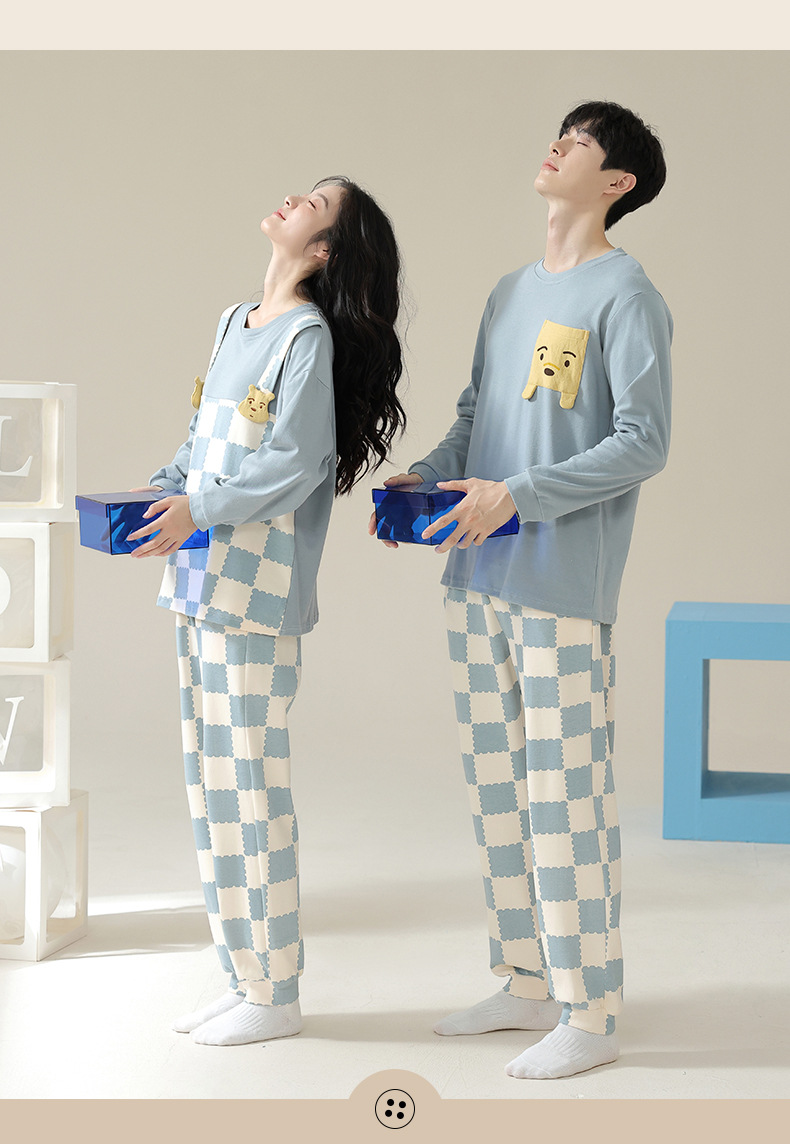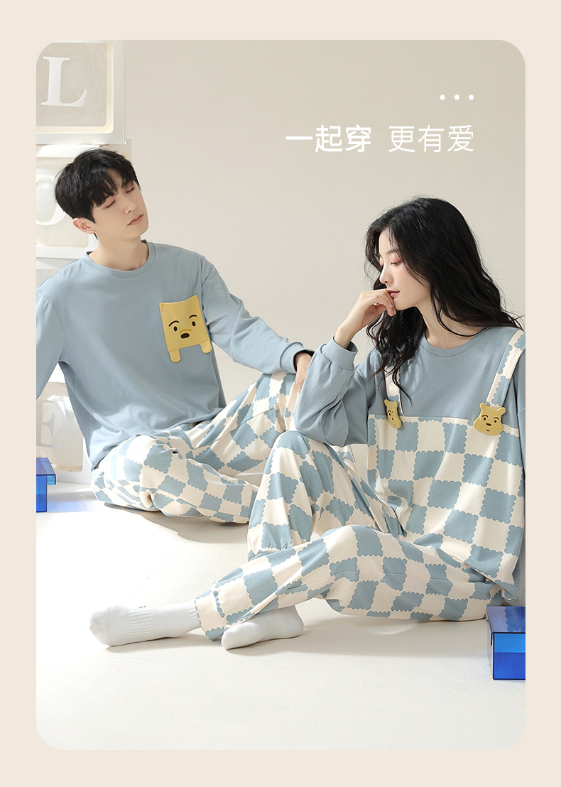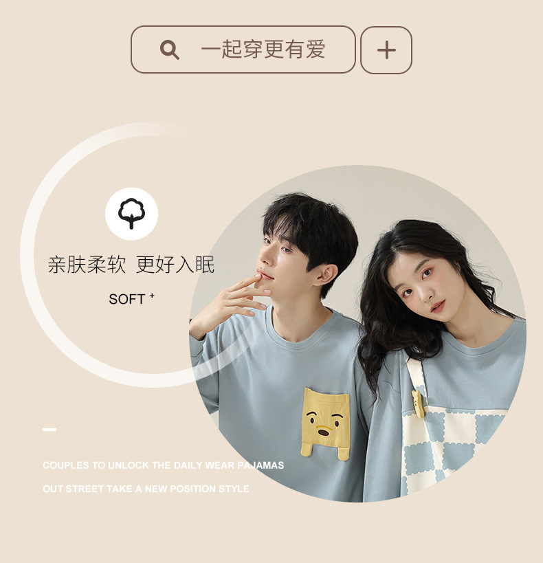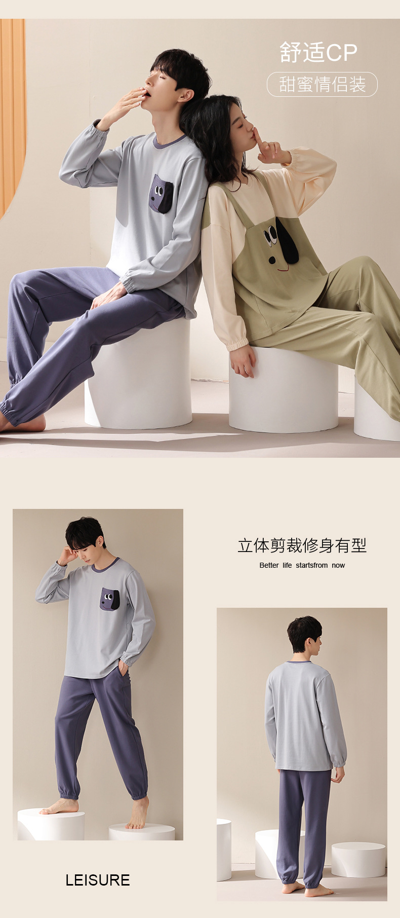 만화 캐주얼 순면 커플 잠옷 여성의 가을 귀여운 풀오버 긴팔 바지는 젊은 남성을위한 옷을 입을 수 있습니다스토어 가기