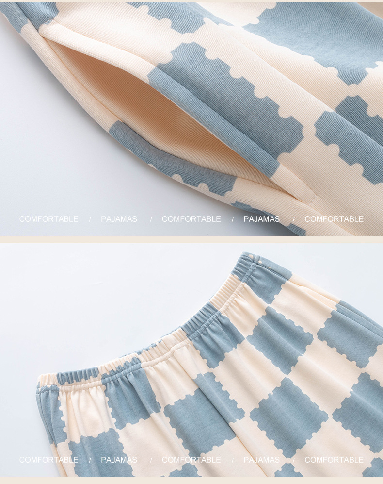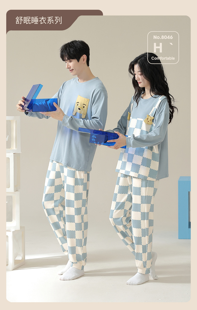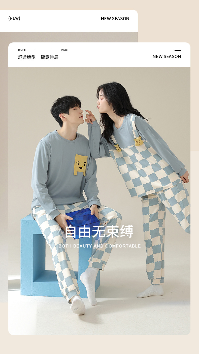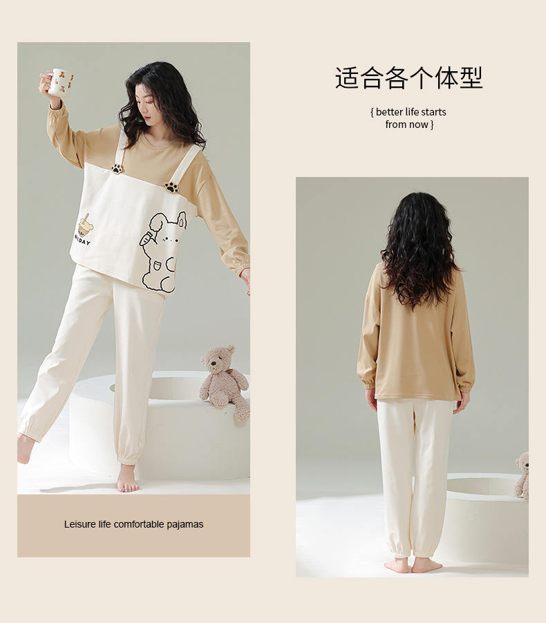만화 캐주얼 순면 커플 잠옷 여성의 가을 귀여운 풀오버 긴팔 바지는 젊은 남성을위한 옷을 입을 수 있습니다스토어 가기