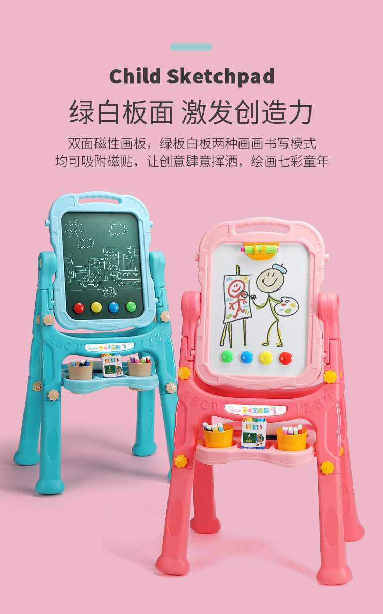 어린이 드로잉 보드 양면 자기 칠판 아기 브래킷 홈 낙서 쓰기 보드 이젤 지울 수있는 버전 선물 장난감스토어 가기