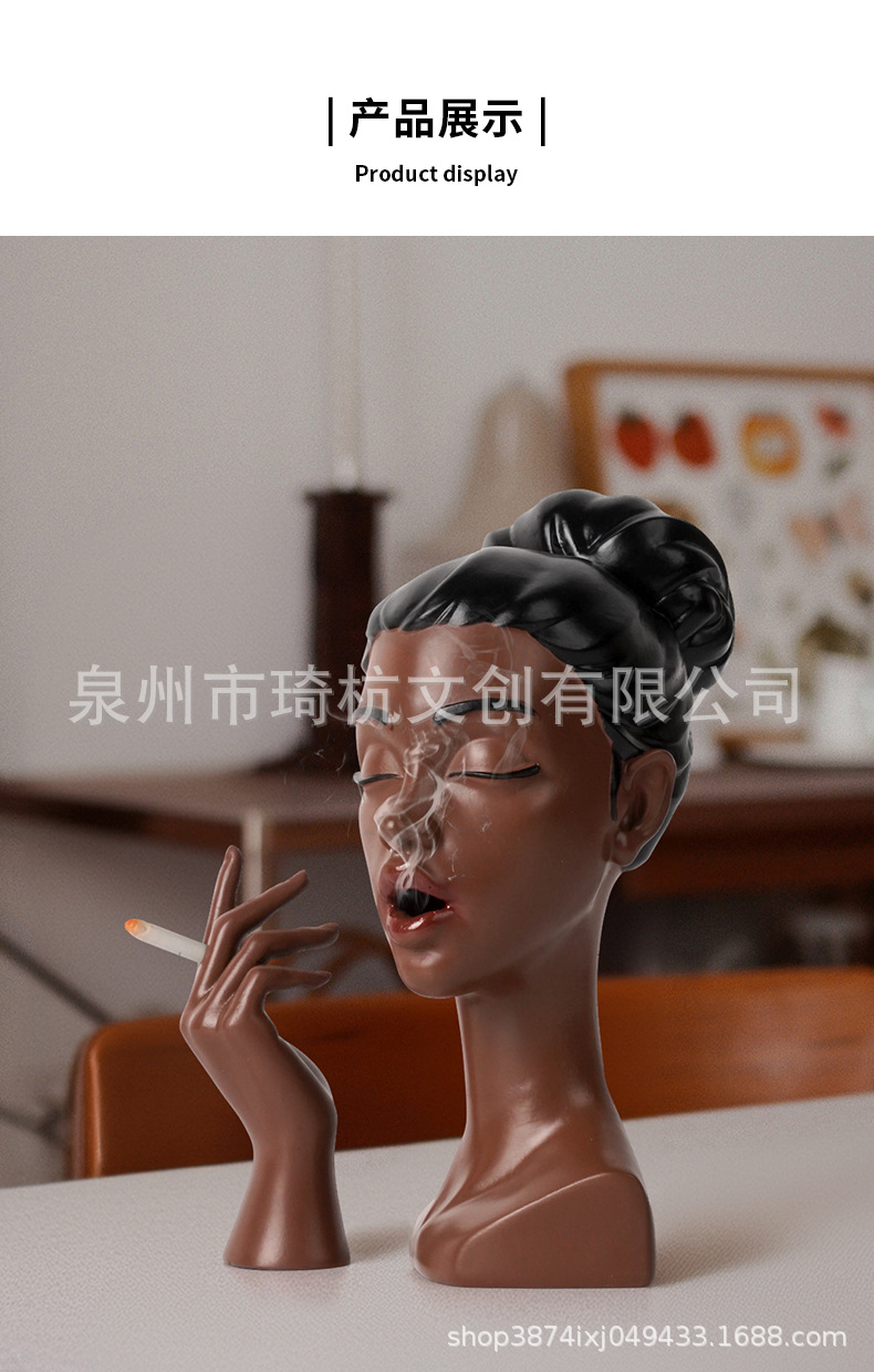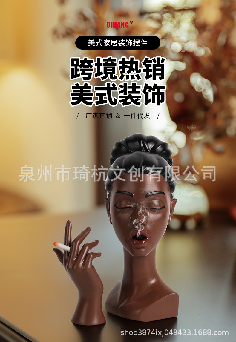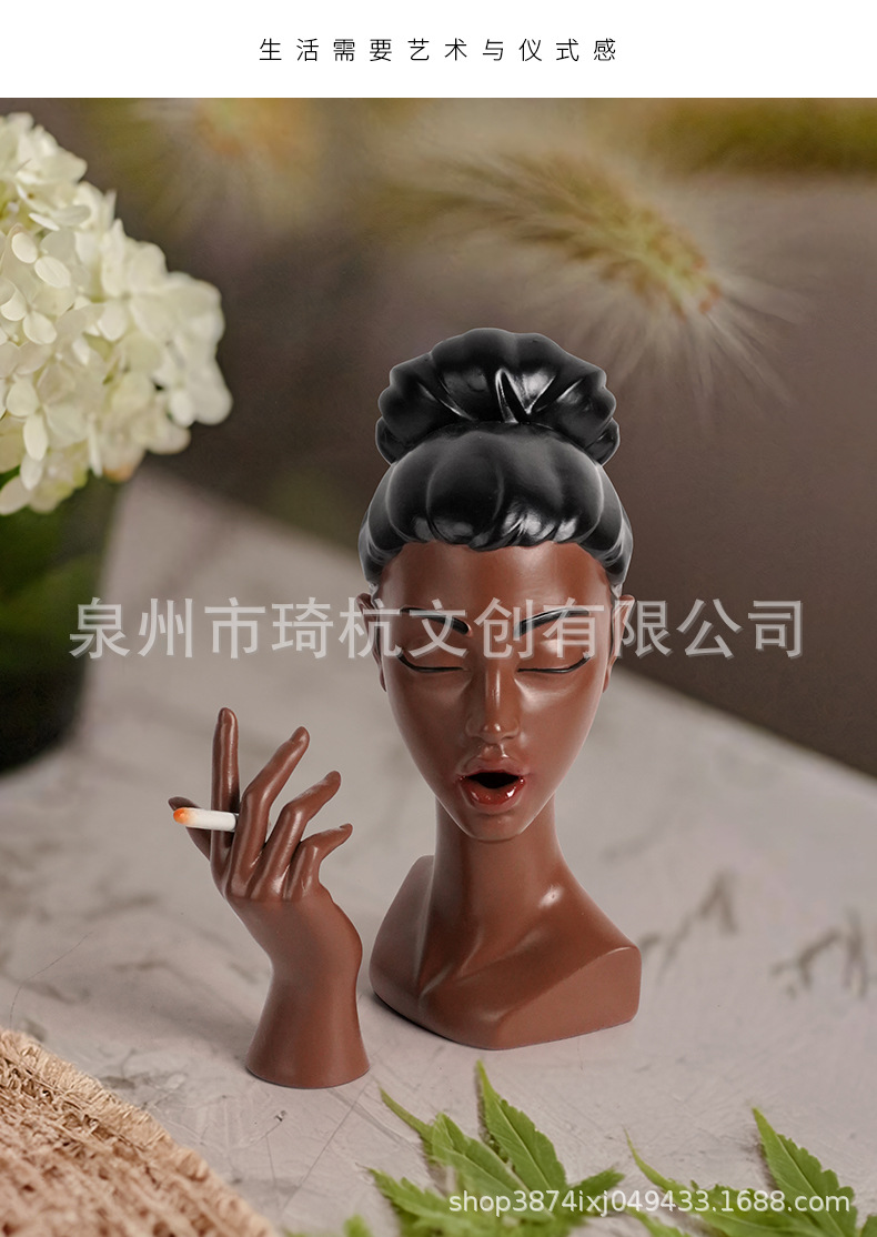 국경 간 신제품 담배 검은 여자 그림 머리 장식품 현관 거실 책상 수지 공예 장식스토어 가기