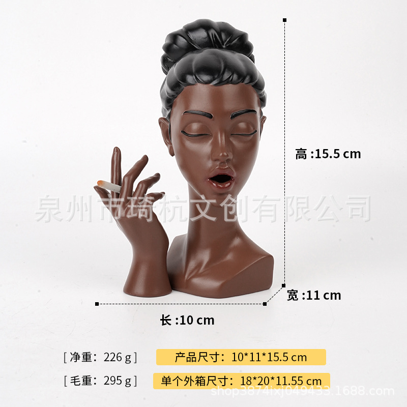 국경 간 신제품 담배 검은 여자 그림 머리 장식품 현관 거실 책상 수지 공예 장식