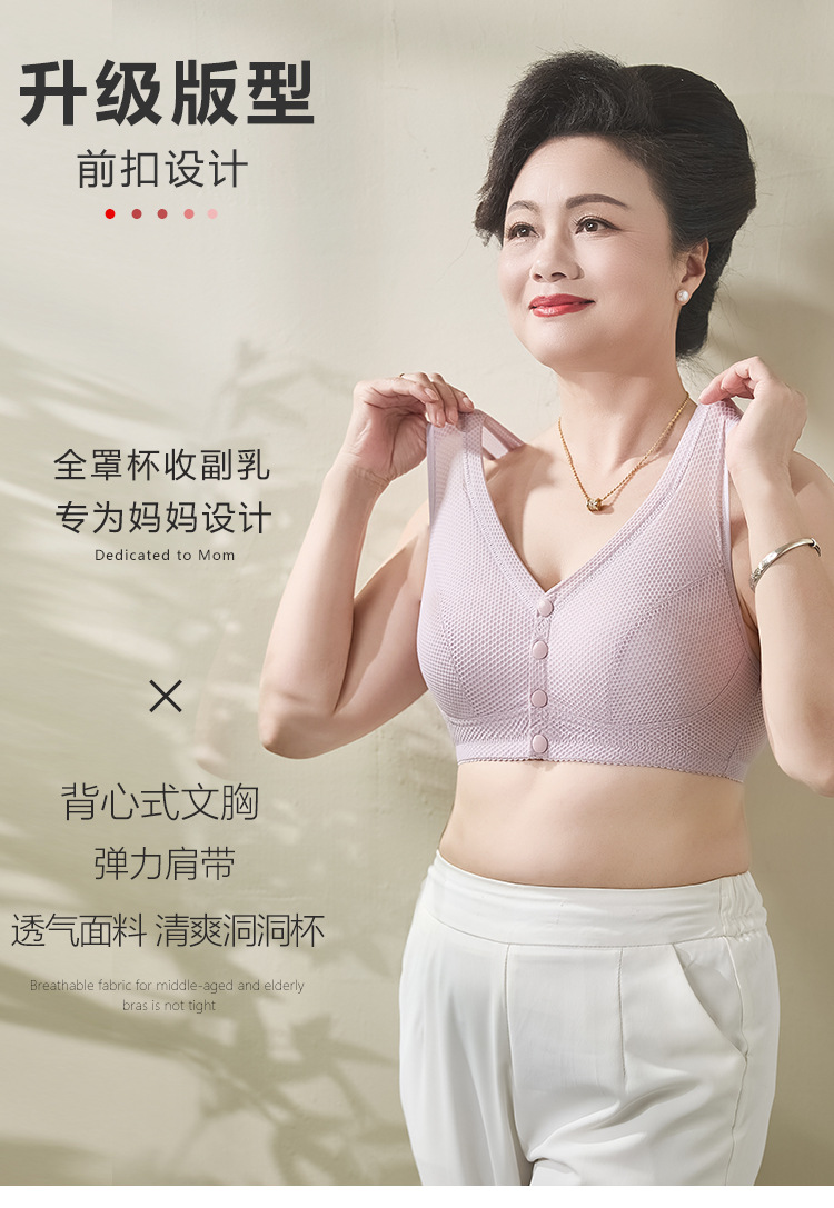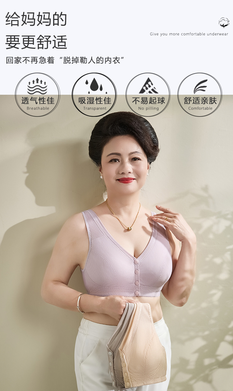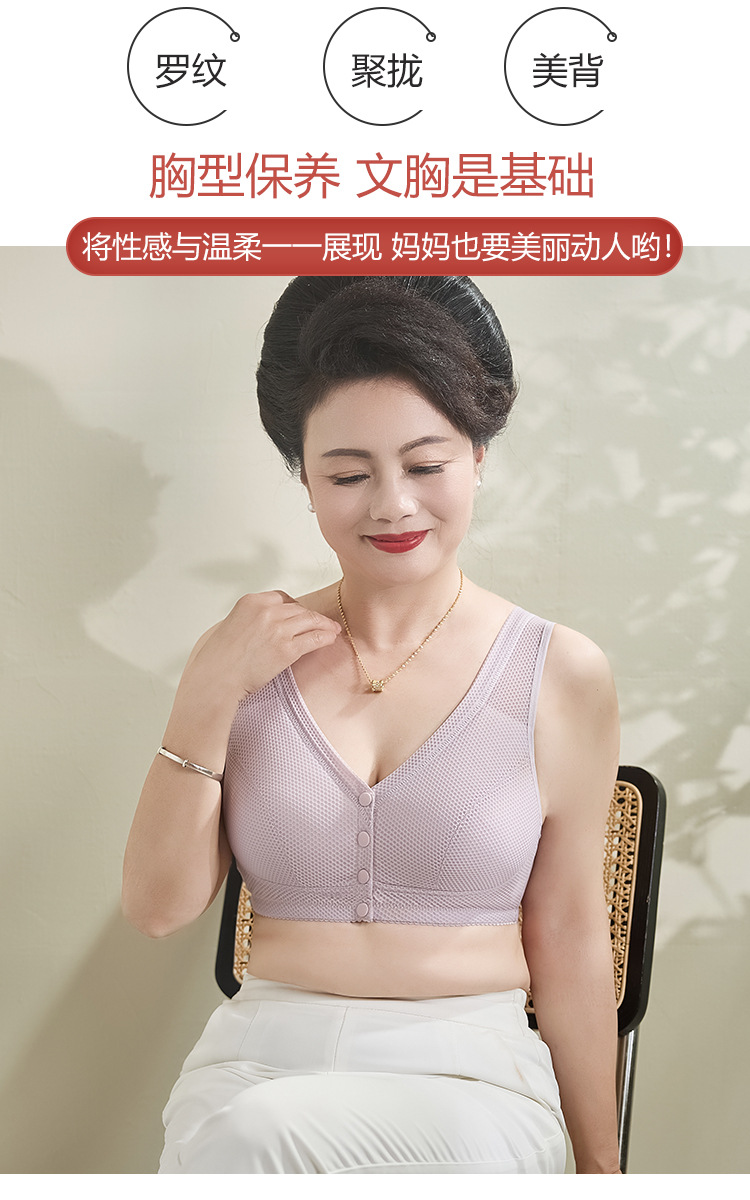 여름 동안 엄마 속옷 노인 앞 버클 편안한 플러스 사이즈 코튼 통기성 중년 무테 브라 중년 얇은 브라