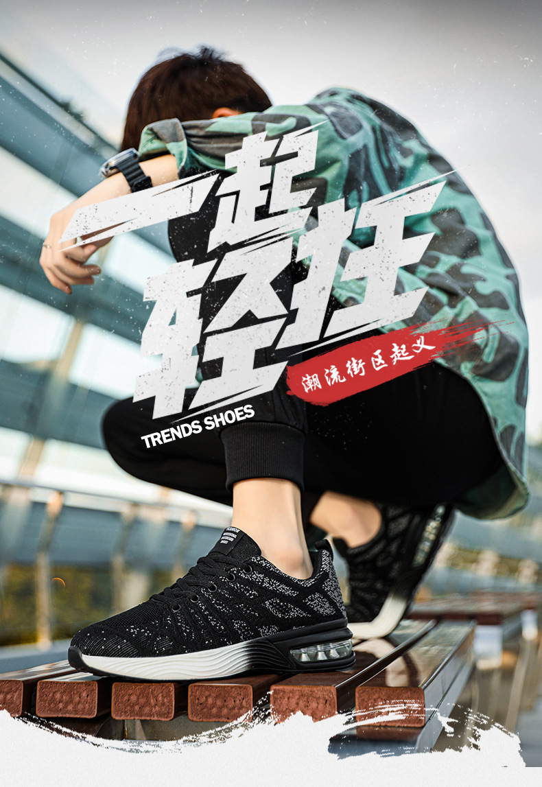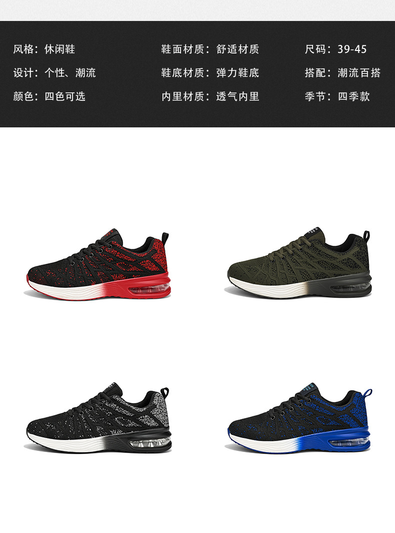 가을 2024 저가 국경 간 플러스 사이즈 남성 신발 플라이 짠 메쉬 통기성 러닝 슈즈 에어 쿠션 소프트 하단 트렌드 운동화