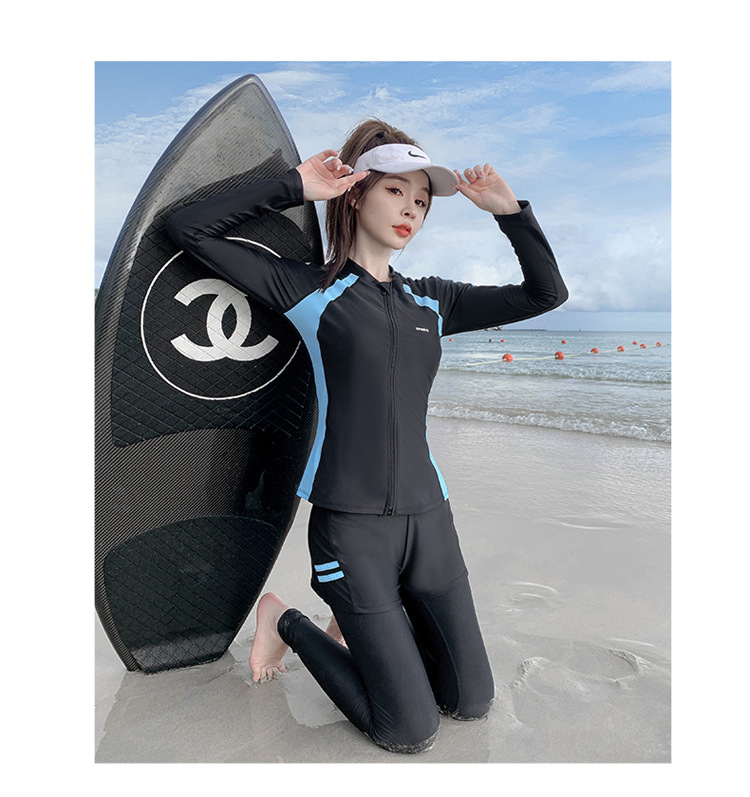 학생들을위한 한국 슬리밍 썬 스크린 긴팔 수영복 여성 스플릿 플랫 앵글 하이 허리 다이빙 세트 여성의 보수적 인 온천 목욕 세트