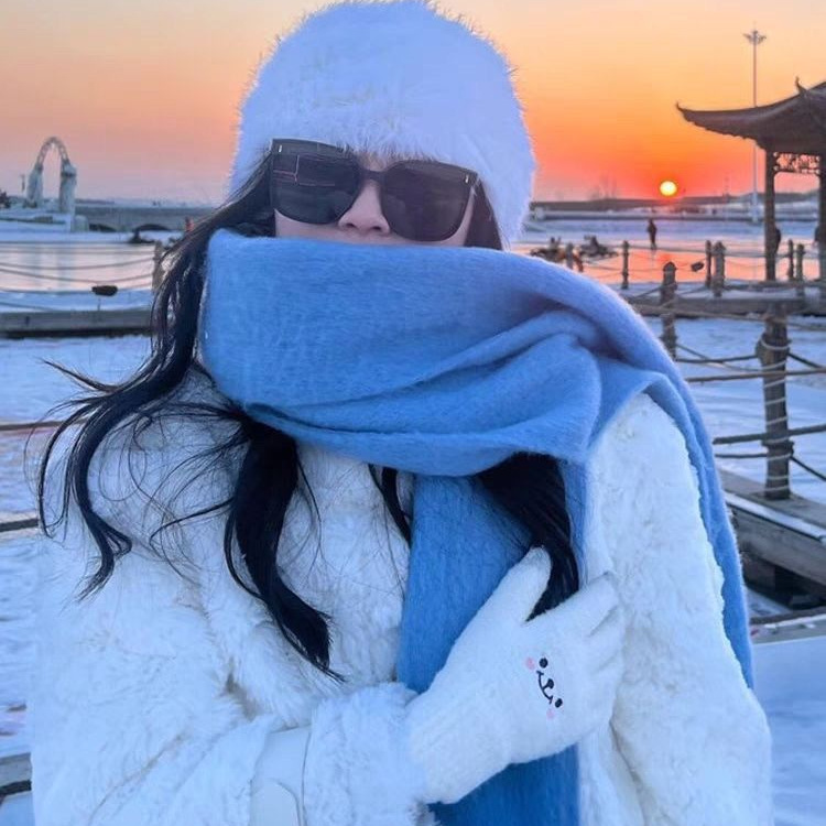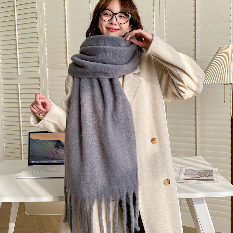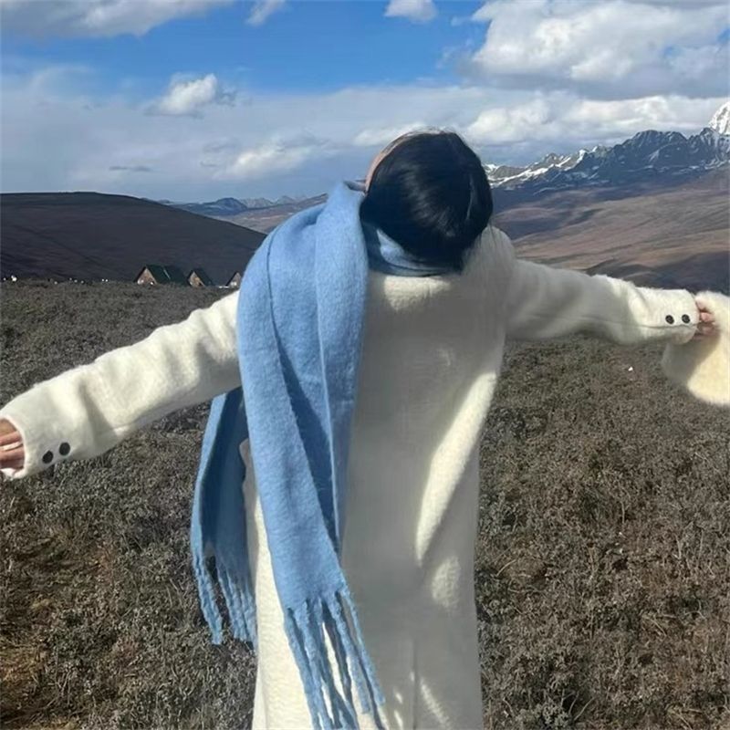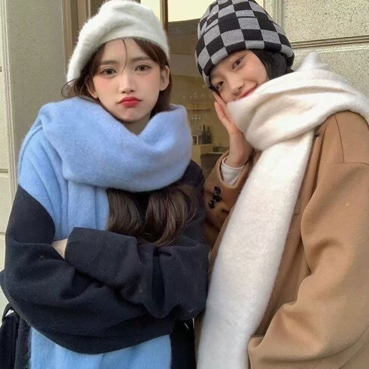 단색 2025 분위기 있는 스카프 여성용 겨울 신상 한국 스타일 학생용 다용도 두꺼운 숄 따뜻한 화이트닝 목도리스토어 가기