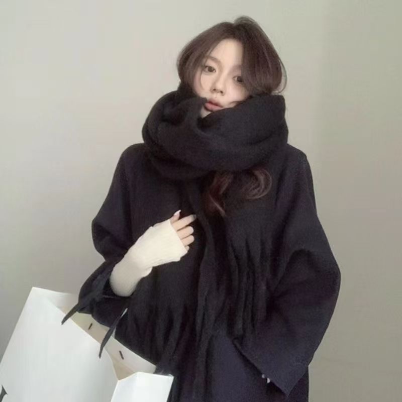 단색 2025 분위기 있는 스카프 여성용 겨울 신상 한국 스타일 학생용 다용도 두꺼운 숄 따뜻한 화이트닝 목도리