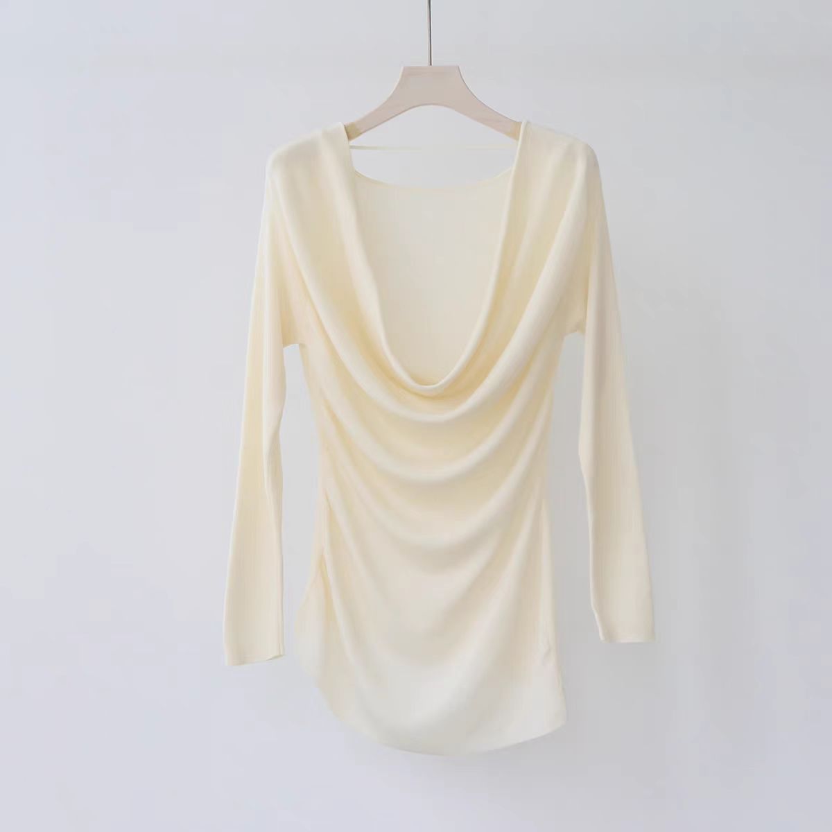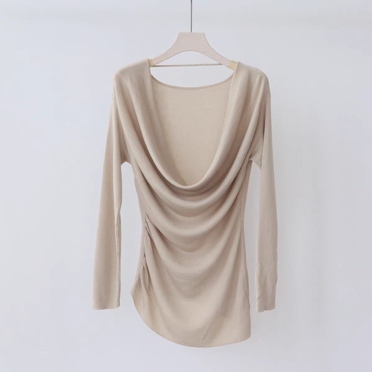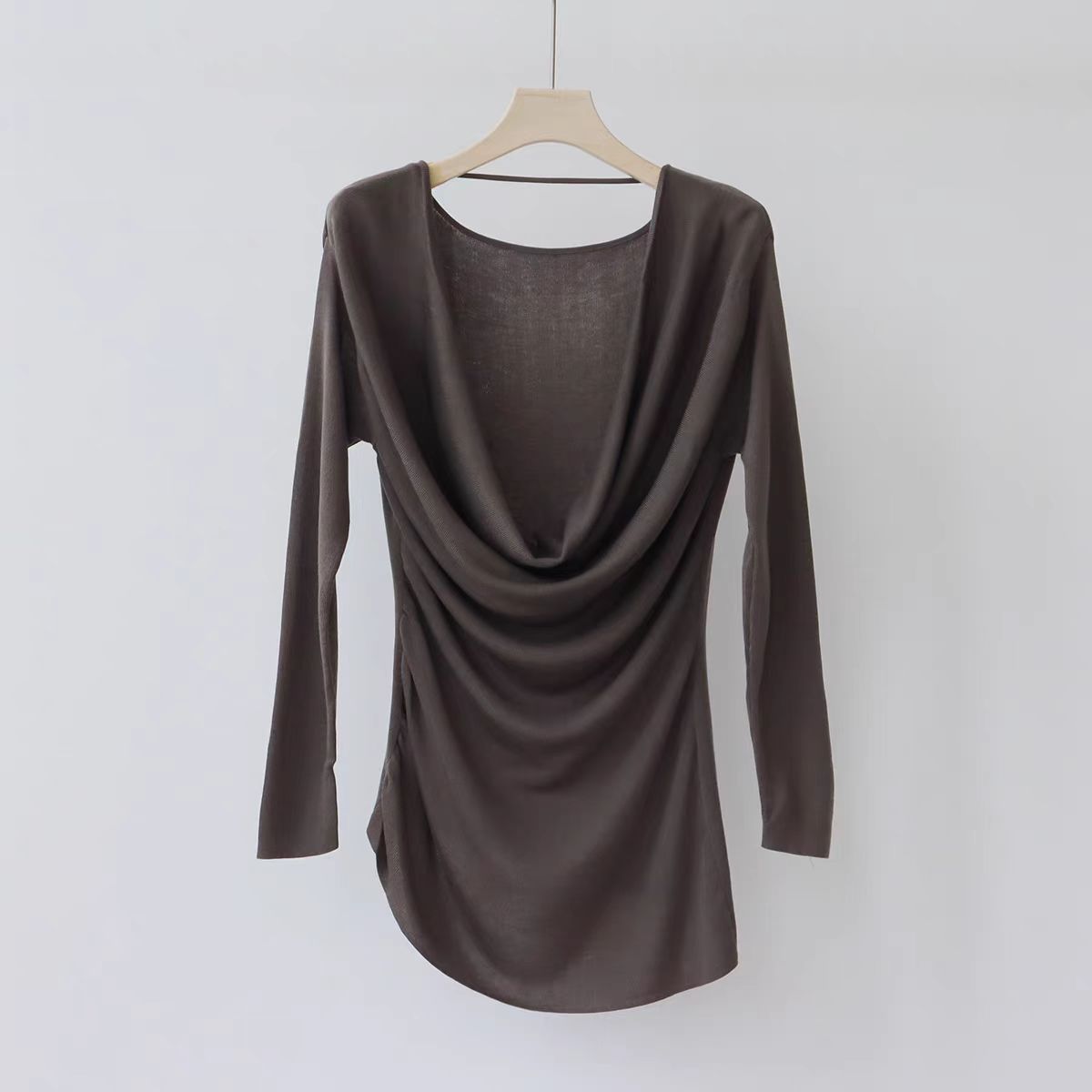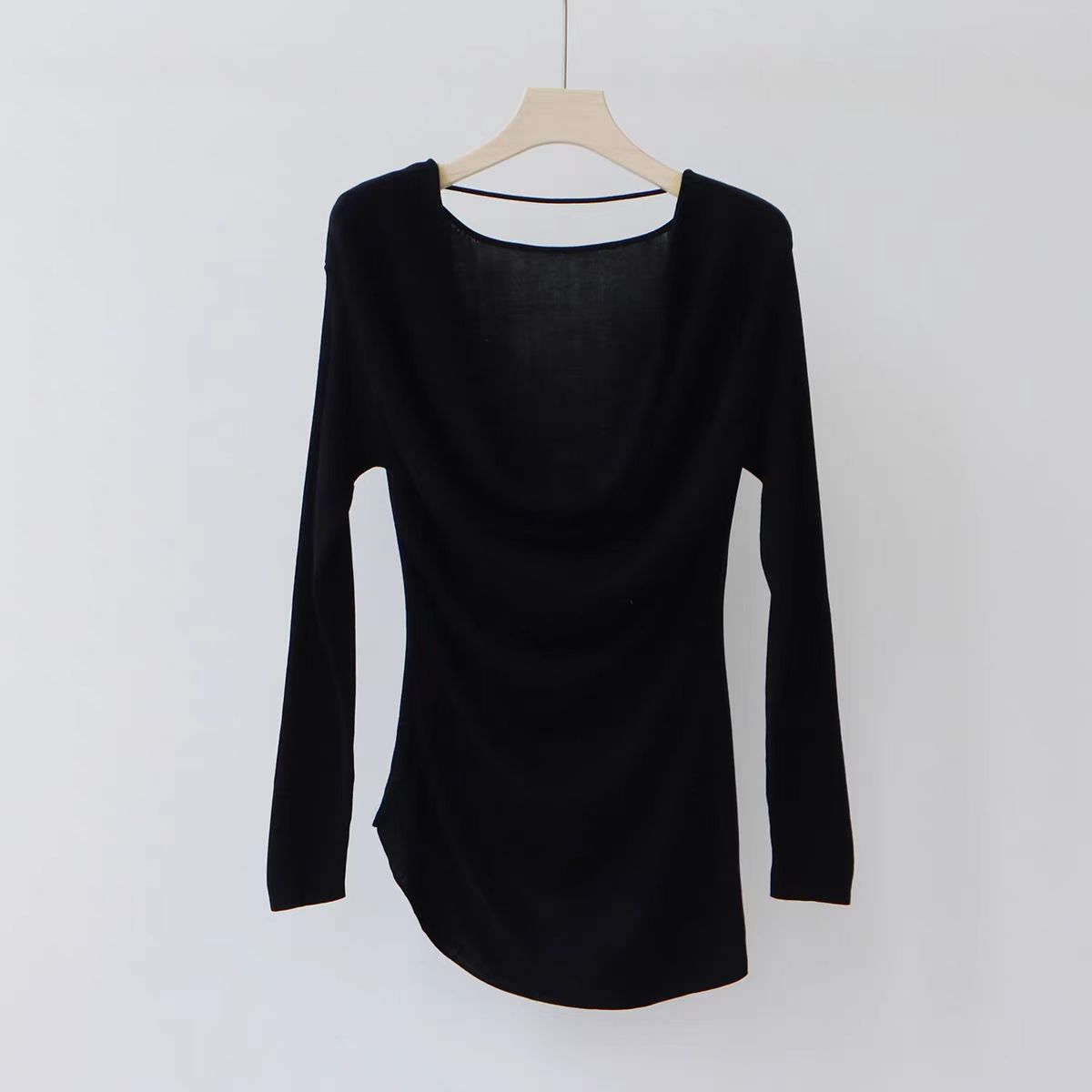 2025년 초봄 라운드넥 텐셀 플리츠 니트 스웨터 여성 슬림핏 슬리밍 이너웨어 탑 얇은 스타일리쉬 상의