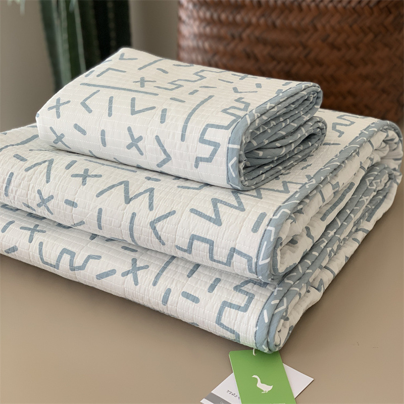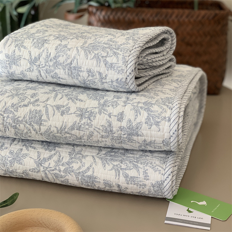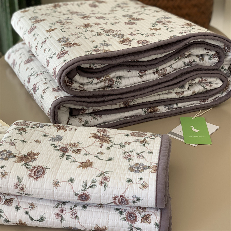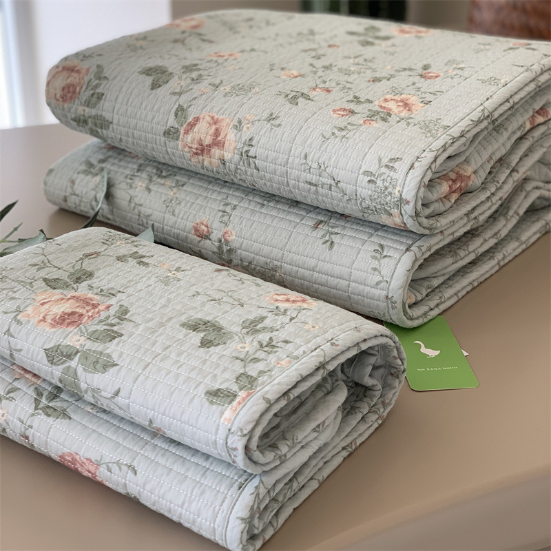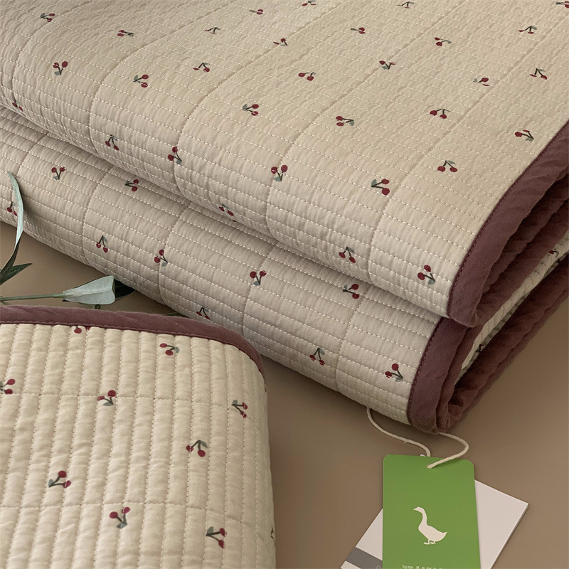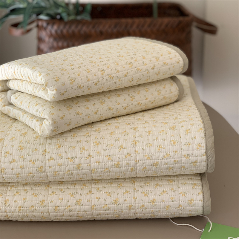 한국식 거위 양면 코튼 베드 커버 3 피스 세트 코튼 퀼트 다타미 매트 두꺼운 올 시즌 코튼 베드 시트