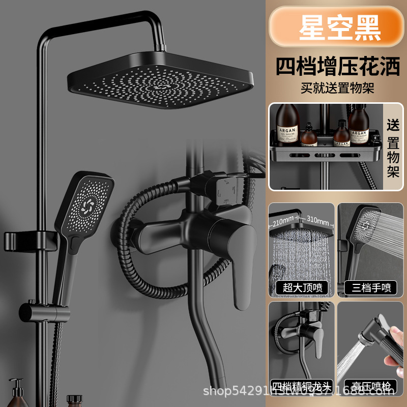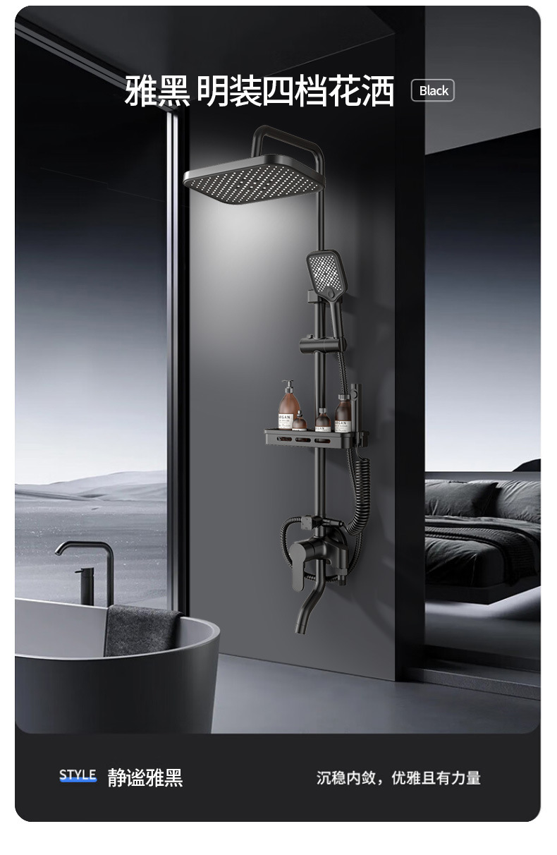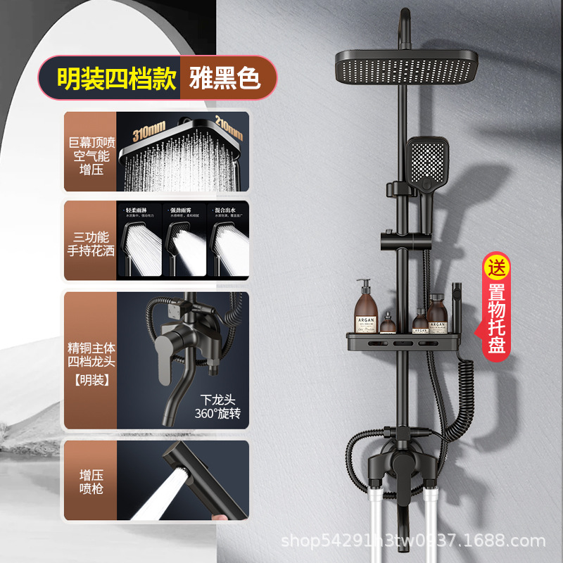 • 검은색●노출된 4단 슈퍼차저 샤워 세트 + 두꺼워진 본체, 50년 보증