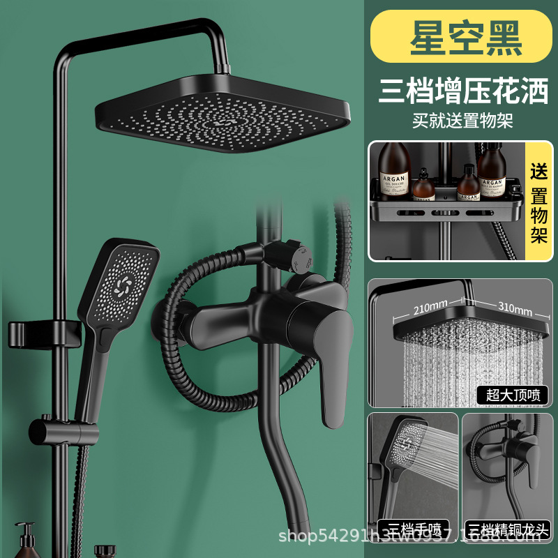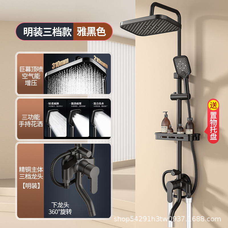 • 검은색●노출된 3단 슈퍼차저 샤워 세트 + 두꺼워진 본체, 50년 보증