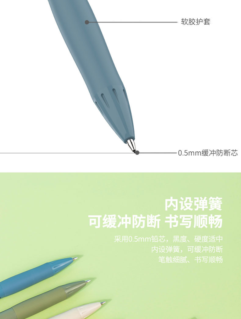 Deli S1233 Le Su Cushion 코어 브레이킹 예방 액티브 연필 0.5mm0.7mm 초등학생을위한 자동 연필