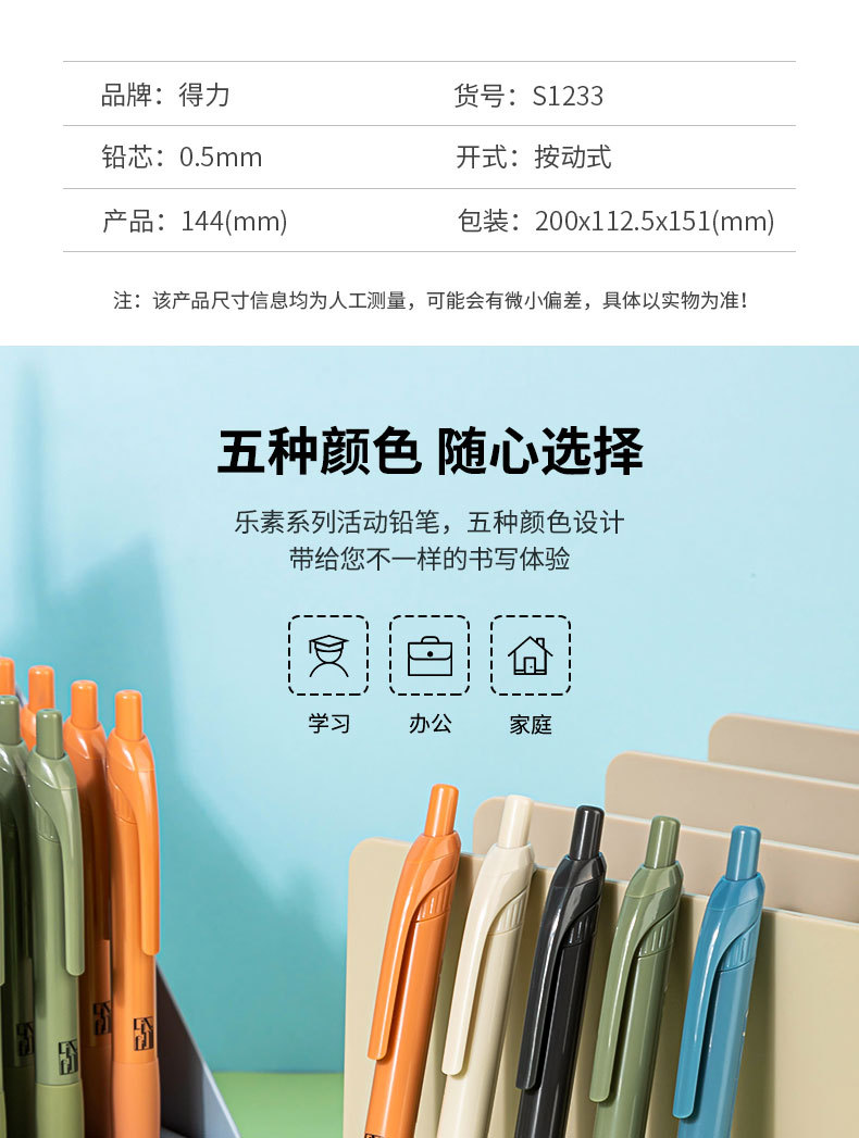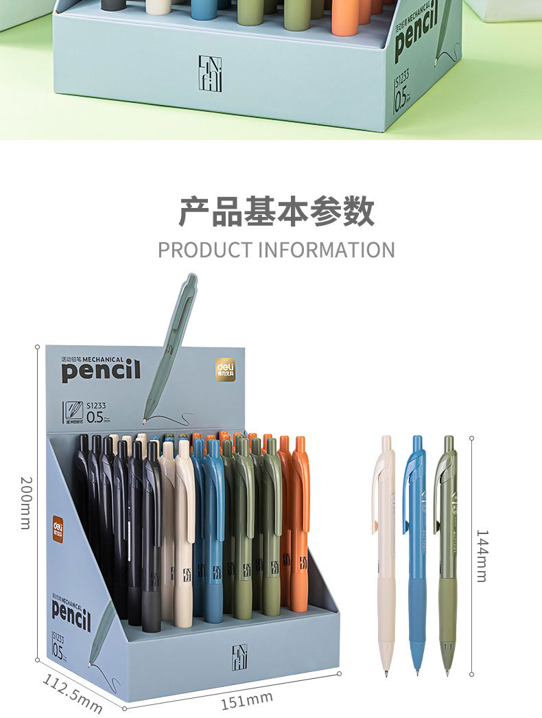 Deli S1233 Le Su Cushion 코어 브레이킹 예방 액티브 연필 0.5mm0.7mm 초등학생을위한 자동 연필스토어 가기