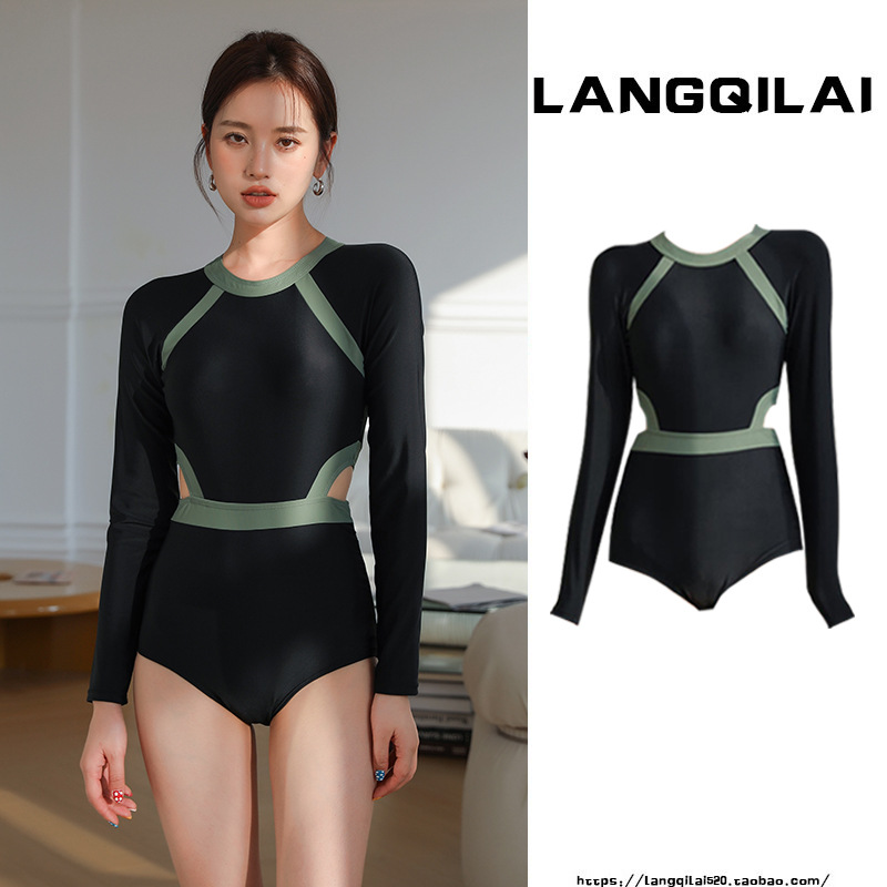 다이빙 세트 여성용 원피스 슬리밍 긴팔 서퍼 세트 스노클링 야외 보수 학생 젖은 옷 온천 태양 보호 수영복
