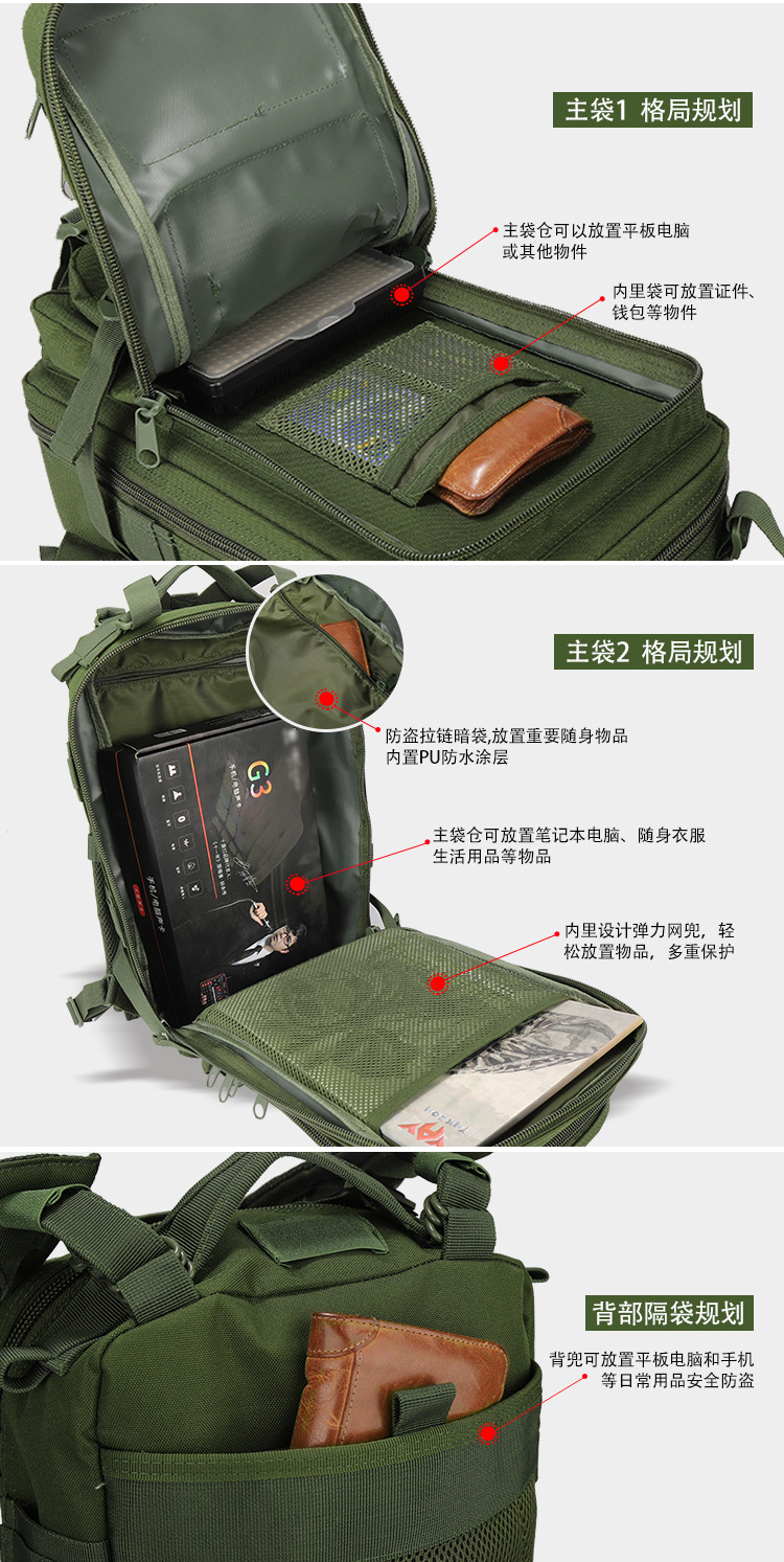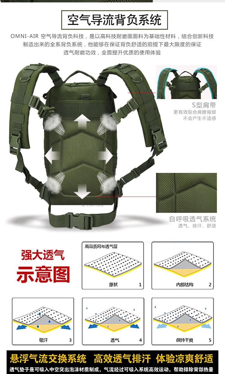 야외 등산 가방, 여행, 등산, 캠핑, 대용량 방수 옥스포드 천 어깨 어썰트 전술 배낭