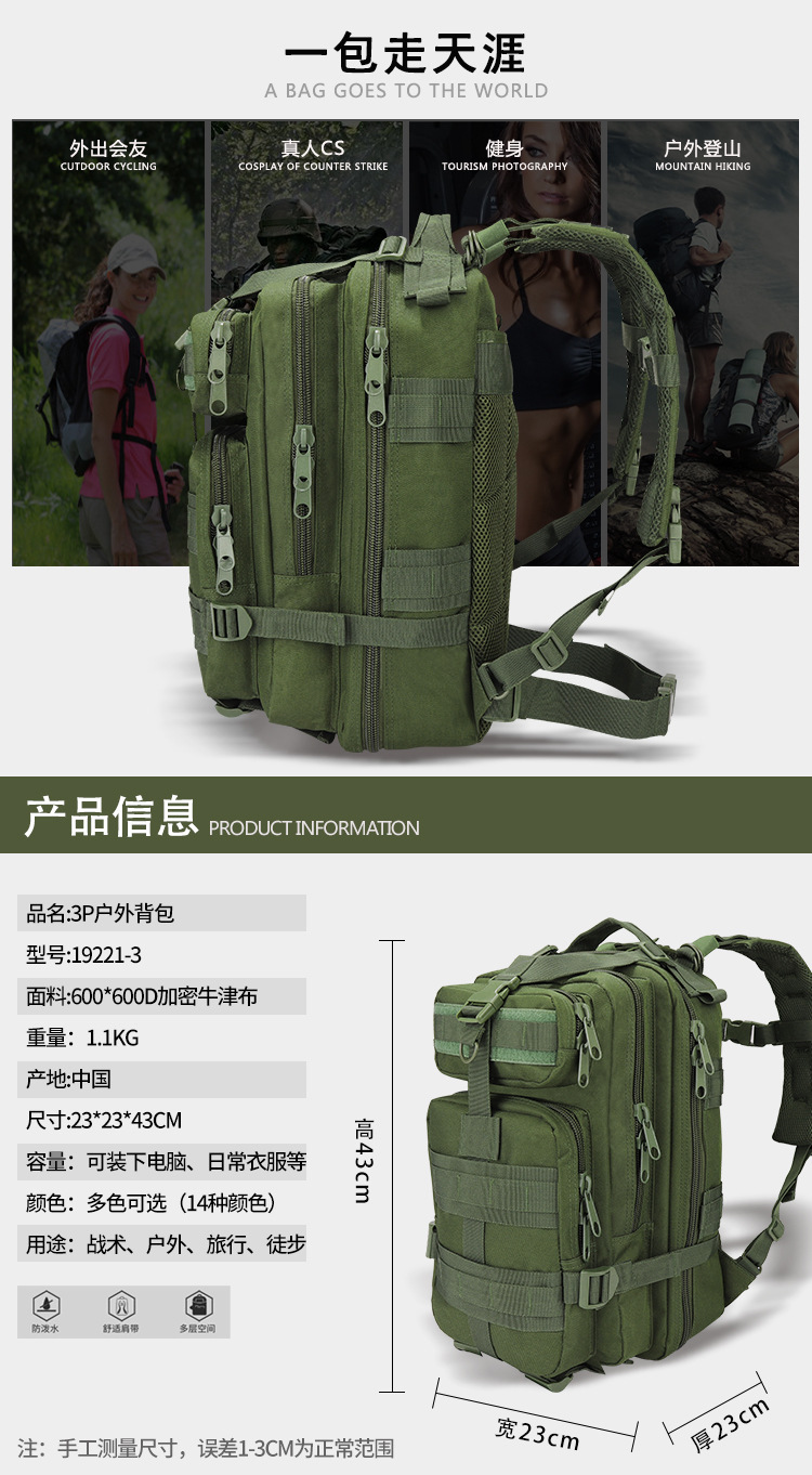 야외 등산 가방, 여행, 등산, 캠핑, 대용량 방수 옥스포드 천 어깨 어썰트 전술 배낭스토어 가기