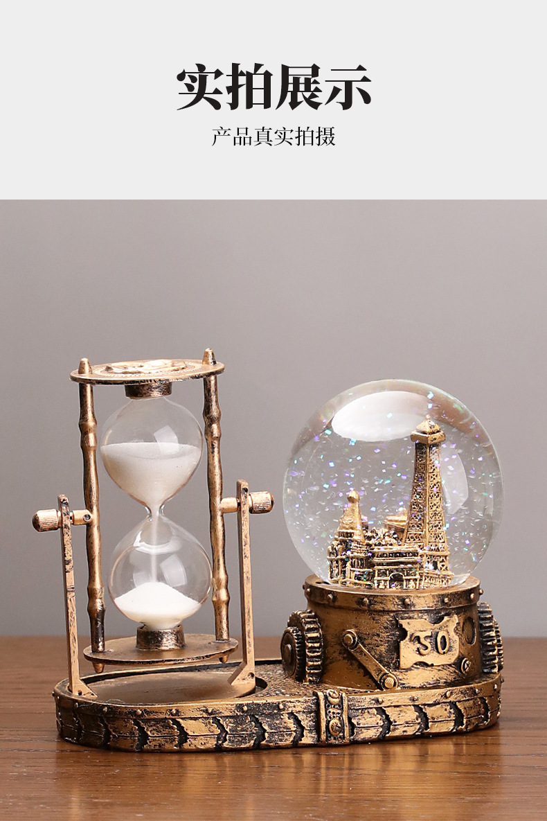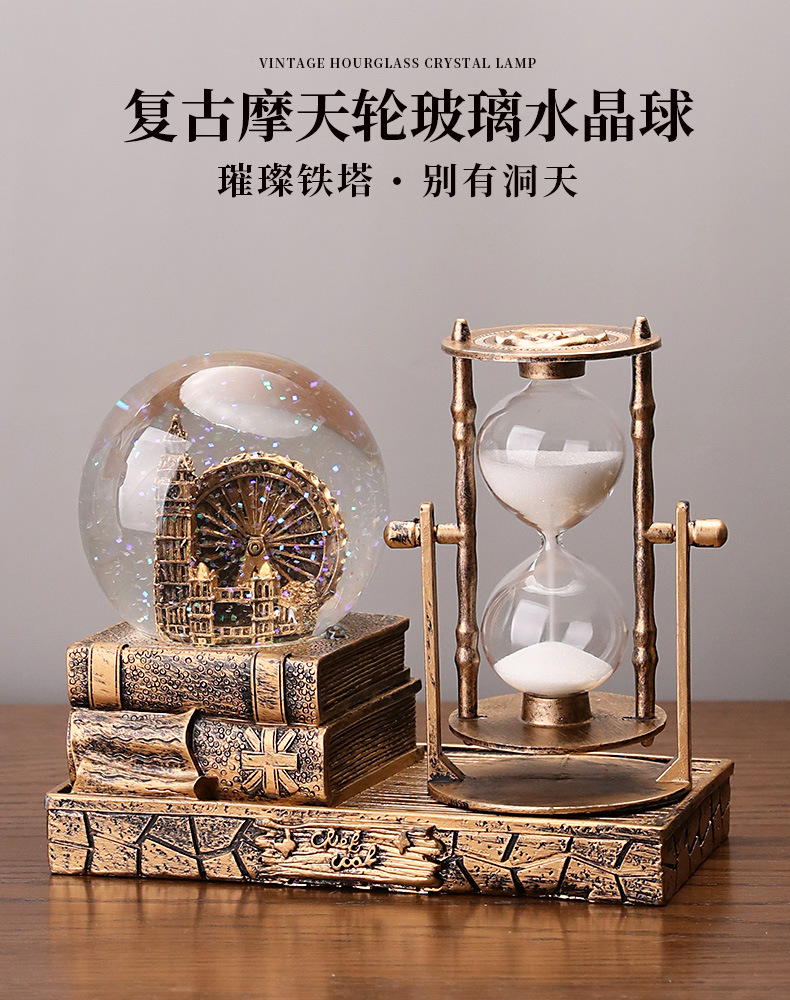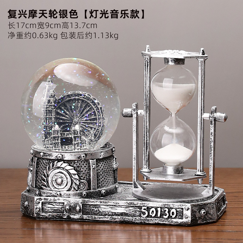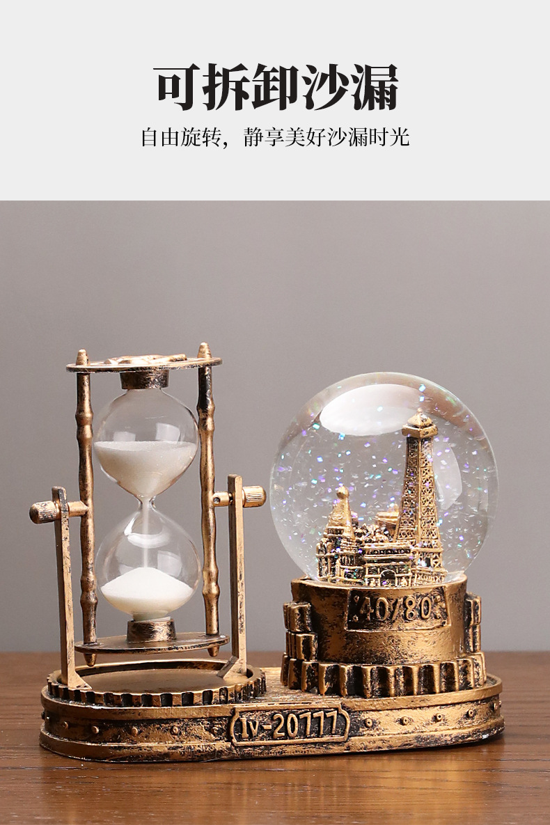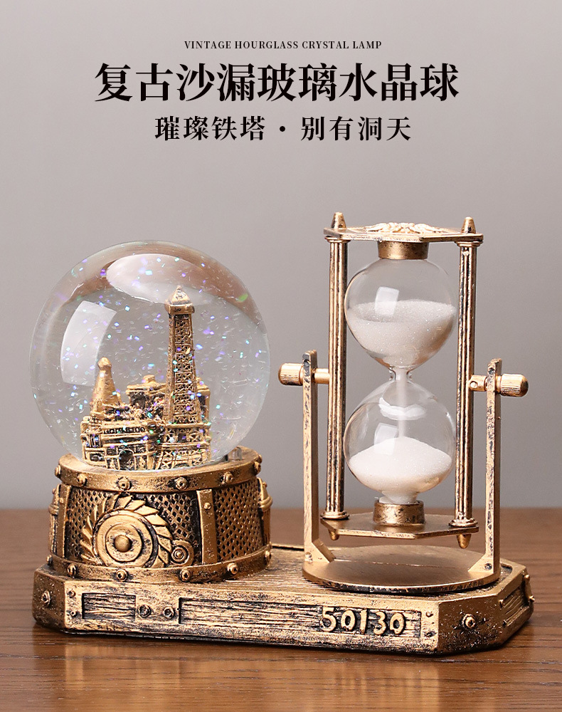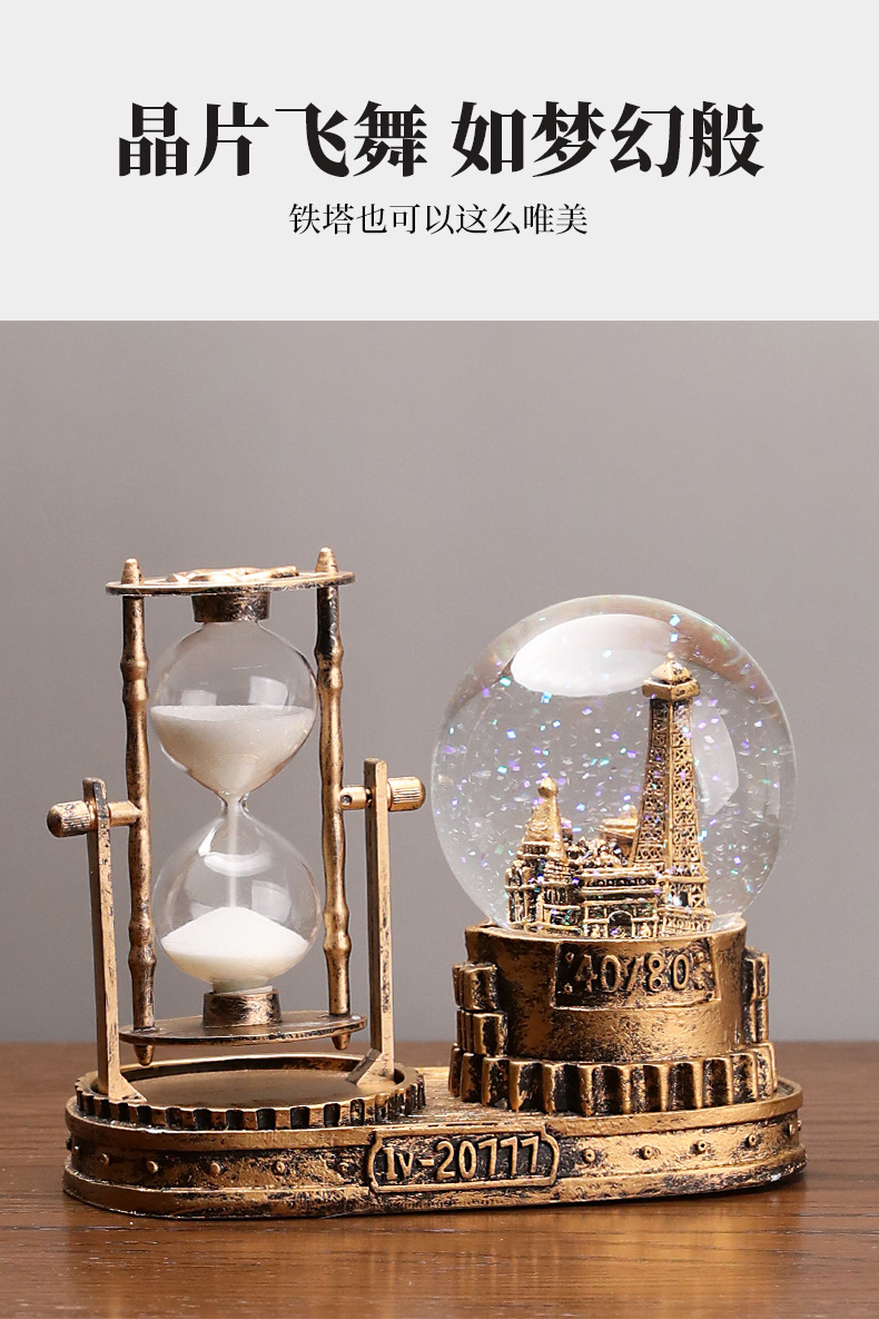타워 모양 발광 크리스탈 볼 학생용 타이머 모래시계 레진 선물 데스크탑 장식품 아크릴스토어 가기