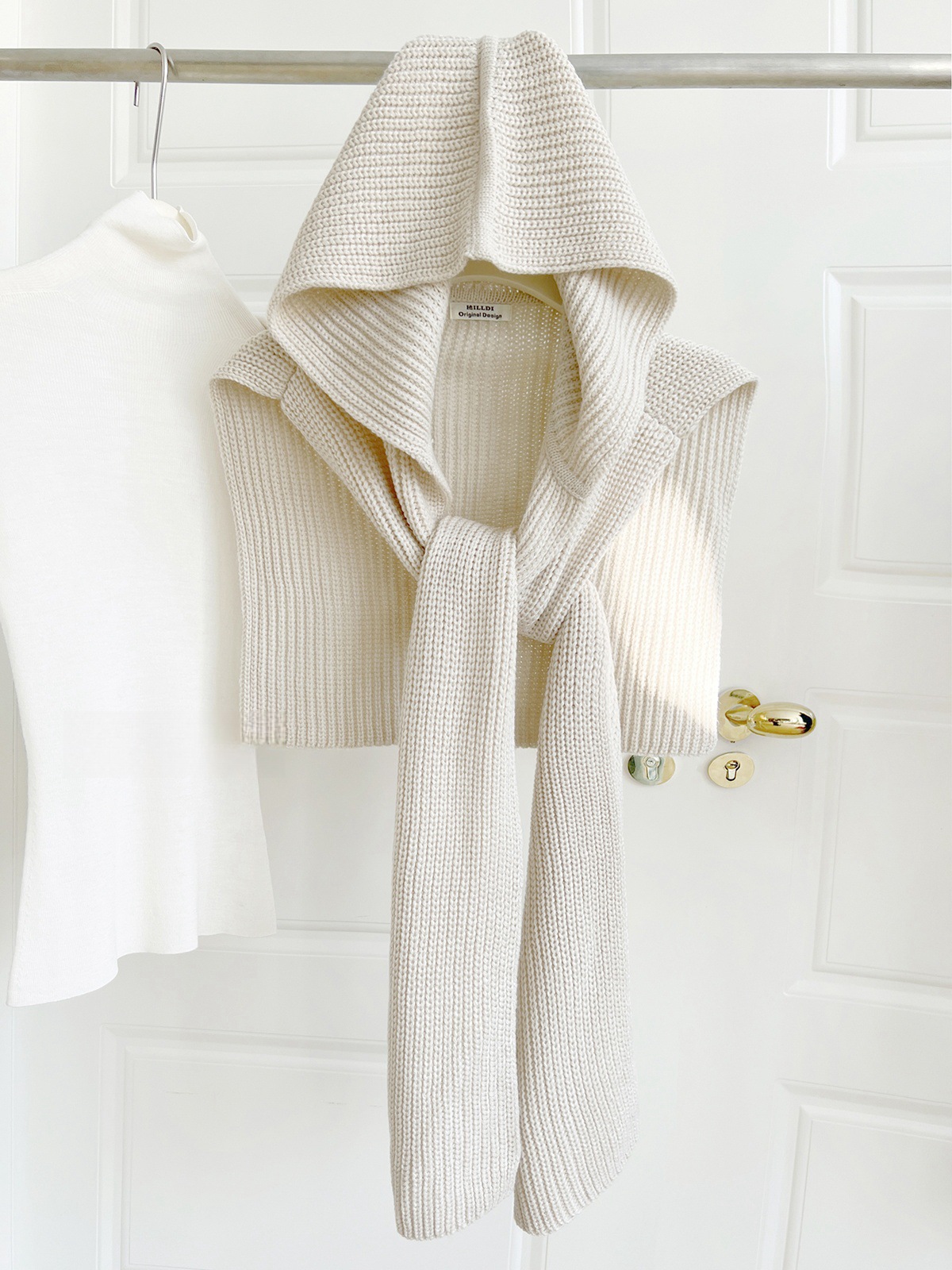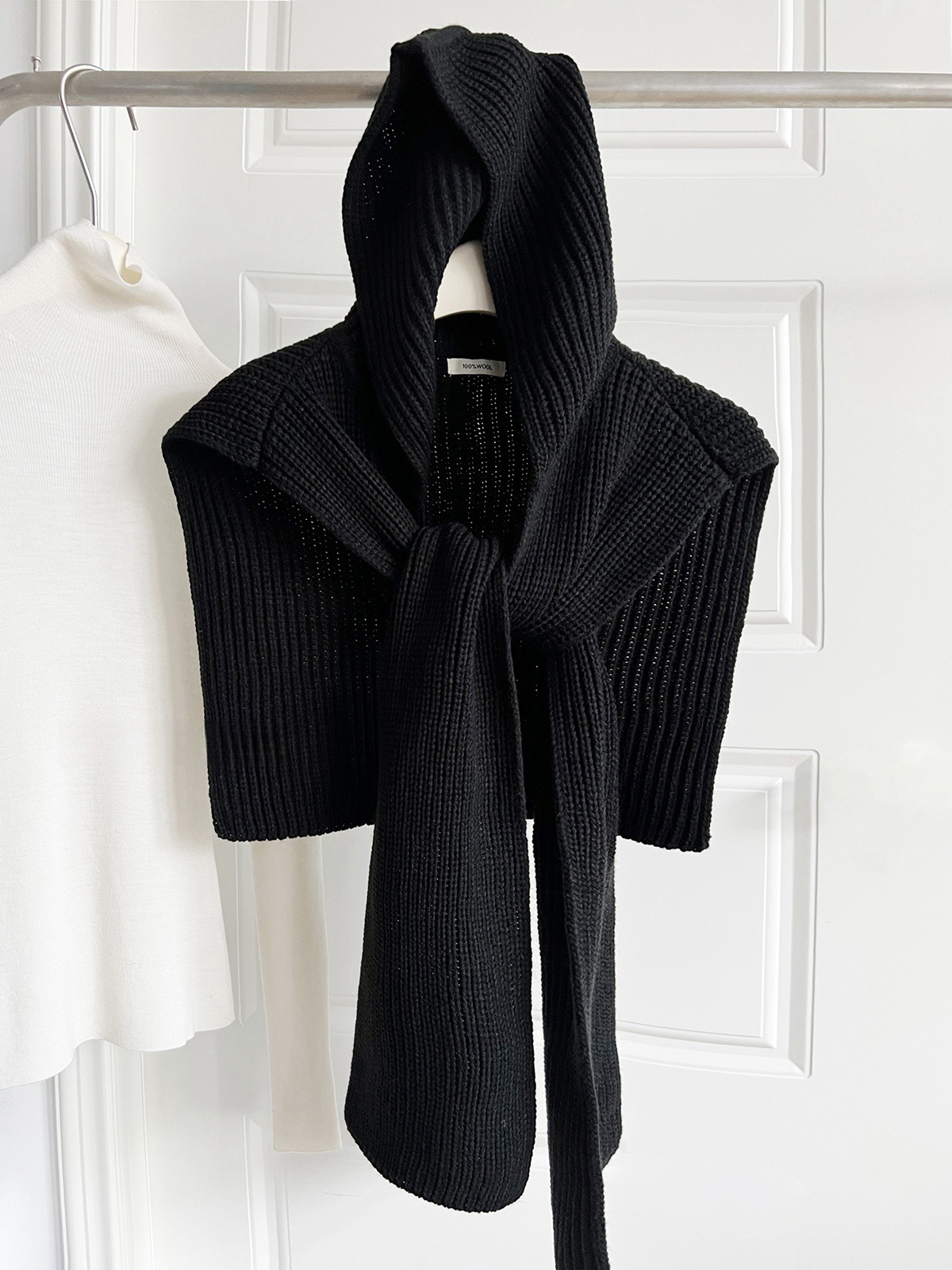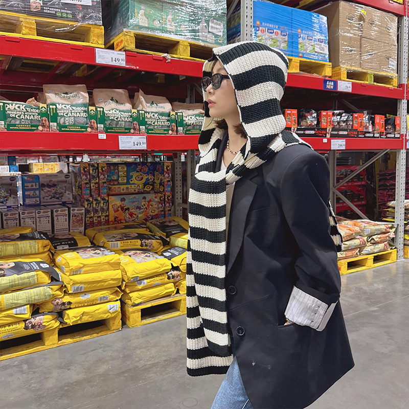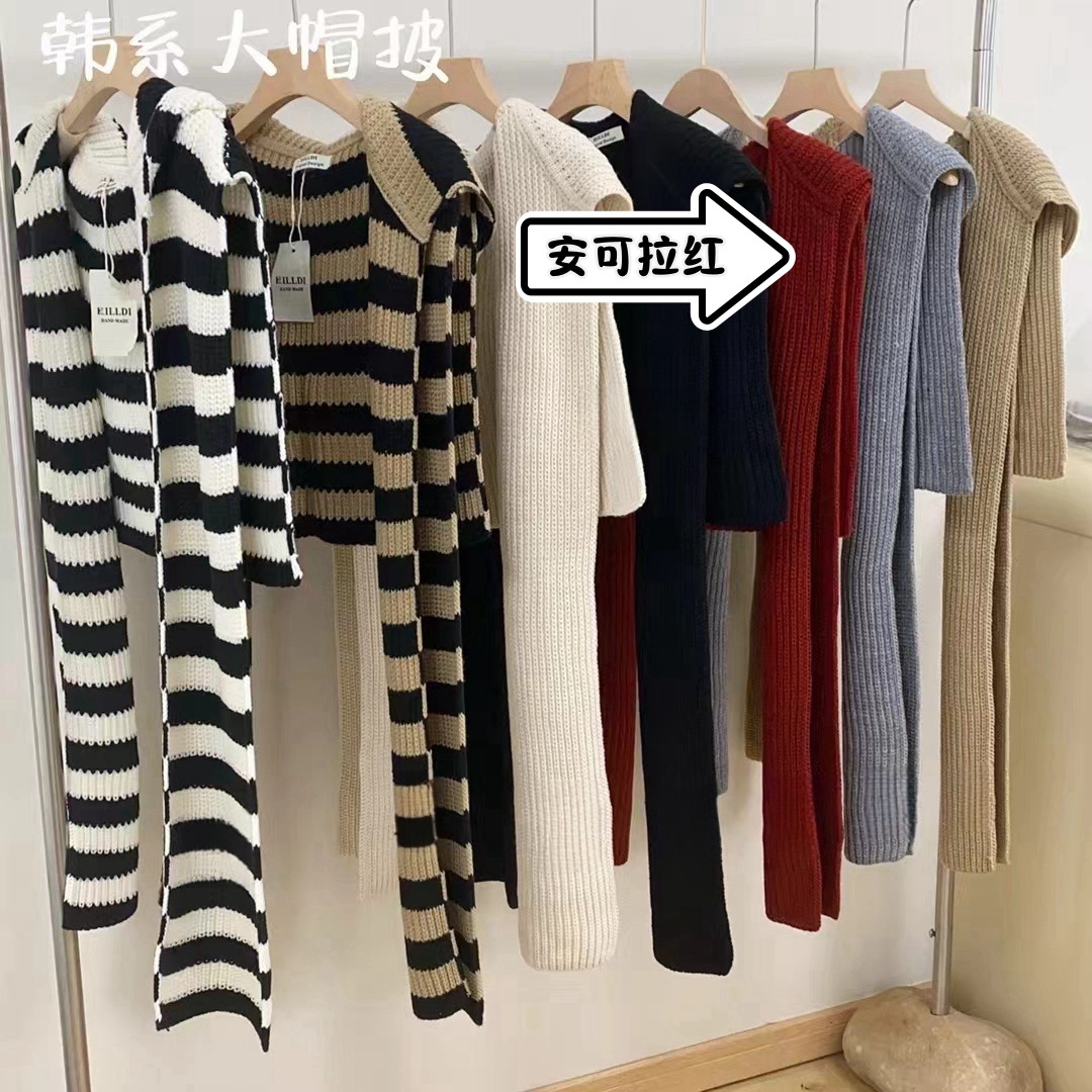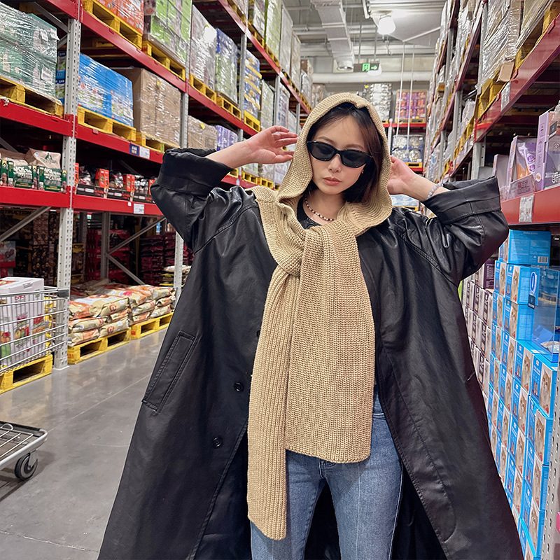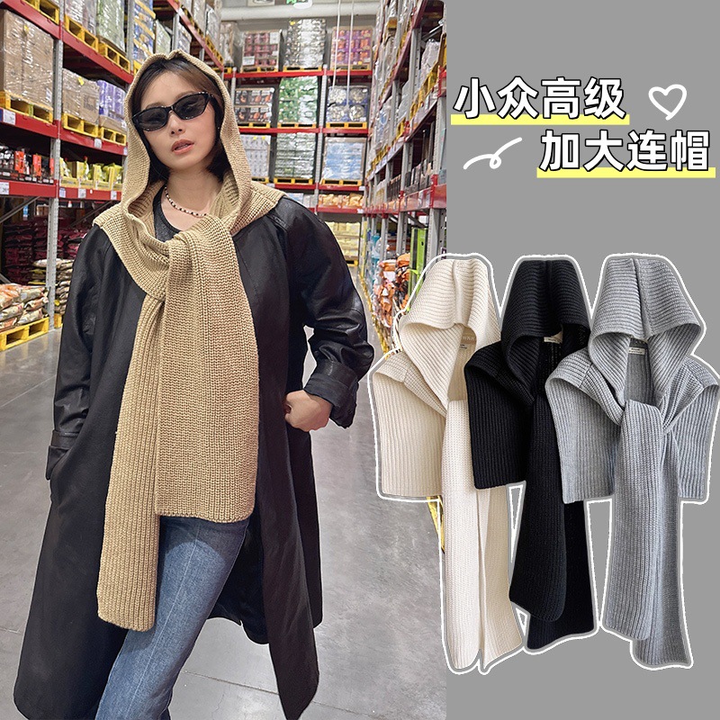 韩国东大门设计感时髦针织连帽披肩女秋冬保暖围脖百搭外搭坎肩潮