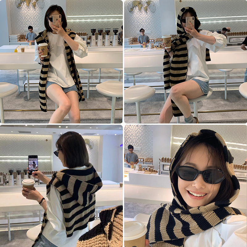 한국 동대문 디자인 센스 세련된 후드 목도리 여성 가을 겨울 따뜻한 목 올매치 아우터 세탁기 유행스토어 가기