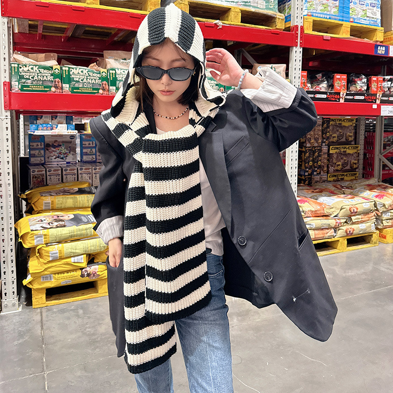 • [XCP 빅햇 숄] 흑백 스트라이프