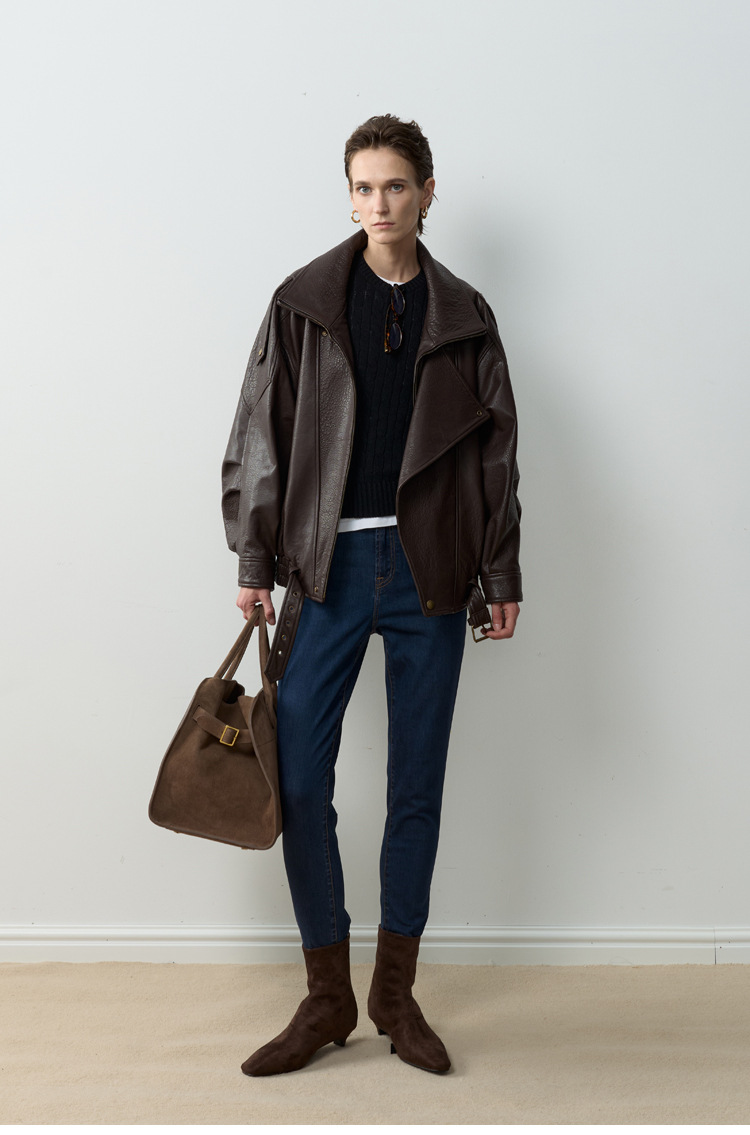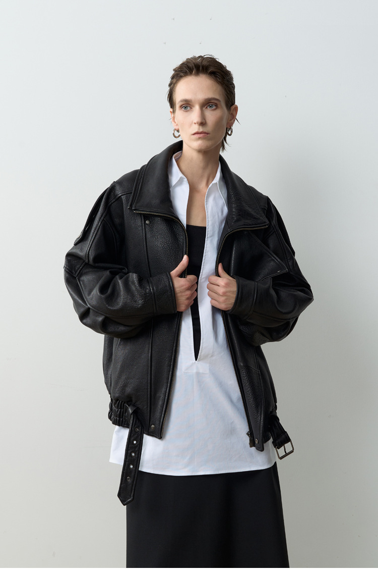 유럽 하이 엔드 정품 가죽 여성용 세련된 멋진 가을 새로운 느슨한 플러스 사이즈 유행 정품 양가죽 코트스토어 가기