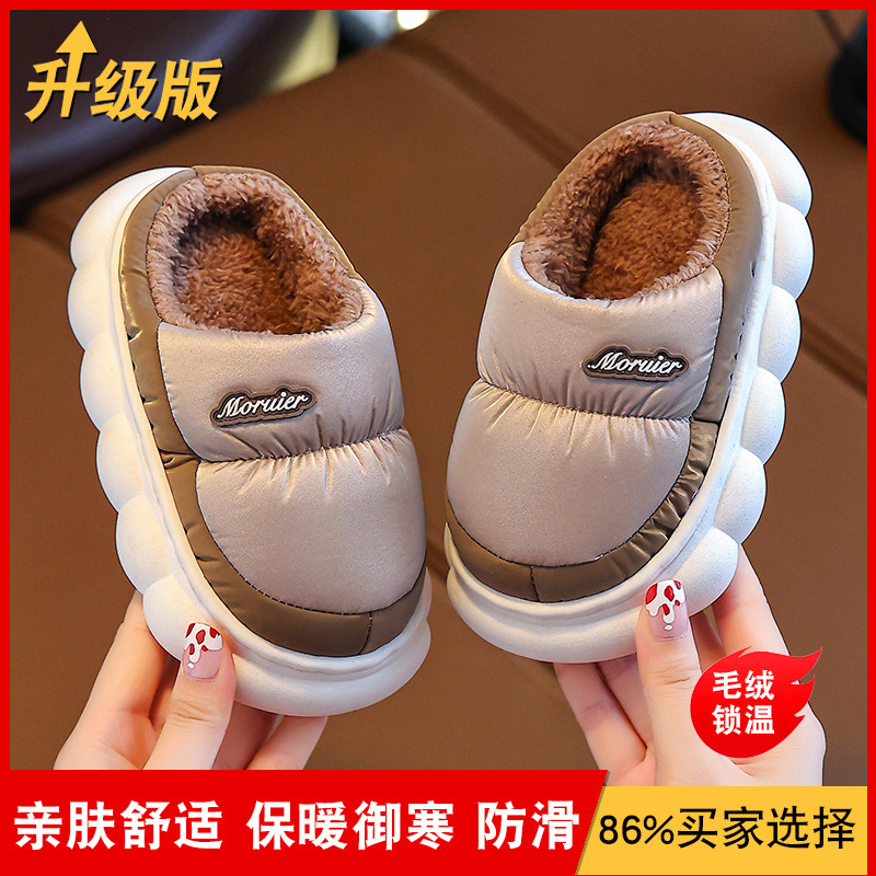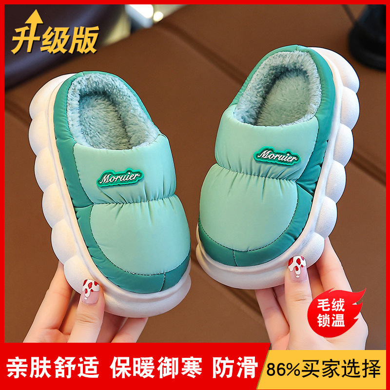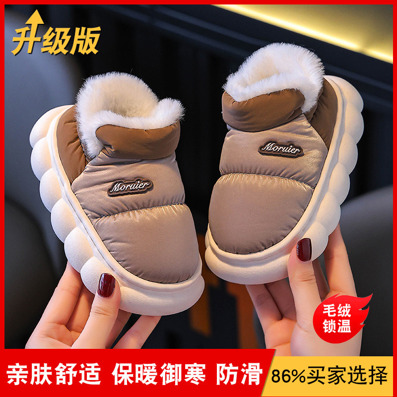 겨울 어린이 면화 슬리퍼 가방 2024 새로운면 신발 홈 큰 어린이 기모 따뜻한 미끄럼 방지 방수 신발스토어 가기