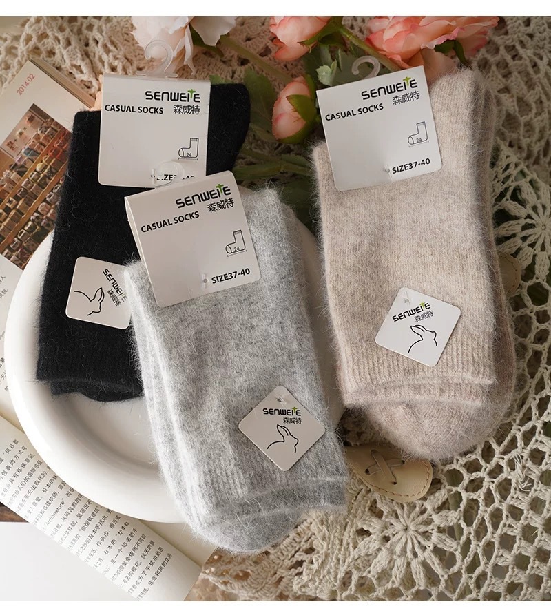 Yuanrun 홈 가을 겨울 토끼 양모 양말 여성 미드 양말 Ins 한국 스타일 두꺼운 따뜻한 부드러운 양모 양말 더블 바늘스토어 가기