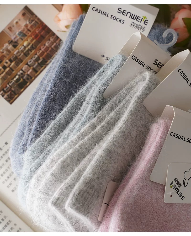 Yuanrun 홈 가을 겨울 토끼 양모 양말 여성 미드 양말 Ins 한국 스타일 두꺼운 따뜻한 부드러운 양모 양말 더블 바늘