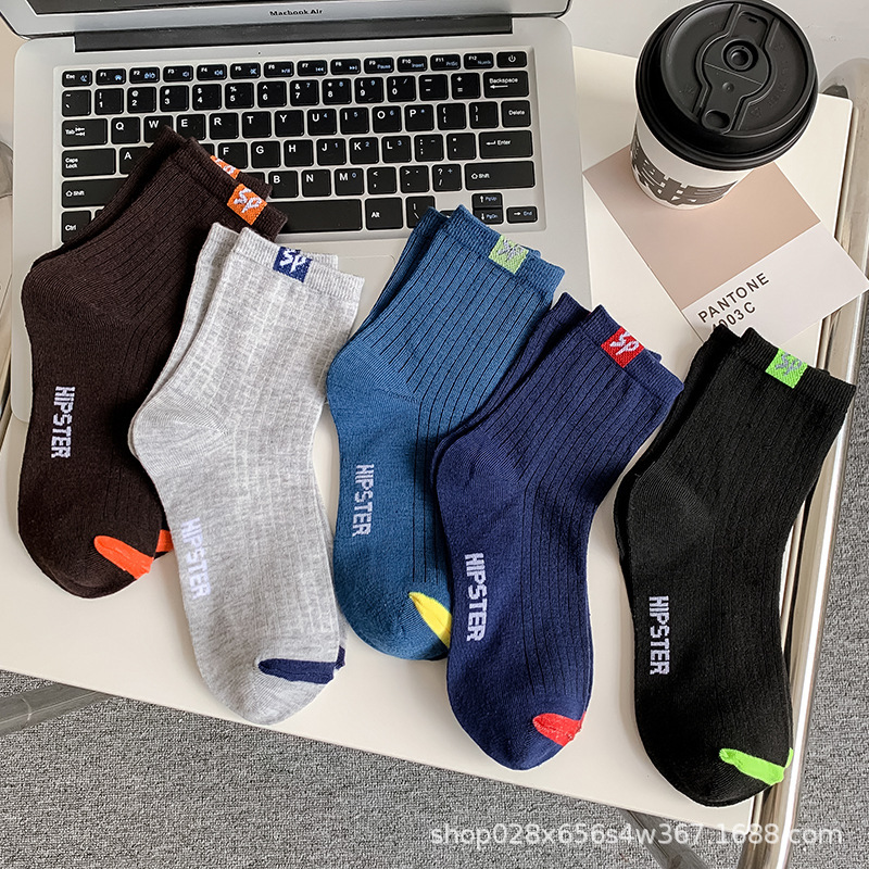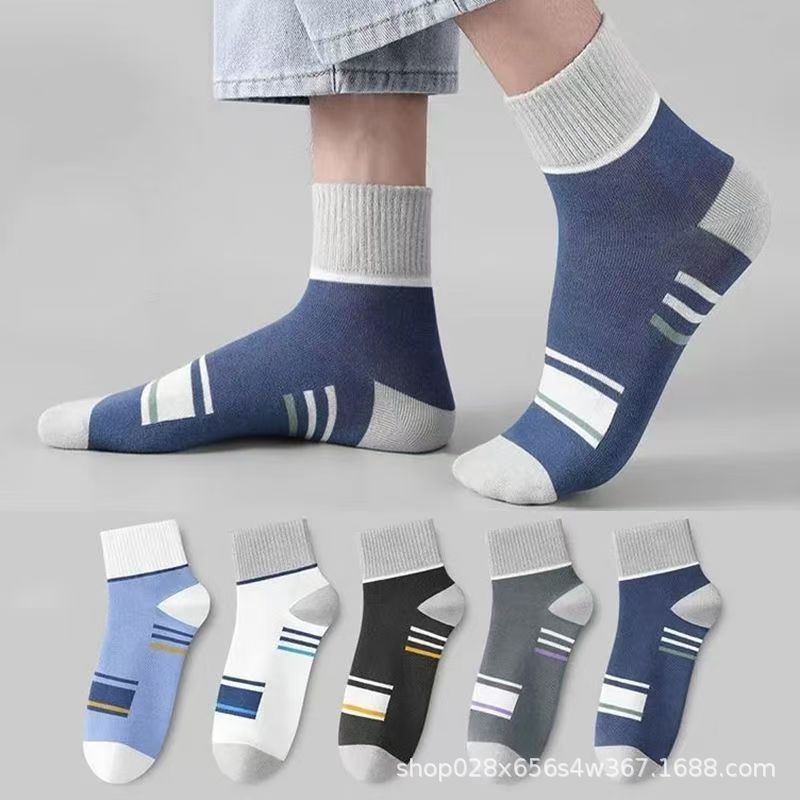 • 5가지 컬러의 얇은 스트라이프 미드 종아리 양말 (컬러 믹스 앤 매치)