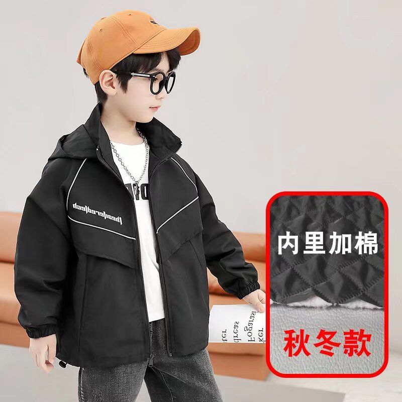2024 년 뉴 보이즈의 가을과 겨울 후드 재킷 탑 캐주얼 서양식 중년 어린이 가을 퀼트 러시 의류 트렌디