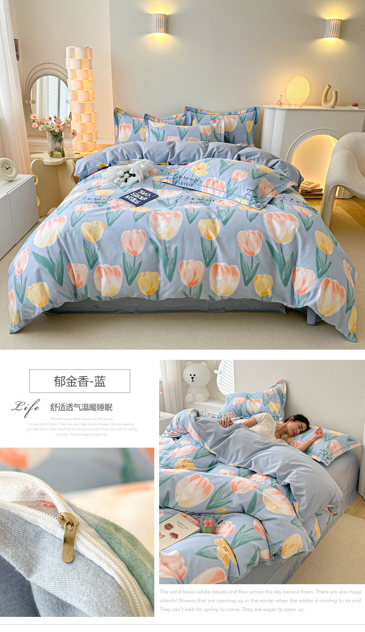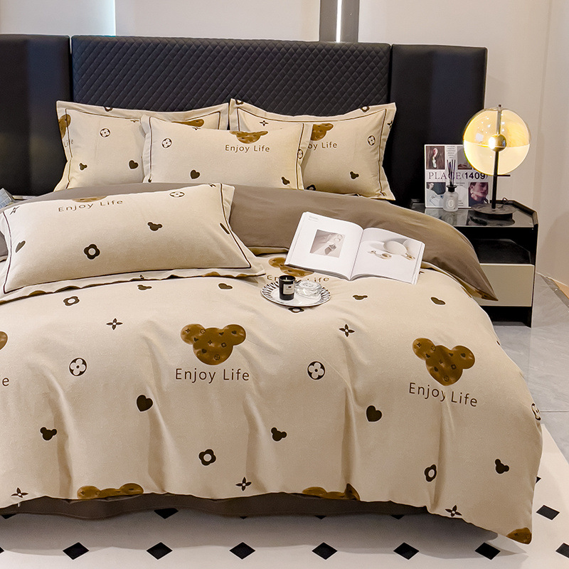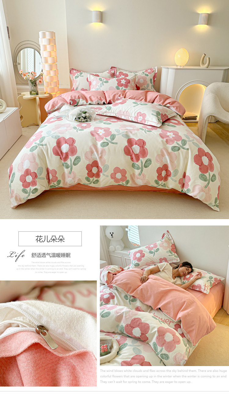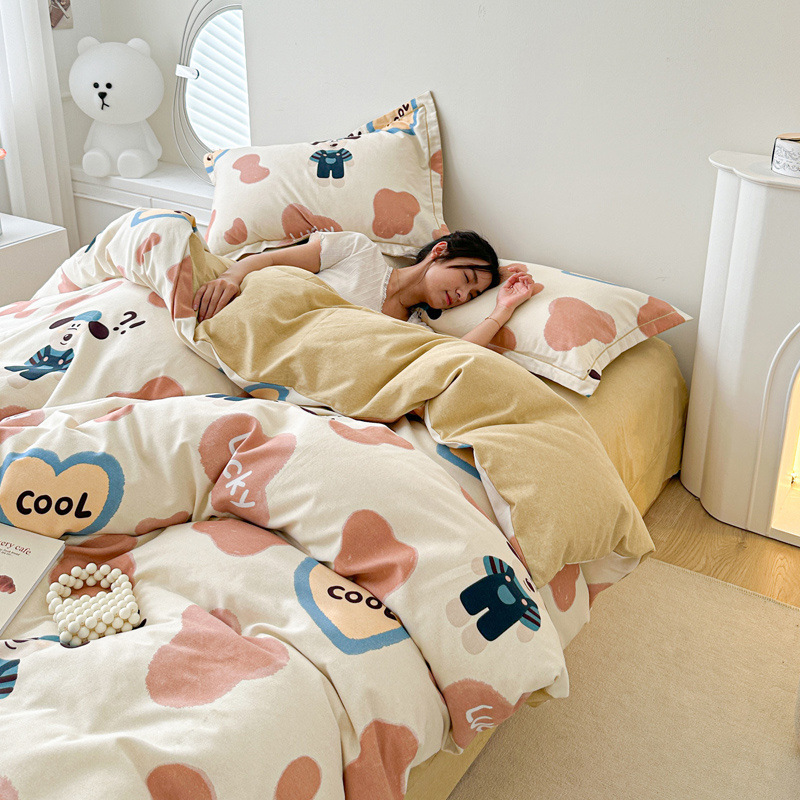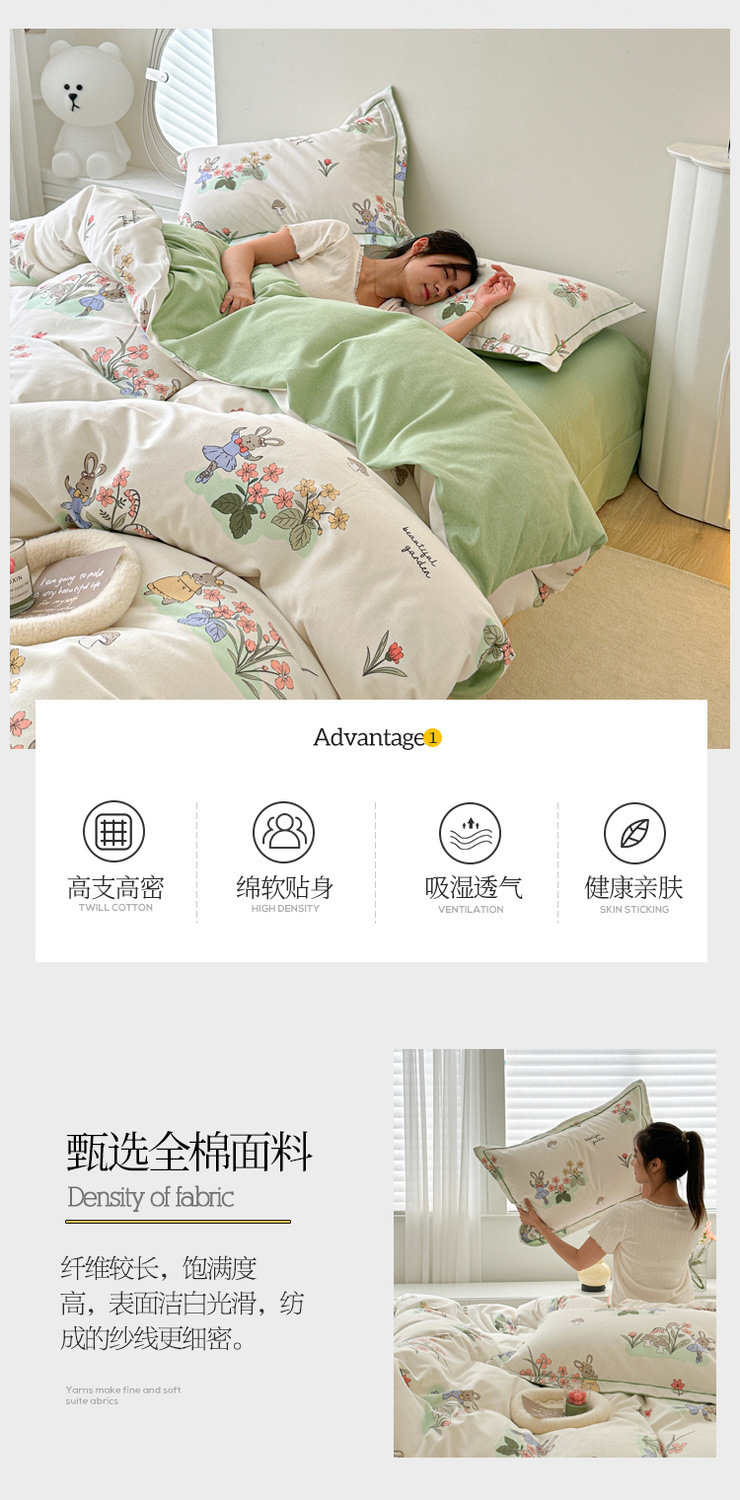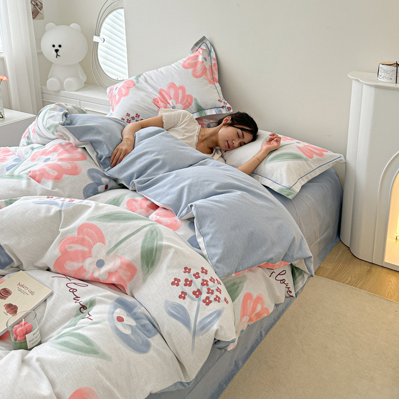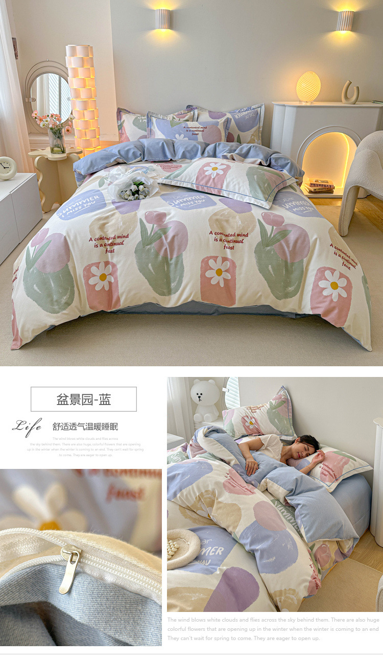 신장 긴 스테이플 코튼 두꺼운 가을과 겨울 코튼 4 피스 세트 1OO % 면 기숙사 3 피스 세트 더블 퀼트 커버 침구 용품스토어 가기