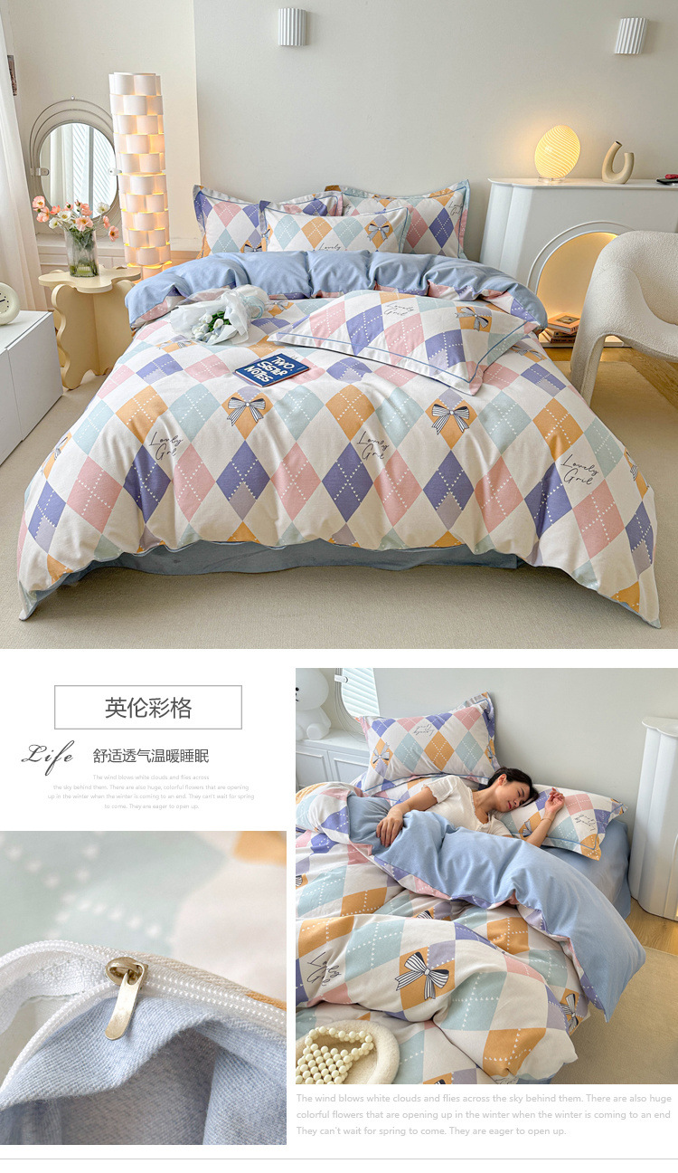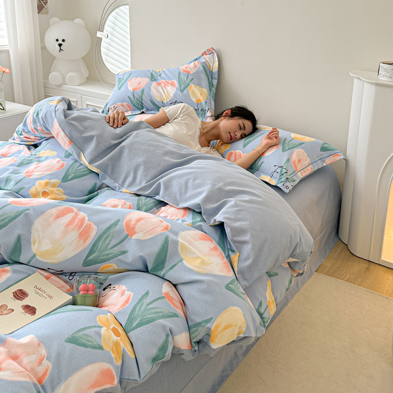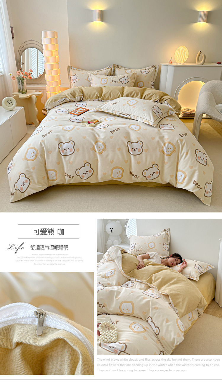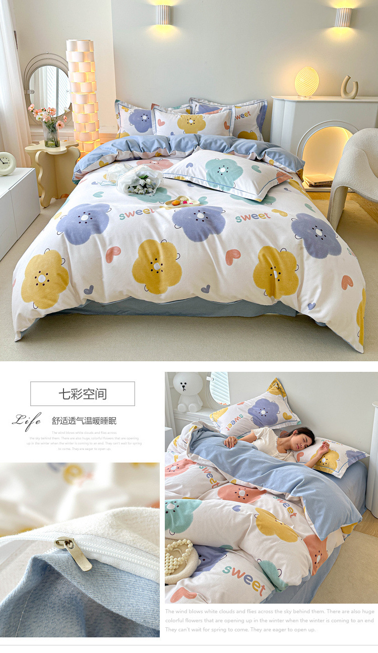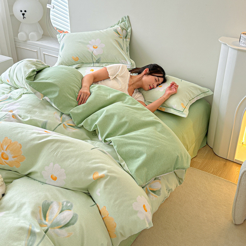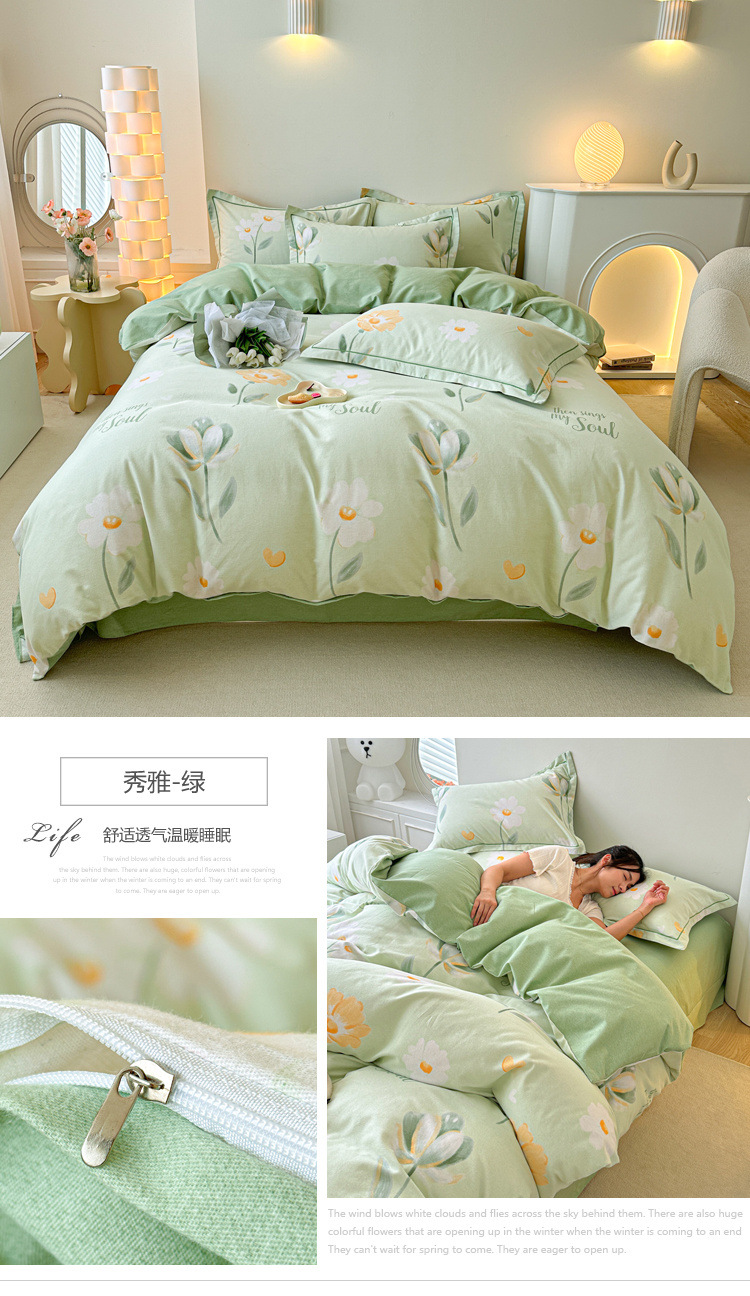신장 긴 스테이플 코튼 두꺼운 가을과 겨울 코튼 4 피스 세트 1OO % 면 기숙사 3 피스 세트 더블 퀼트 커버 침구 용품스토어 가기