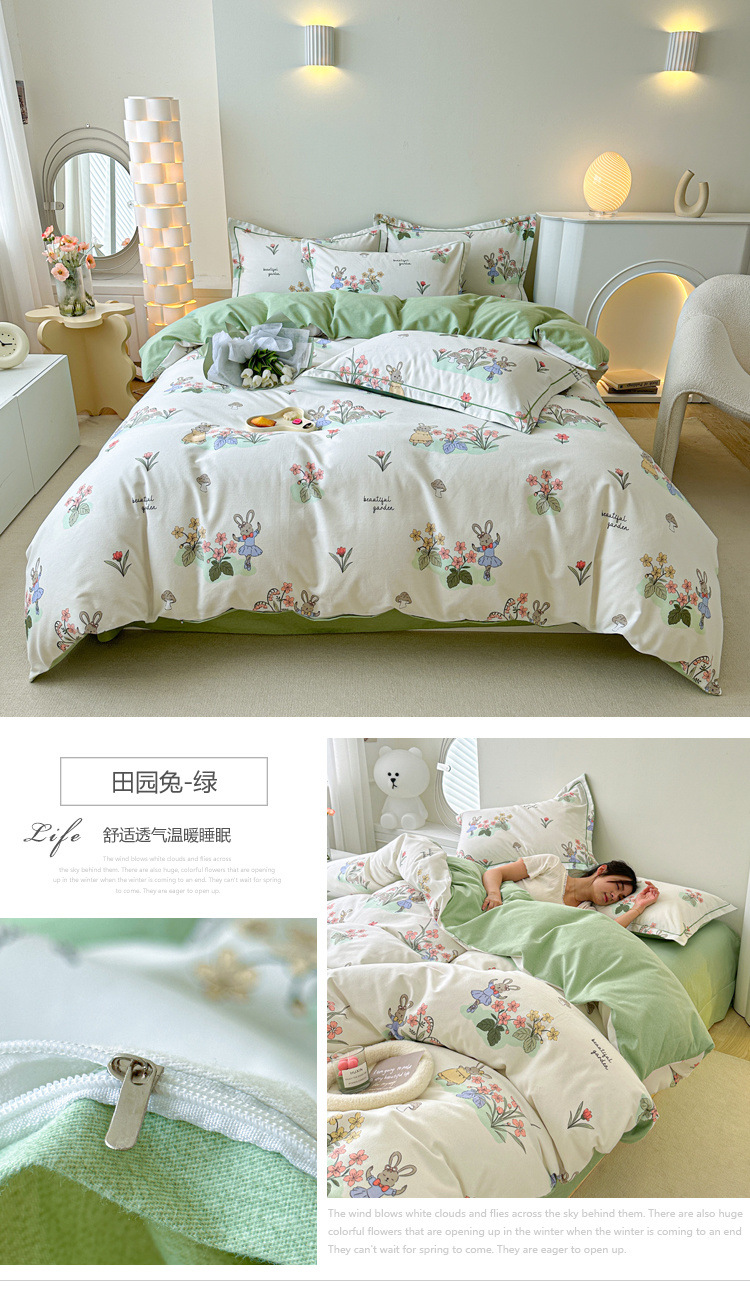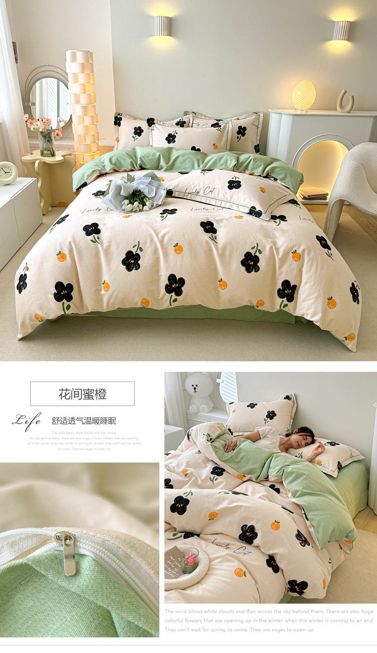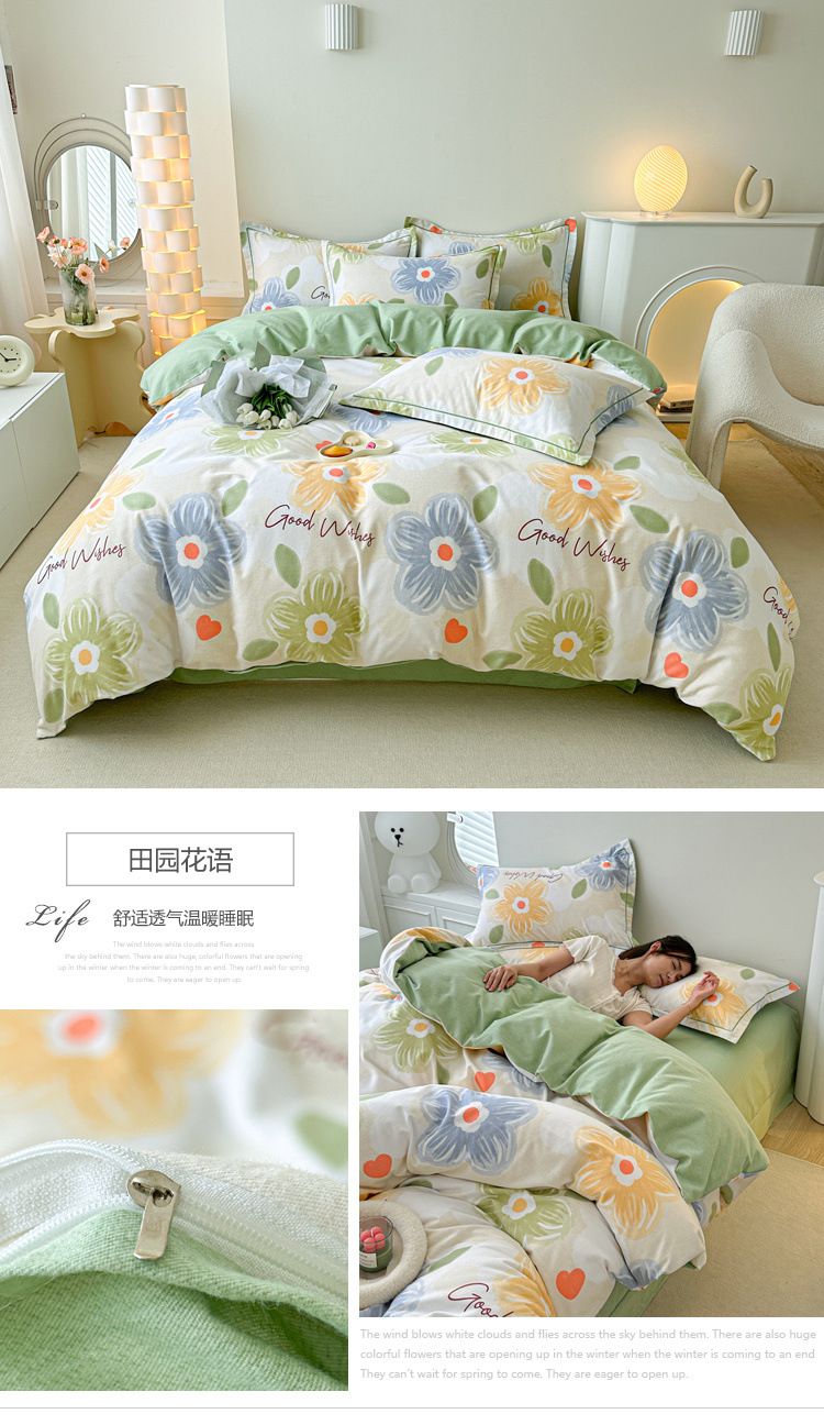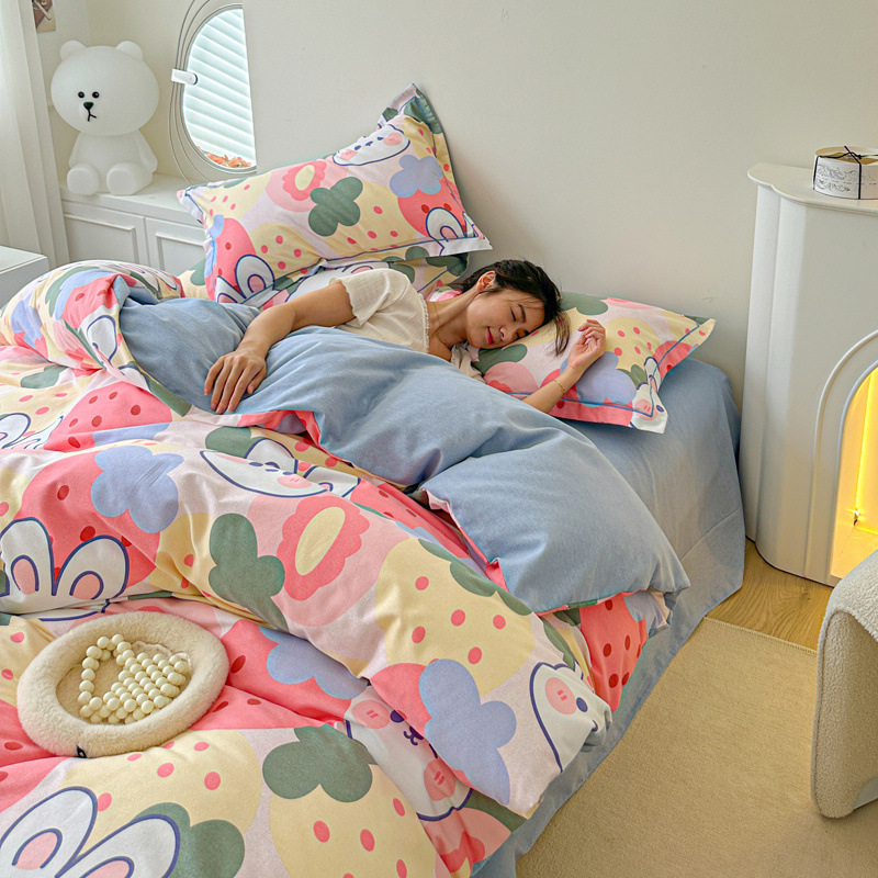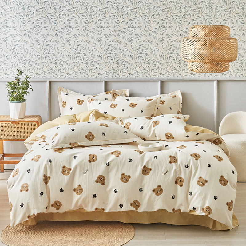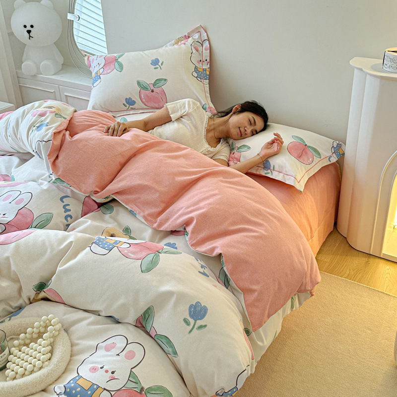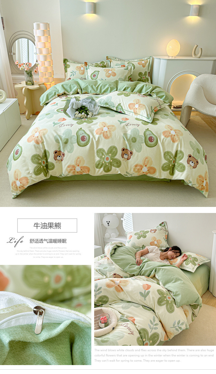 신장 긴 스테이플 코튼 두꺼운 가을과 겨울 코튼 4 피스 세트 1OO % 면 기숙사 3 피스 세트 더블 퀼트 커버 침구 용품스토어 가기