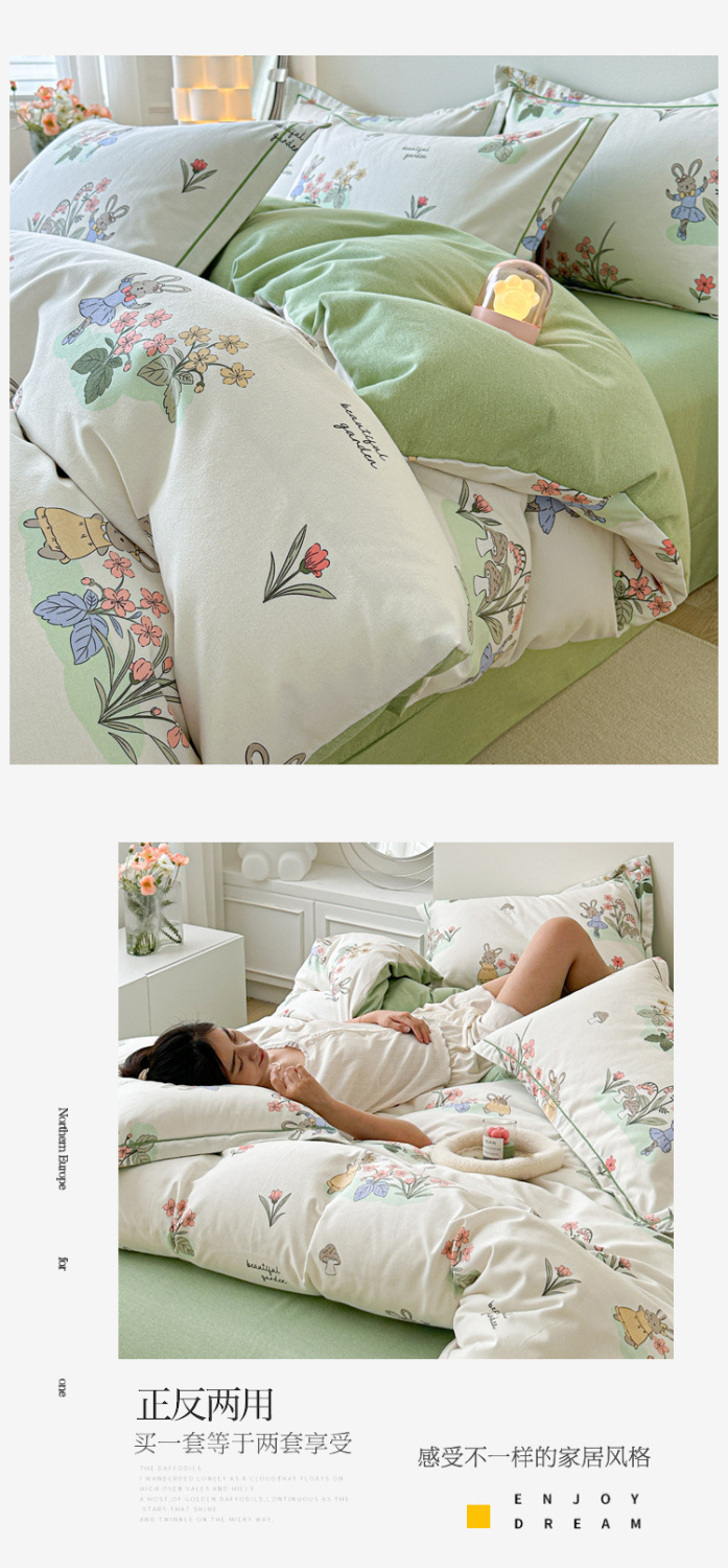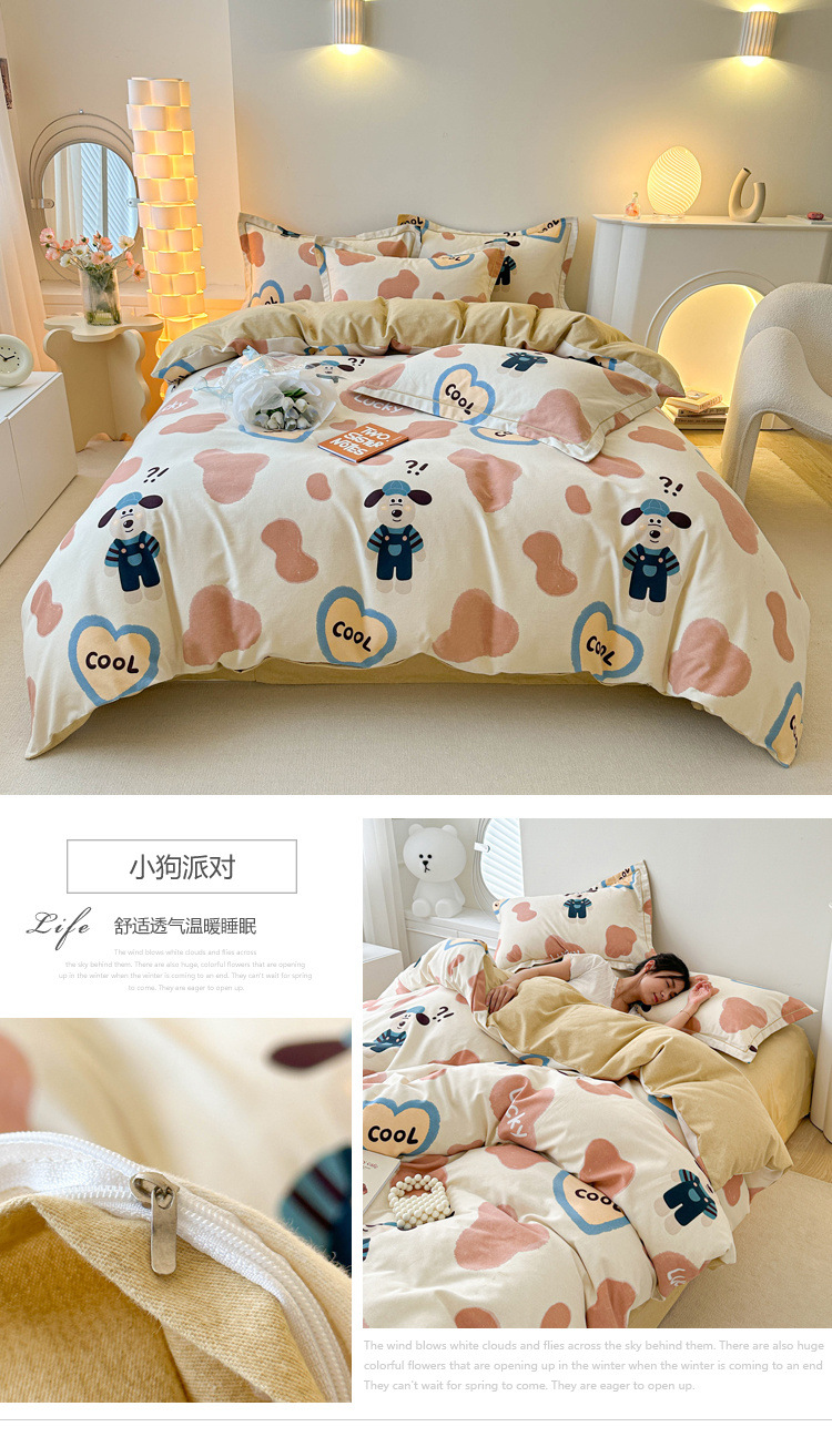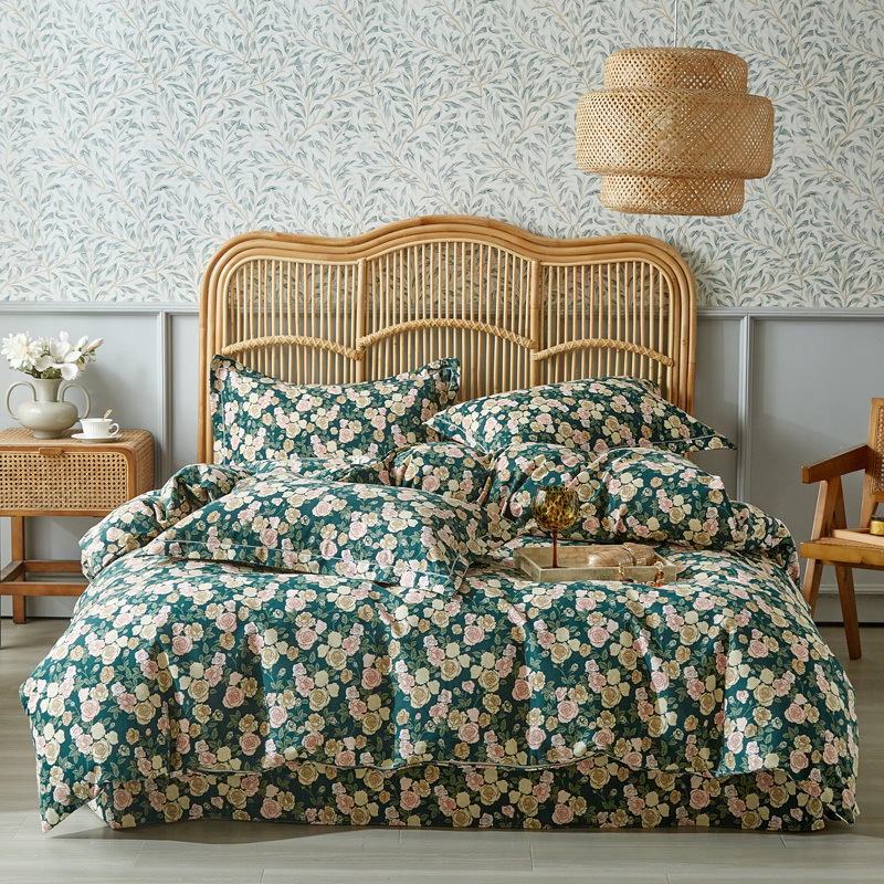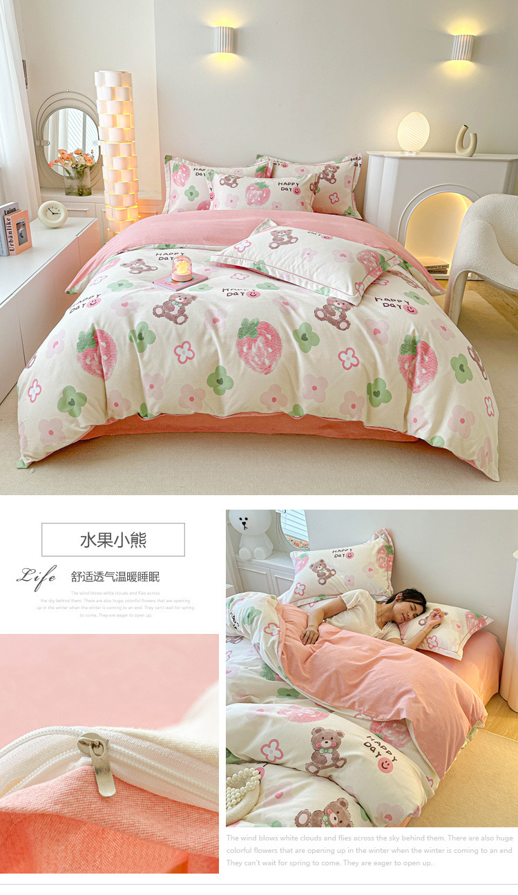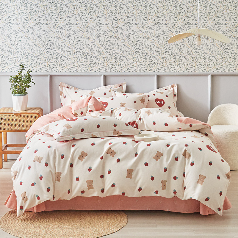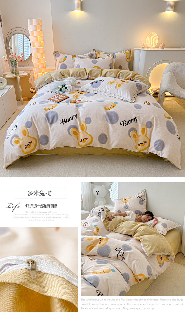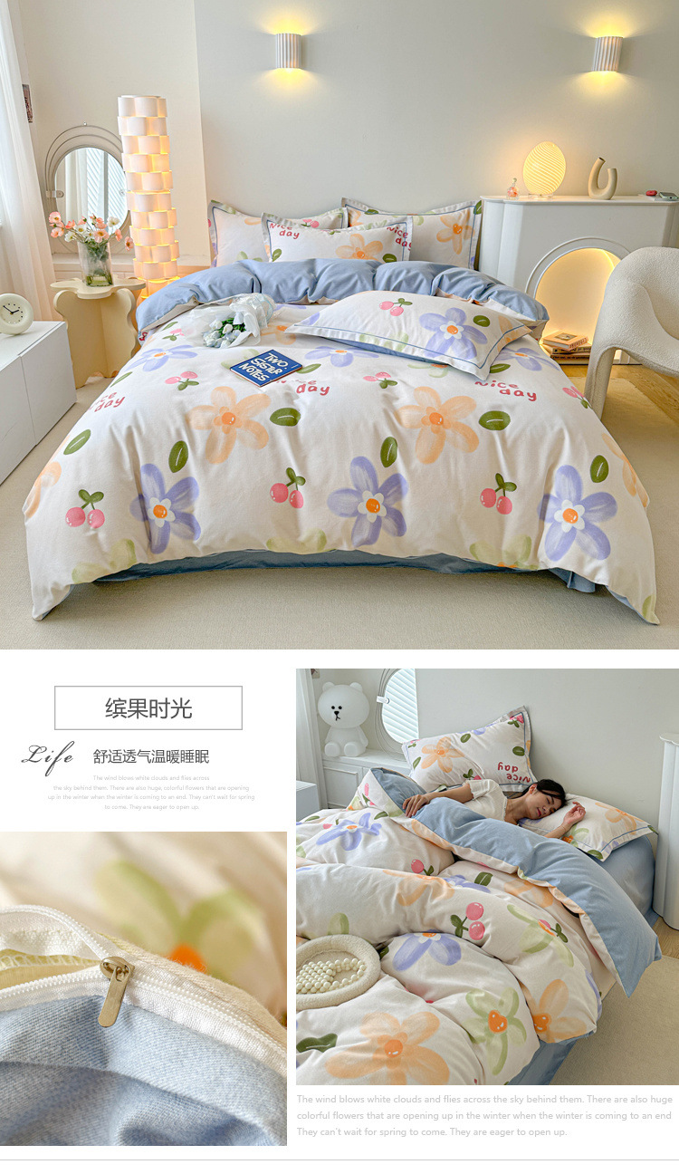 신장 긴 스테이플 코튼 두꺼운 가을과 겨울 코튼 4 피스 세트 1OO % 면 기숙사 3 피스 세트 더블 퀼트 커버 침구 용품스토어 가기