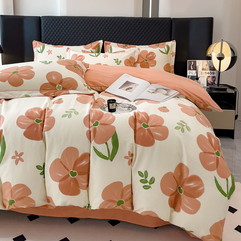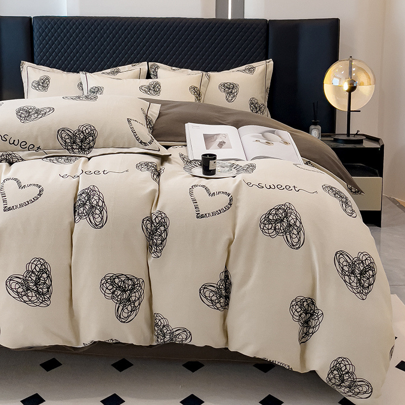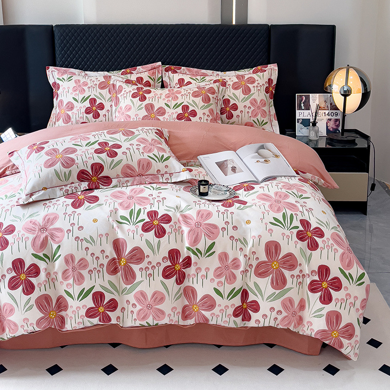 신장 긴 스테이플 코튼 두꺼운 가을과 겨울 코튼 4 피스 세트 1OO % 면 기숙사 3 피스 세트 더블 퀼트 커버 침구 용품
