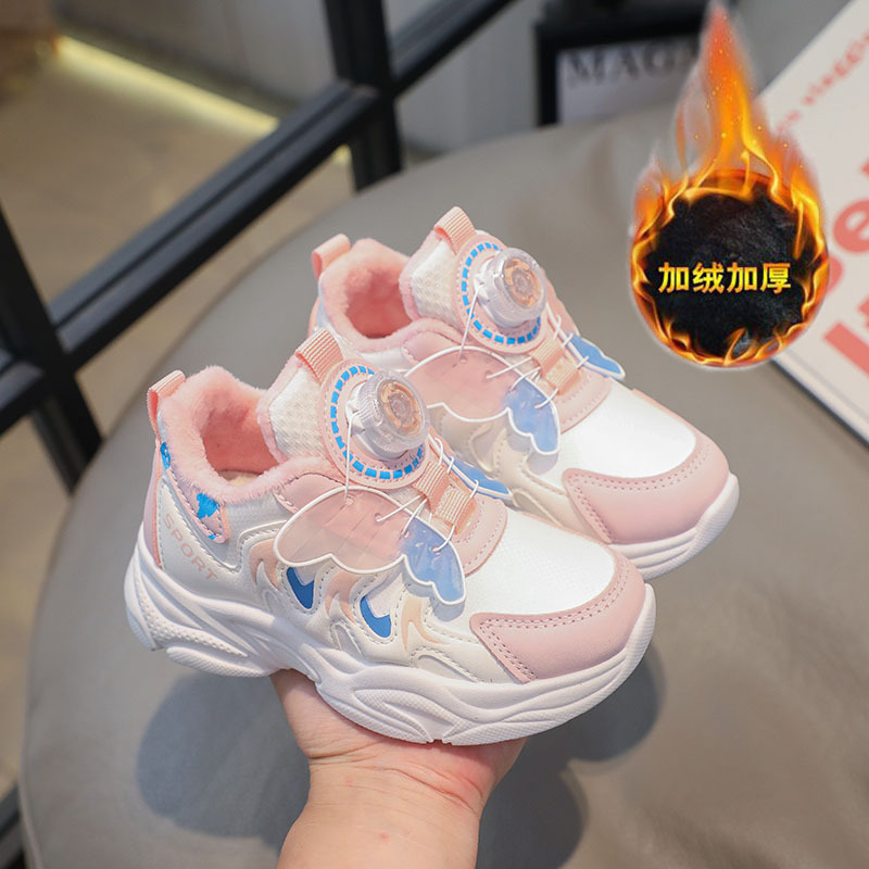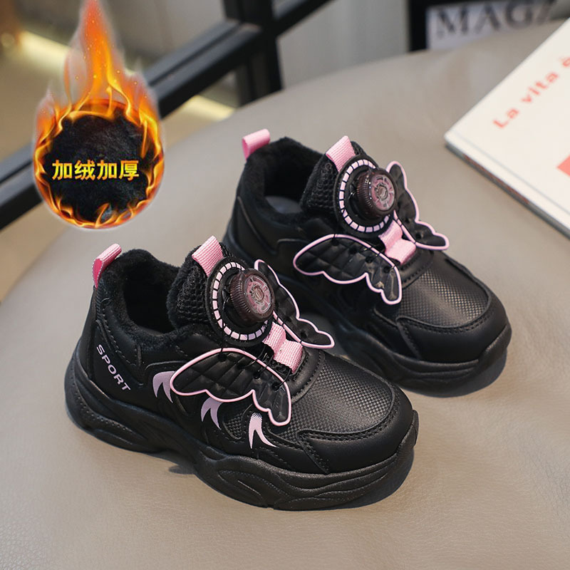 어린이 가을 겨울 운동화 어린이 토레 신발 기모 따뜻한 코튼 신발 나비 날개 캐주얼 어린이 신발