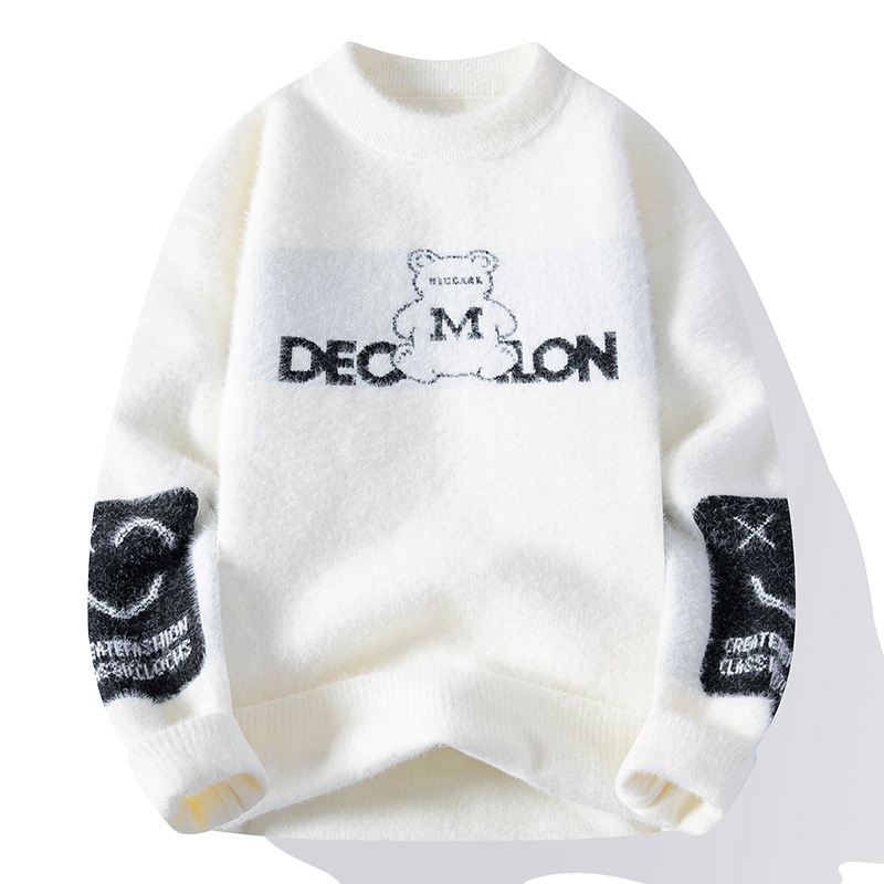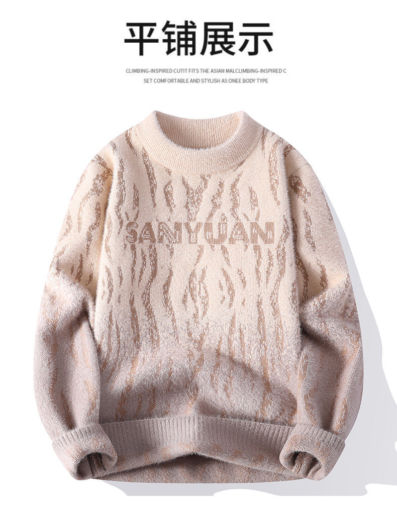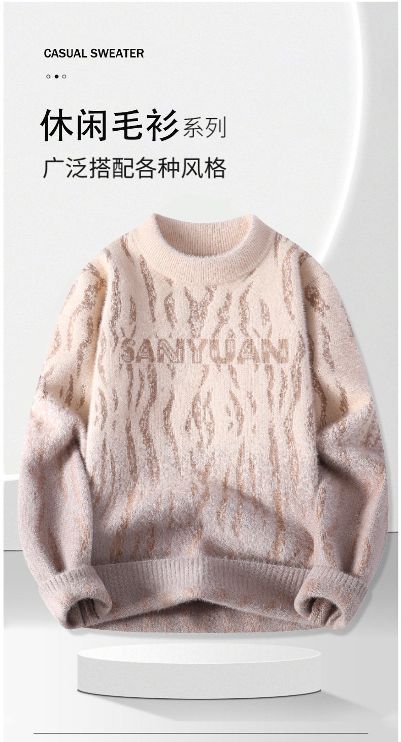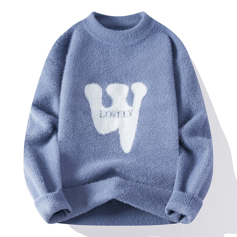 밍크 벨벳 남성 라운드넥 스웨터 한국 스타일 루즈핏 트렌디 개성 두꺼운 니트 베이스 셔츠 남성 가을 겨울 신상