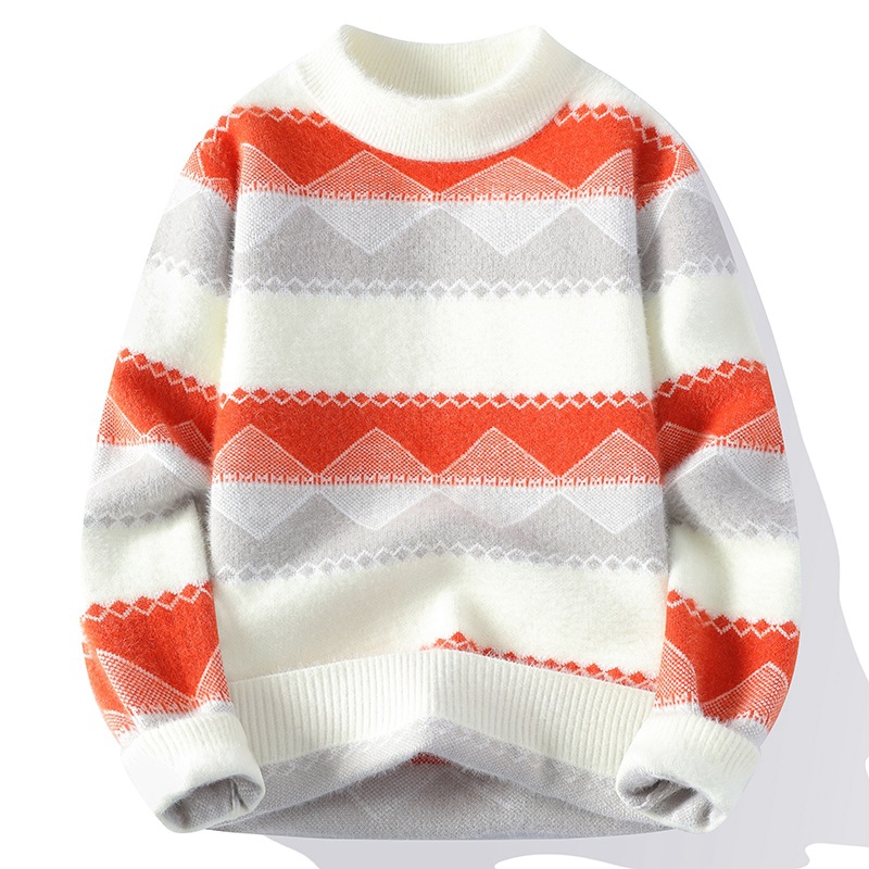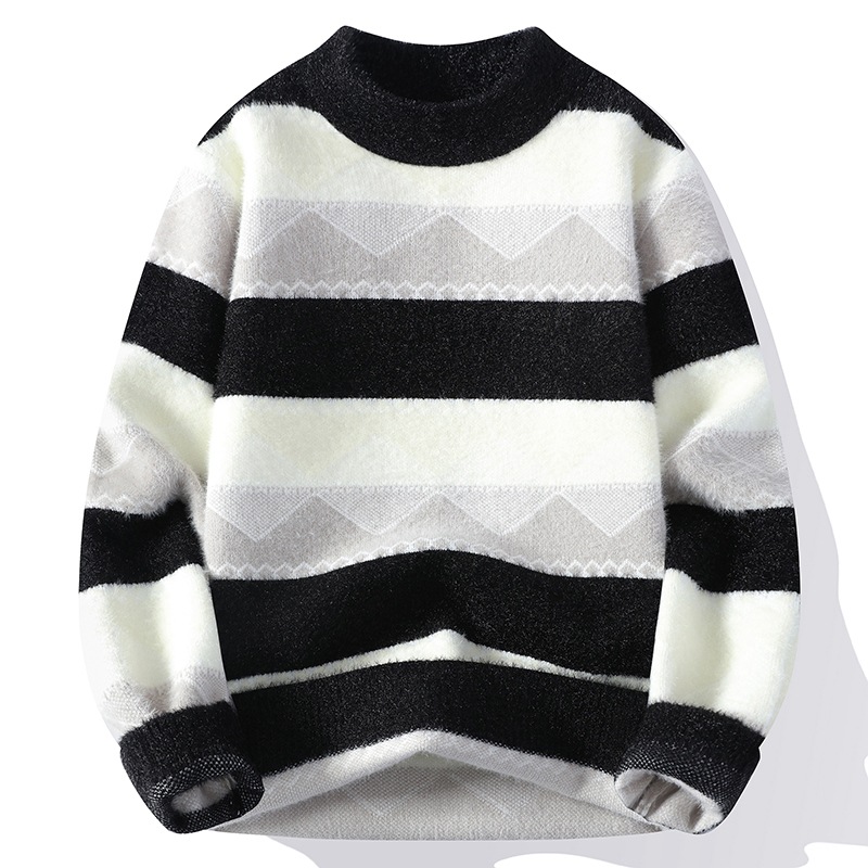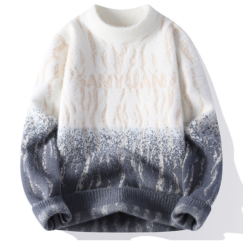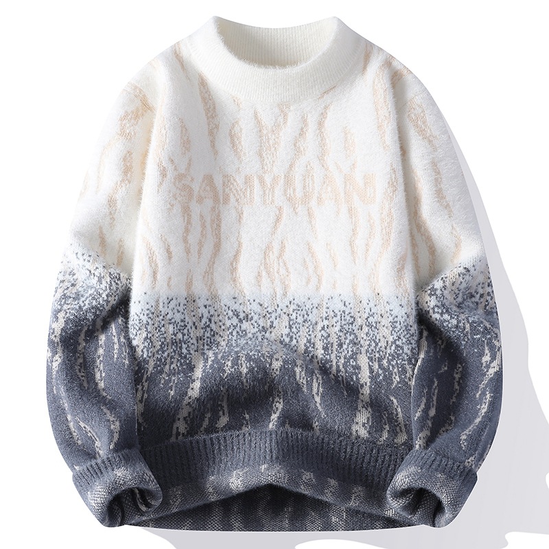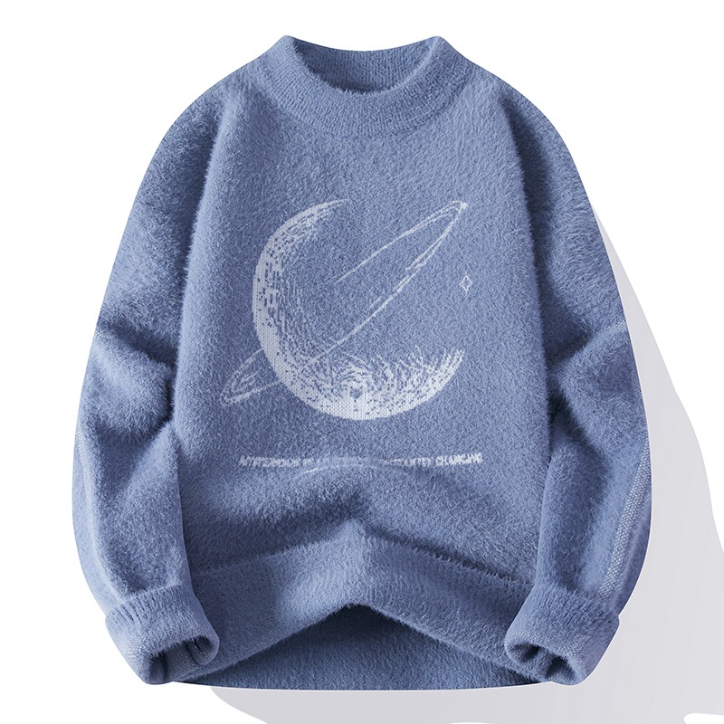 밍크 벨벳 남성 라운드넥 스웨터 한국 스타일 루즈핏 트렌디 개성 두꺼운 니트 베이스 셔츠 남성 가을 겨울 신상